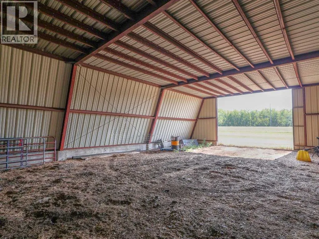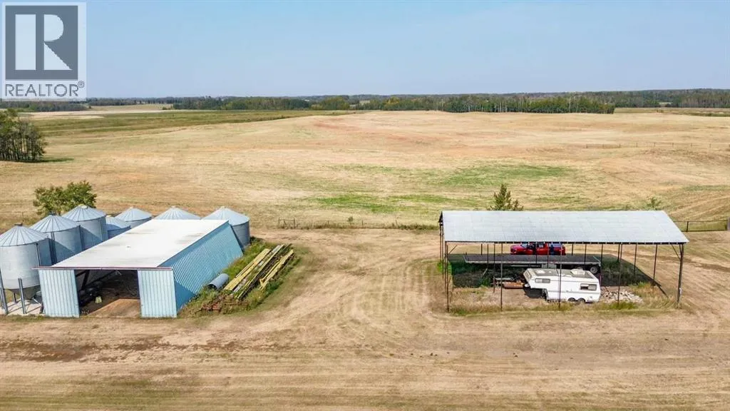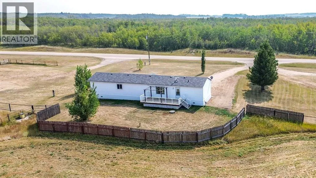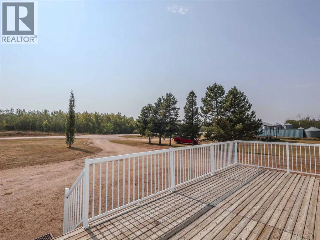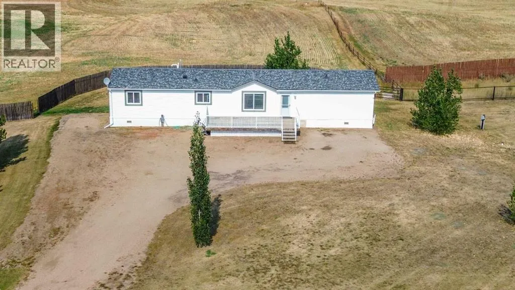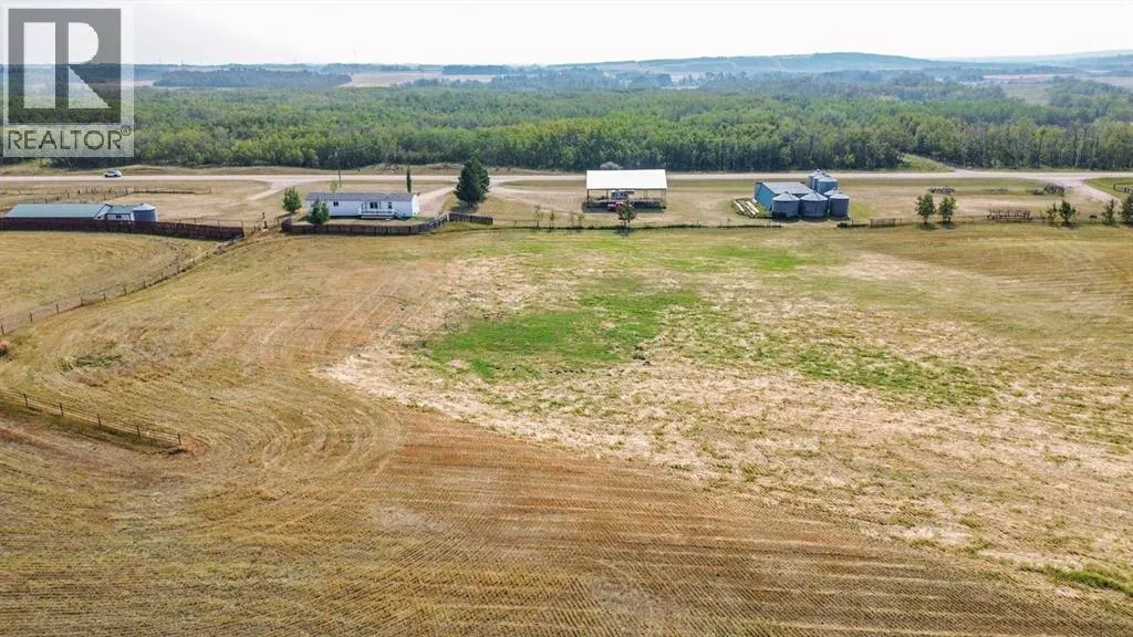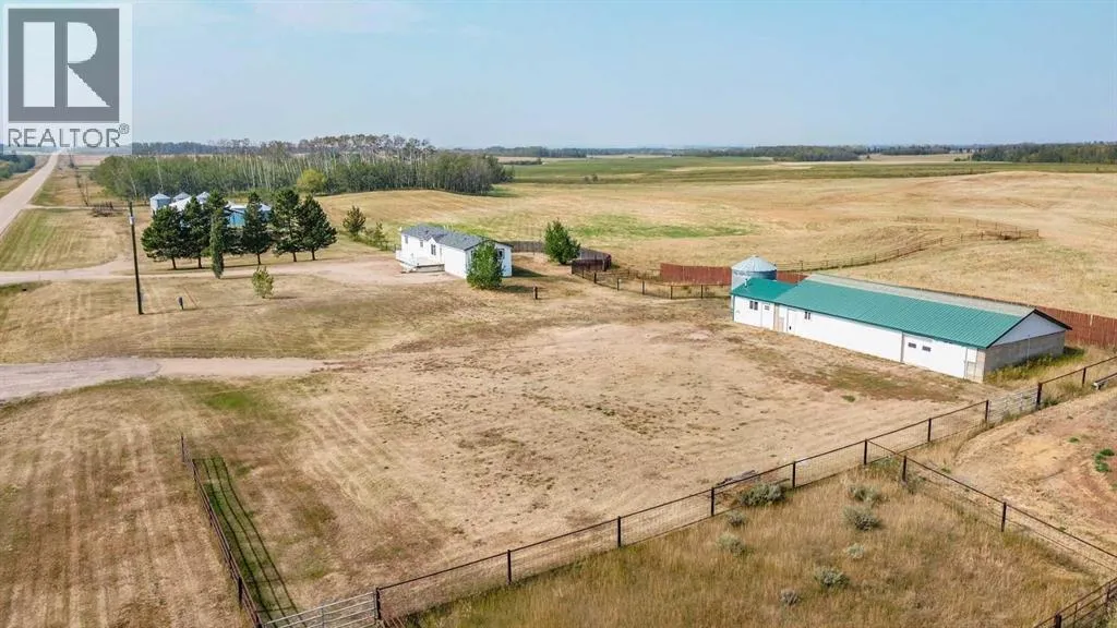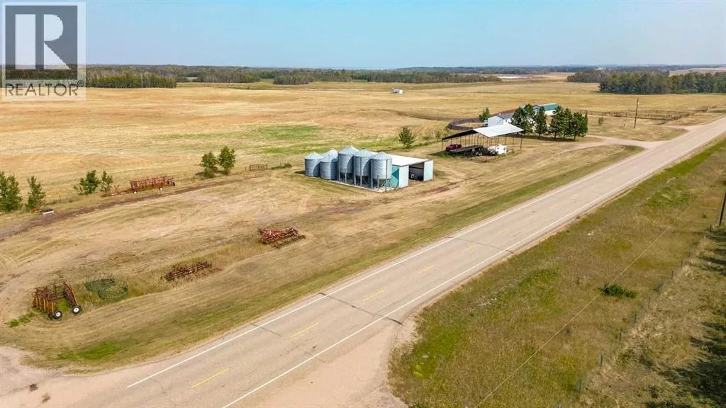 Located right on Highway 601, this well-cared-for farm consisting of 84.39 acres, combines a bright, 2013 home with a fully functional farmyardâideal to add to your farming operation, great for hobby farmers, or anyone wanting extra space and flexibility. Wide open views of farmland and trees surround the property, offering peace and prairie charm from every angle. The home is in excellent condition, immaculately maintained, and filled with natural light. It features vaulted ceilings, large windows, wood-look flooring, and light-colored walls throughout. The spacious kitchen boasts plenty of cabinets, stainless steel appliances, and a tiered island, all open to the dining area and huge living room. The primary suite includes a walk-in closet and 3-piece ensuite with walk-in shower. Three additional bedrooms and a full 4-piece bathroom provide plenty of space for family or guests. The back entry offers convenient laundry hookups and storage. Outdoors, the yard is low-maintenance with lots of parking and plenty of grass. There are two large decks at the front and back entrances creating a variety of locations to unwind and enjoy the scenery. The backyard has expansive views of the farmland beyond. The farmyard on either side of the house offers excellent functionality and includes a 60â x 38â barn, 60â x 42â open bale shed, storage shed with metal siding, 3 stock waterers, and steel corrals, making it ideal for small livestock, equipment storage, or hobby farming ventures. The farmland is currently seeded down to hay. This property is conveniently located between Stettler and Alix, and is a short commute to Red Deer. This is a great property which blends modern living with practical farmyard infrastructureâan excellent opportunity for those seeking both comfort and versatility. (id:27476)