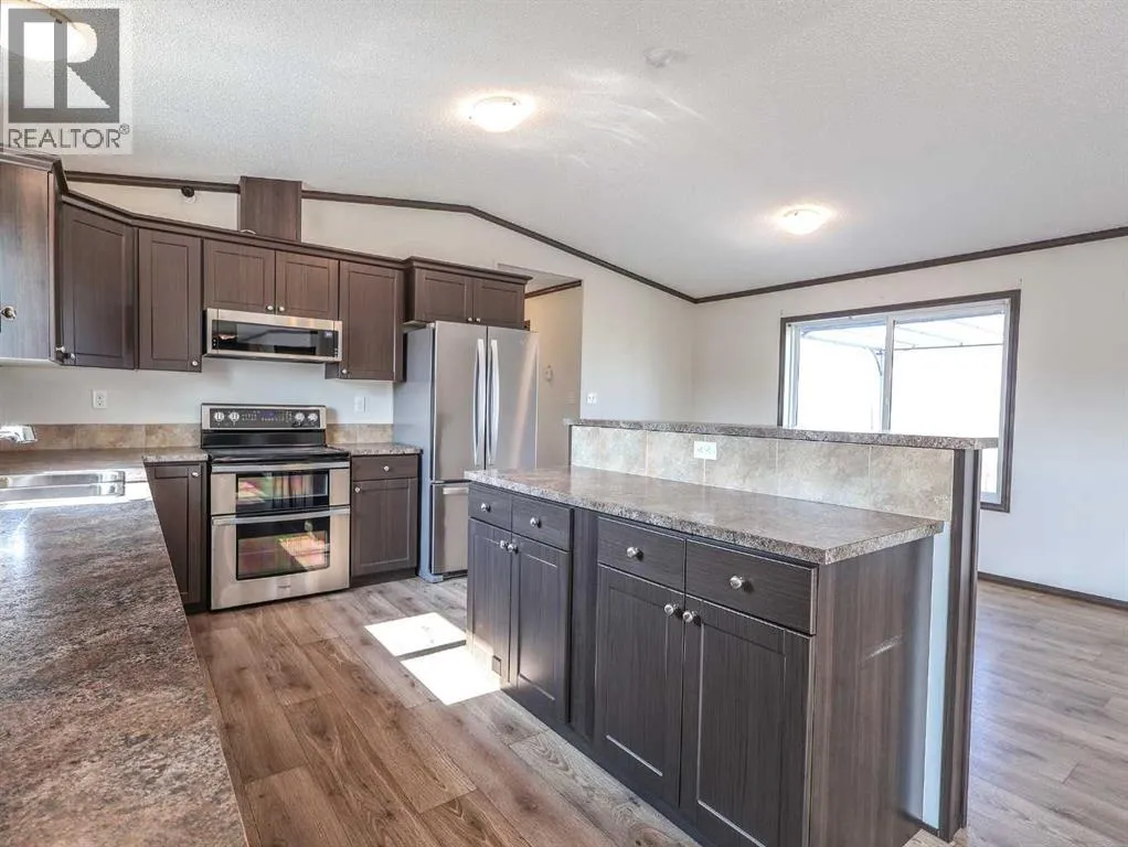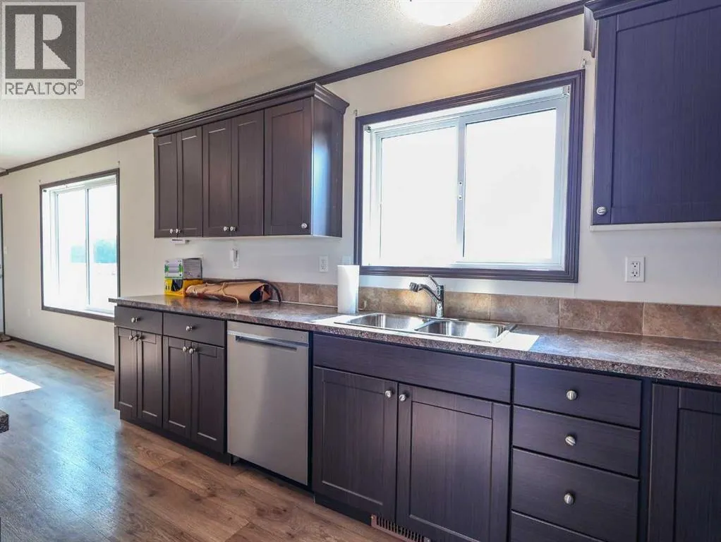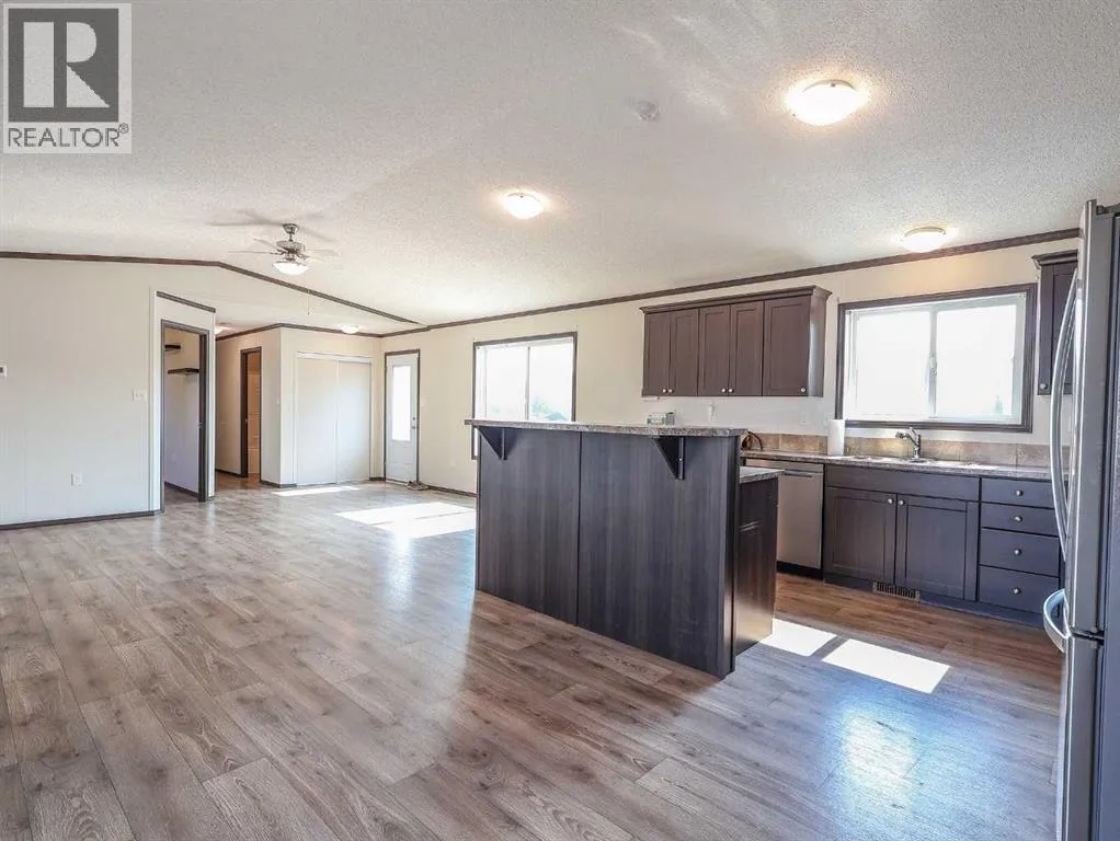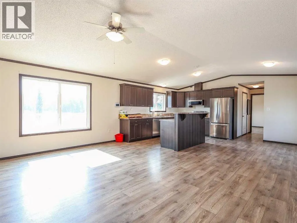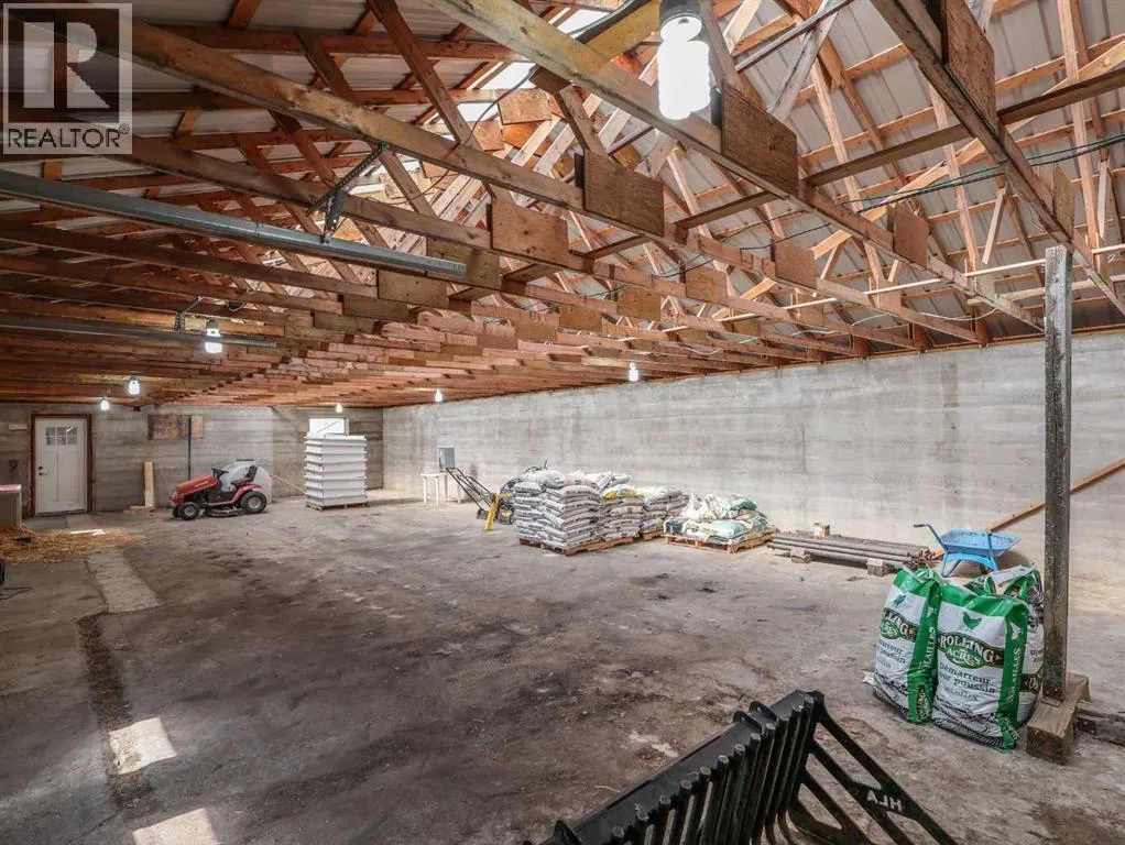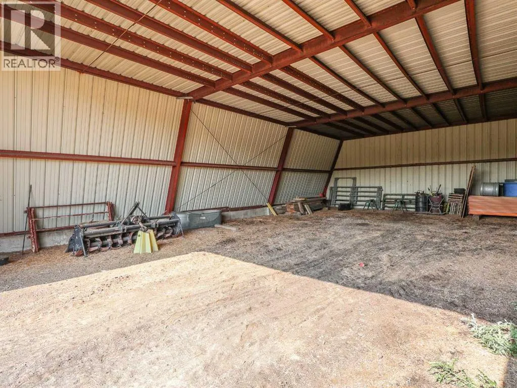 Located right on Highway 601, this well-cared-for farm consisting of 84.39 acres, combines a bright, 2013 home with a fully functional farmyardâideal to add to your farming operation, great for hobby farmers, or anyone wanting extra space and flexibility. Wide open views of farmland and trees surround the property, offering peace and prairie charm from every angle. The home is in excellent condition, immaculately maintained, and filled with natural light. It features vaulted ceilings, large windows, wood-look flooring, and light-colored walls throughout. The spacious kitchen boasts plenty of cabinets, stainless steel appliances, and a tiered island, all open to the dining area and huge living room. The primary suite includes a walk-in closet and 3-piece ensuite with walk-in shower. Three additional bedrooms and a full 4-piece bathroom provide plenty of space for family or guests. The back entry offers convenient laundry hookups and storage. Outdoors, the yard is low-maintenance with lots of parking and plenty of grass. There are two large decks at the front and back entrances creating a variety of locations to unwind and enjoy the scenery. The backyard has expansive views of the farmland beyond. The farmyard on either side of the house offers excellent functionality and includes a 60â x 38â barn, 60â x 42â open bale shed, storage shed with metal siding, 3 stock waterers, and steel corrals, making it ideal for small livestock, equipment storage, or hobby farming ventures. The farmland is currently seeded down to hay. This property is conveniently located between Stettler and Alix, and is a short commute to Red Deer. This is a great property which blends modern living with practical farmyard infrastructureâan excellent opportunity for those seeking both comfort and versatility. (id:27476)