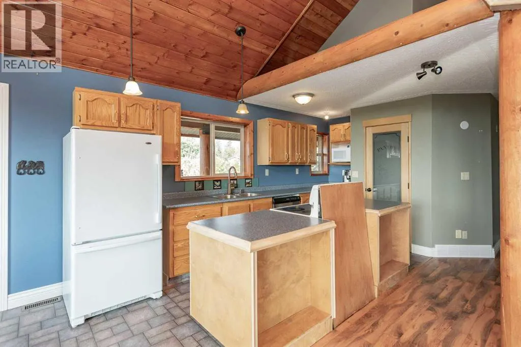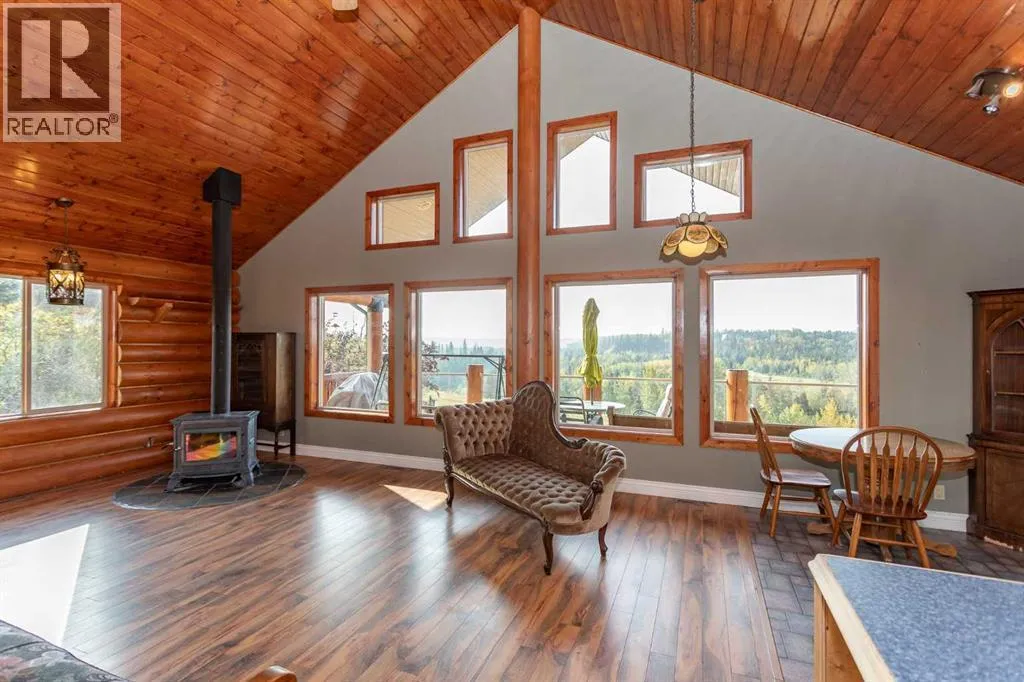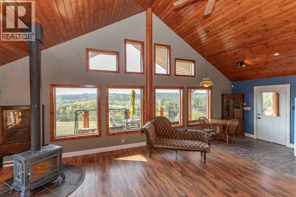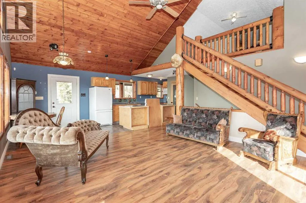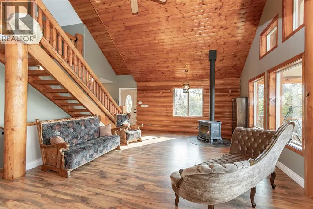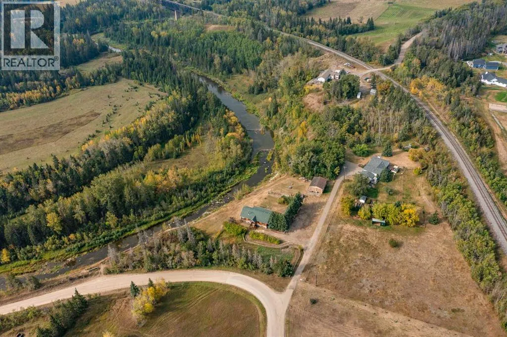 Sitting on 5.54 acres overlooking the Blindman River, this log-style 1.5 storey home offers character, charm, and panoramic valley views. The main floor features a bright living room with a wood stove, large south-facing windows, and access to the full wrap-around deck. The kitchen provides oak cabinets, laminate counters, a walk-in pantry, and a cozy dining space. Two spacious bedrooms, a 3-piece bathroom with a full tub, and main floor laundry complete this level. Upstairs youâll find a loft-style bedroom with brand new carpet, dual closets, a 3-piece ensuite, and incredible views through the oversized windows. The partly developed basement is framed and comes with materials on hand to continue the work. The foundation is ICF block, and the home is equipped with underfloor heat, a high-efficient furnace, and hot water tank. Outside, the property offers flat, usable land with treed areas, a pathway to a separate flat site that could be ideal for RV Storage, a camping area or future shop, and a large shop with mezzanine and radiant heat (ready for some attention). Recent upgrades include a new septic field and a newer pressure tank. Located in the friendly Burbank community of Lacombe County, this acreage is just minutes to Blackfalds and 10 minutes to Red Deerâan opportunity for quiet country living with town convenience close by. (id:27476)