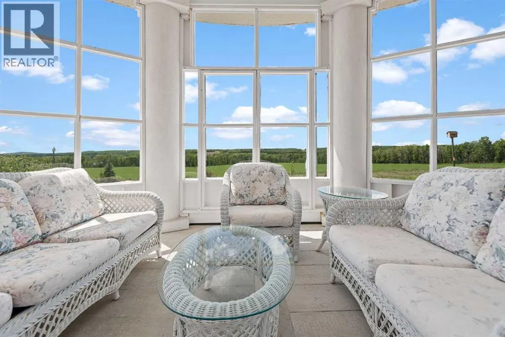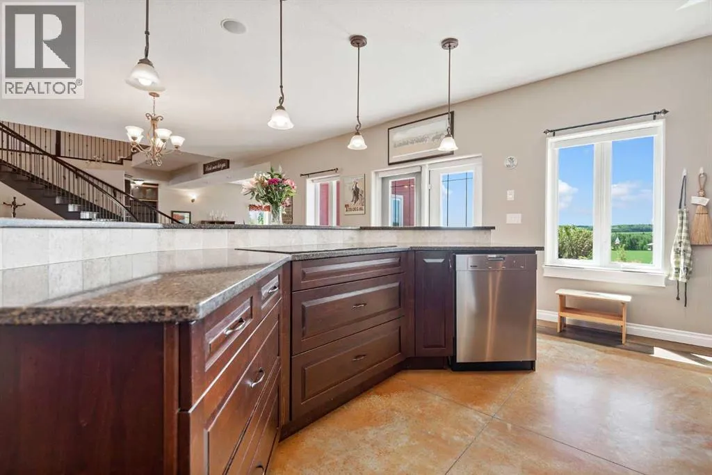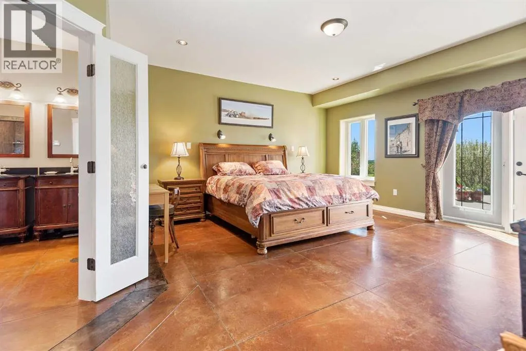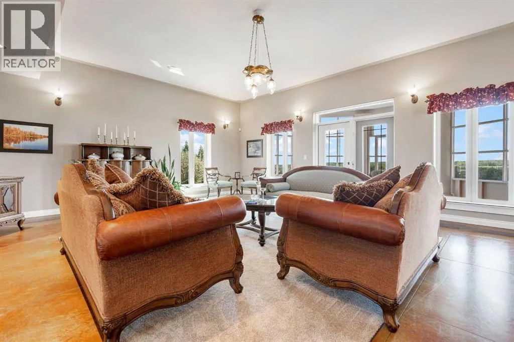 Executive 2 Storey Home with Quad Attached Garage & Huge Shop on 4.99 Acres! Impressive 5,000+ s.f. energy efficient 2 storey home built on a poured concrete slab with in-floor heating by on demand boiler, with 13" ICF walls throughout, triple glazed PVC windows and Acrylic Stucco Finish. Entering the grand foyer, a flood of natural light highlights the coloured concrete flooring, 10' ceilings, a chef's dream kitchen with upgraded cabinets, quartz countertops built in high-end appliances, new microwave, new taps, and a huge kitchen island. The kitchen overlooks the dining area and living room, with French doors to an enclosed patio area, great for entertaining and everyday living! Also located on the main floor a 2 piece bathroom, office, laundry room with sinks and plenty of cabinets, and the Primary bedroom comes with French doors to the patio, a 4 piece ensuite with dual sinks, 6'x6' steam tile shower and a huge walk-in closet. A grand wooden staircase featuring wood and metal railings and a vaulted ceiling leads to the upper level, where you will find 2 more huge bedrooms with dormer windows (which could easily be converted to 4 large bedrooms), 3 piece bathroom with a beautifully tiled shower, and a huge family room with stand alone gas stove, and access to the upper balcony where you can see for miles and miles! Additional features to this amazing home include sound & security system throughout, new central vacuum, and all doors are a minimum 3' wide and halls are minimum 4' wide. The first attached garage was built in 2012, comes with in slab heat, separate storage room, and overhead doors c/w openers. The second attached garage was built in 2015, and comes with an overhead forced air heater, and overhead doors c/w openers. If you like some shade with your sunshine, look no further, as the partial wrap-around concrete deck provides plenty of options, an enclosed sunroom, decorative pillars, built-in fire-pit, concrete block retaining walls, along wi th the roof top sundeck, all of which feature panoramic views. The landscaping includes many perennials, trees, shrubs, raspberry and saskatoon bushes, and a bountiful garden. This property also comes with a pumphouse, hen house, and underground power with a Natural Gas Generator that kicks on as soon as the power goes out. There's no shortage of places to park equipment on this property, as this property features a Huge Shop (42'x72' enclosed) with 16' ceiling, 5 overhead doors (14'x12'), forced air furnace, hot water tank, 220 wiring and gravel floor. The open machine area provides an additional 42'x80', all of which has a gabled roof, finished with metal and coloured clad exterior. Lots to take in with this Amazing property! (id:27476)