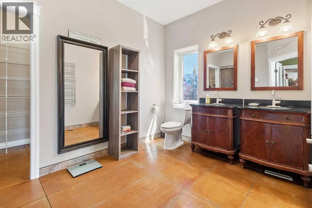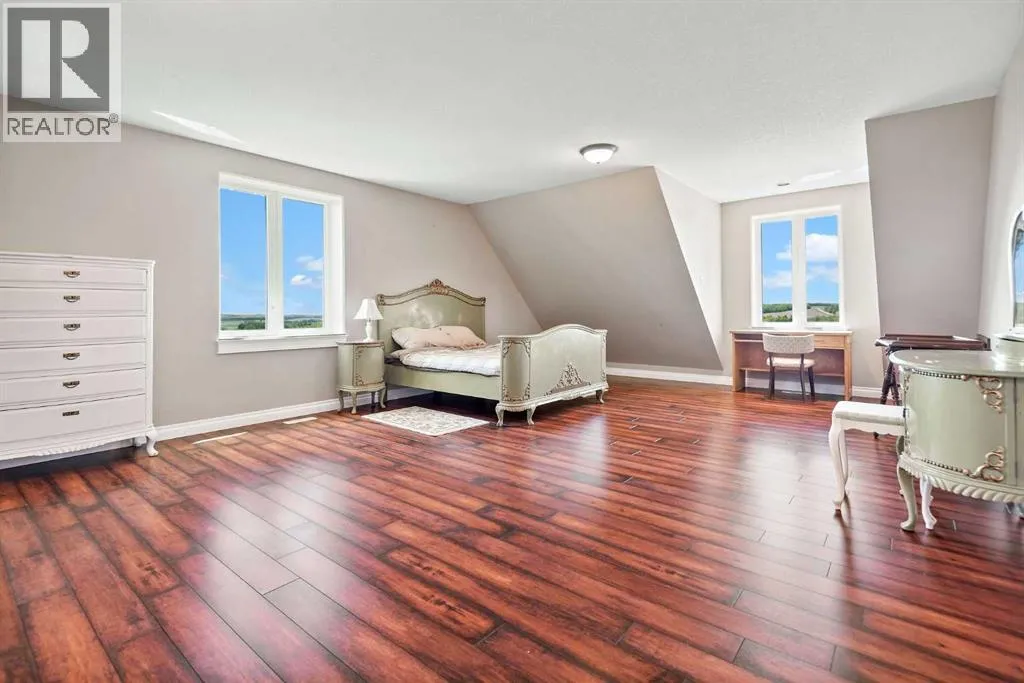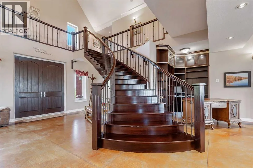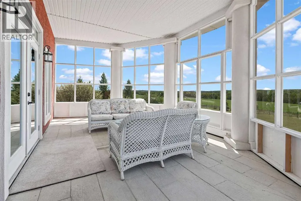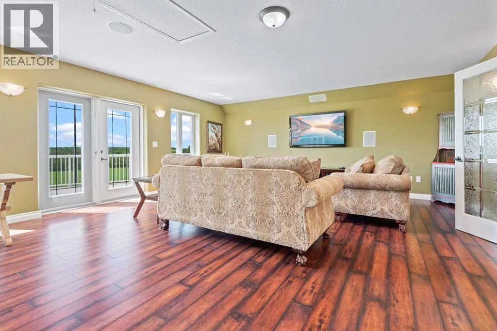 Executive 2 Storey Home with Quad Attached Garage & Huge Shop on 4.99 Acres! Impressive 5,000+ s.f. energy efficient 2 storey home built on a poured concrete slab with in-floor heating by on demand boiler, with 13" ICF walls throughout, triple glazed PVC windows and Acrylic Stucco Finish. Entering the grand foyer, a flood of natural light highlights the coloured concrete flooring, 10' ceilings, a chef's dream kitchen with upgraded cabinets, quartz countertops built in high-end appliances, new microwave, new taps, and a huge kitchen island. The kitchen overlooks the dining area and living room, with French doors to an enclosed patio area, great for entertaining and everyday living! Also located on the main floor a 2 piece bathroom, office, laundry room with sinks and plenty of cabinets, and the Primary bedroom comes with French doors to the patio, a 4 piece ensuite with dual sinks, 6'x6' steam tile shower and a huge walk-in closet. A grand wooden staircase featuring wood and metal railings and a vaulted ceiling leads to the upper level, where you will find 2 more huge bedrooms with dormer windows (which could easily be converted to 4 large bedrooms), 3 piece bathroom with a beautifully tiled shower, and a huge family room with stand alone gas stove, and access to the upper balcony where you can see for miles and miles! Additional features to this amazing home include sound & security system throughout, new central vacuum, and all doors are a minimum 3' wide and halls are minimum 4' wide. The first attached garage was built in 2012, comes with in slab heat, separate storage room, and overhead doors c/w openers. The second attached garage was built in 2015, and comes with an overhead forced air heater, and overhead doors c/w openers. If you like some shade with your sunshine, look no further, as the partial wrap-around concrete deck provides plenty of options, an enclosed sunroom, decorative pillars, built-in fire-pit, concrete block retaining walls, along wi th the roof top sundeck, all of which feature panoramic views. The landscaping includes many perennials, trees, shrubs, raspberry and saskatoon bushes, and a bountiful garden. This property also comes with a pumphouse, hen house, and underground power with a Natural Gas Generator that kicks on as soon as the power goes out. There's no shortage of places to park equipment on this property, as this property features a Huge Shop (42'x72' enclosed) with 16' ceiling, 5 overhead doors (14'x12'), forced air furnace, hot water tank, 220 wiring and gravel floor. The open machine area provides an additional 42'x80', all of which has a gabled roof, finished with metal and coloured clad exterior. Lots to take in with this Amazing property! (id:27476)