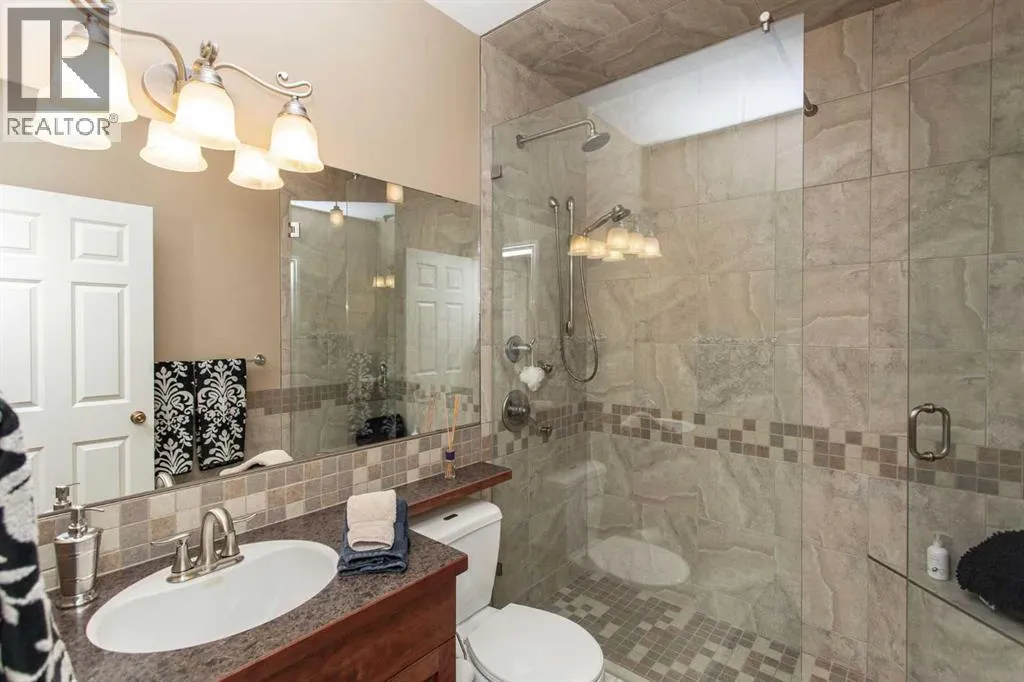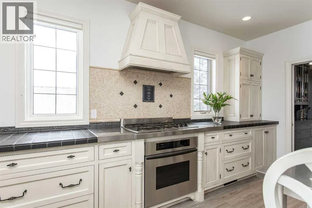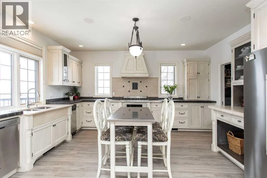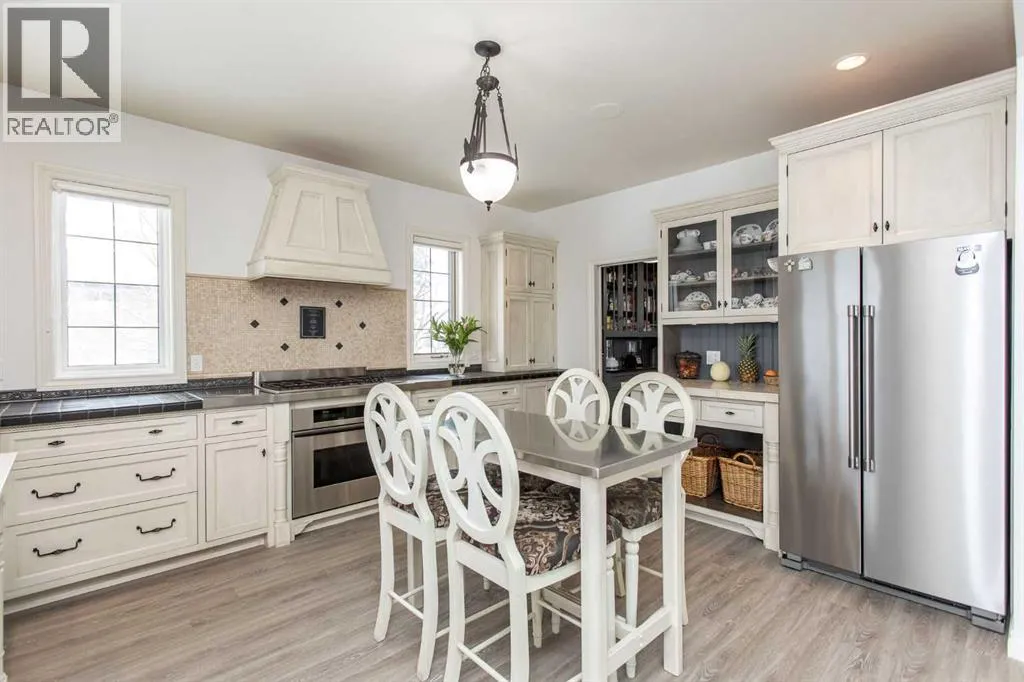 ~IMPRESSIVE ESTATE PROPERTY~ in the beautiful subdivision of BURBANK HEIGHTS! Situated on 2.99 acres, with BREATHTAKING VIEWS. This home offers privacy, AFFORDABILITY and room to grow! Greeted by a spacious slate entrance, that leads to a BRIGHT BEAUTIFUL OPEN CONCEPT. From the living, dining and kitchen all you can see is BLUE SKIES, wildlife, and feel the peace and serenity all around. The main floor has newer LUXURY VINYL PLANK, all freshly painted walls and tastefully decorated. A gas fireplace in the living room with stone surround, from floor to ceiling, with a beautiful wood mantle, ceiling fans, and large windows, open to the dining room that features a door to the MAINTENANCE FREE MASSIVE DECK. There is a spacious kitchen that features a wall oven, gas cook top, hood fan, and built in dishwasher, (all stainless steel) A beautiful black stone countertop, abundance of counter space, and travertine backsplash. A walk-in pantry with built in cabinets, washer, dryer and sink. Main floor also features a 2-piece powder room, and rear entrance to the back yard with bult in locker space and bench. Upstairs, features incredible large bedrooms, the master has two closets, his/hers, ceiling fan, built in storage cabinets, and a stunning 5-piece ensuite. There is an oversized soaker tub, newer tiled shower, and dual sinks. There are three more bedrooms, two are located at the front and the third is at the back, (currently used as office space) but its enormous size would be ideal for a bonus room for the entire family. In the fully developed basement, you will appreciate the functional floorplan and the perfect area to entertain friends and family, with a full-size wet bar, built in cherry cabinets and tv/ games room, all with OPERATIONAL IN FLOOR HEAT. The basement also features a 5th bedroom that has a built-in desk area, walk in closet and room for two queen beds. There is a 3-piece bath, with walk in custom tiled shower. Located in the front with incredible views is your 4-season tiled sunroom, currently used with gym equipment, and space for children and grand children. An endearing property both inside and out! A double HEATED ATTACHED GARAGE has a man door to the back yard, and a DOUBLE HEATED DETACHED GARAGE. The detached garage has a GUEST HOUSE above featuring a full-size kitchen, vaulted ceilings, living room, a large bedroom with a walk-in closet and finally a beautiful 3-piece bathroom. The guest home also has its own laundry facility. Outside you'll appreciate your very OWN GARDEN, garden shed and SOUTHWEST EXPOSURE! (id:27476)