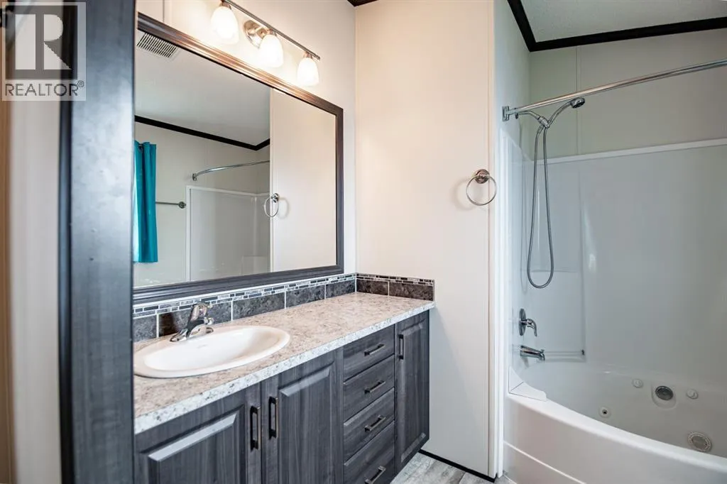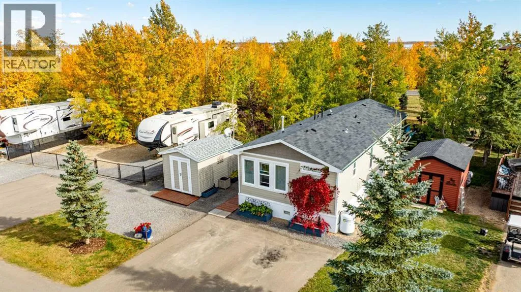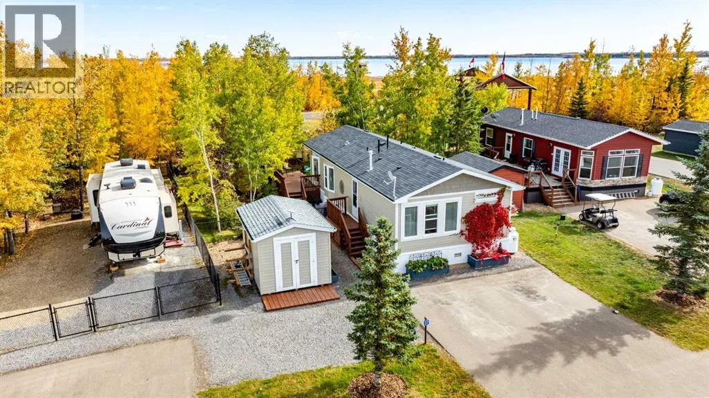 Enjoy Year-Round Luxury Living at Sandy Point on Gull Lake! Welcome to this one-of-a-kind custom-built lake house in the prestigious gated community of Sandy Point Resort, where every day feels like a getaway! Built in 2016 with superior craftsmanship. This stunning property combines comfort & the relaxed charm of lake living perfect for those who dream of a peaceful escape without sacrificing modern convenience. Sandy Point is Central Albertaâs premier four-season destination, offering a lifestyle like no other. Residents enjoy access to an inland marina and boat launch, a beautiful public beach, playgrounds, gazebo with fire pit, showers and laundry facilities & even boat & RV storage. Future amenities include a 12-hole golf course, clubhouse making this resort community a complete recreational paradise year-round. Whether you are boating, fishing, ice fishing, golfing, swimming, skating or simply watching the sunrise over the lake, Sandy Point offers endless ways to enjoy life outdoors! Step inside this exceptional home and you will immediately notice the thoughtful design and spacious layout. Nice floor plan and bright open concept living, it offers an inviting atmosphere for family gatherings and entertaining. The modern kitchen is a true showpiece - featuring stylish countertops, a centre island, custom cabinetry, full appliance package & a generous pantry/storage designed for function & flow. The living & dining areas blend beautifully, offering plenty of natural light & a seamless connection to the outdoors. The supersized primary suite is a peaceful retreat with a large walk-through closet and a private ensuite featuring a relaxing soaker tub - the perfect place to unwind after a day on the lake or live. Additional bedroom and a second full bathroom with a walk-in shower provide comfort and privacy for guests or family. The laundry room includes a newer stackable washer and dryer. Outdoors, this property truly shines! Enjoy your morning coffee or evening gl ass of wine on the two-tier deck, designed to take advantage of partial lake views. The landscaping is simply stunning â paved driveway, mature trees, perennials, decorative stones, fenced yard, fire-pit area & a garden space for summer blooms. There is even a matching 10x15 storage shed & a rear gate for quick lake access. Set on one of the largest and most desirable lots in Sandy Point, this home is located just across from the park and only two lots from the main gate. It is squeaky clean, move-in ready and perfect for year-round living or your ultimate recreational retreat. Monthly condominium fee of $200 covers water, sewer, and garbage for peace of mind. The property is on propane and quick possession is available. Come experience lake life where every season brings a new adventure and home feels like a permanent vacation Note: Lot #36 next door is listed & could be purchase as well MLS A2263374. (id:27476)