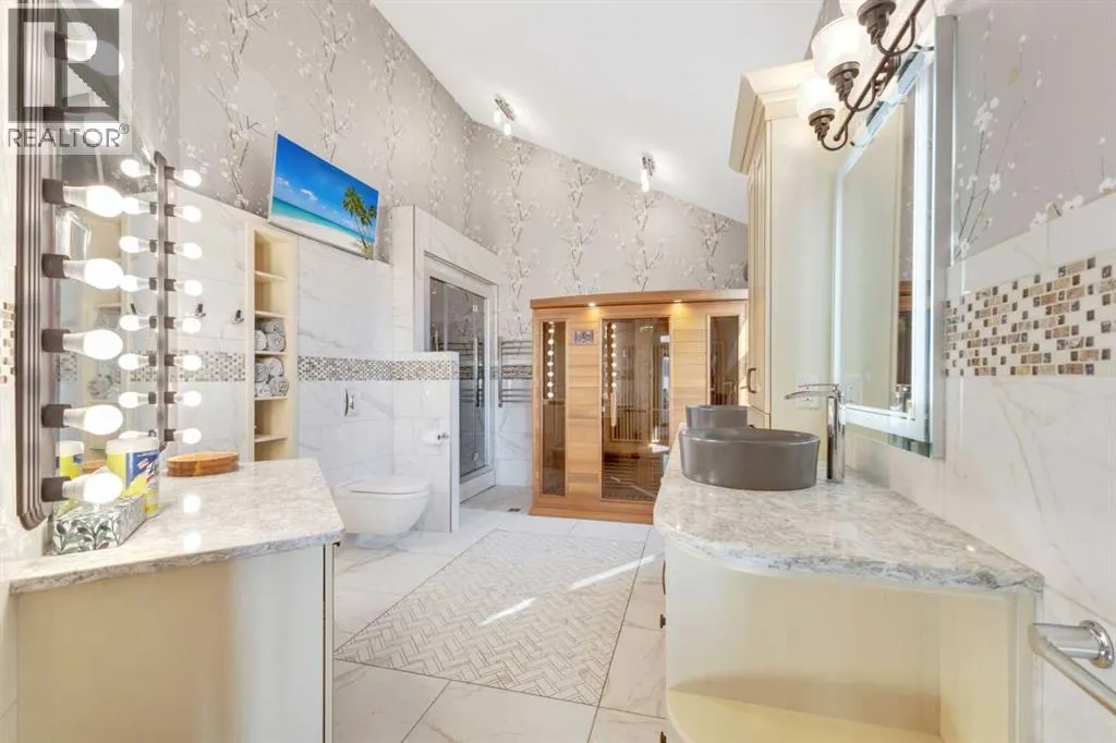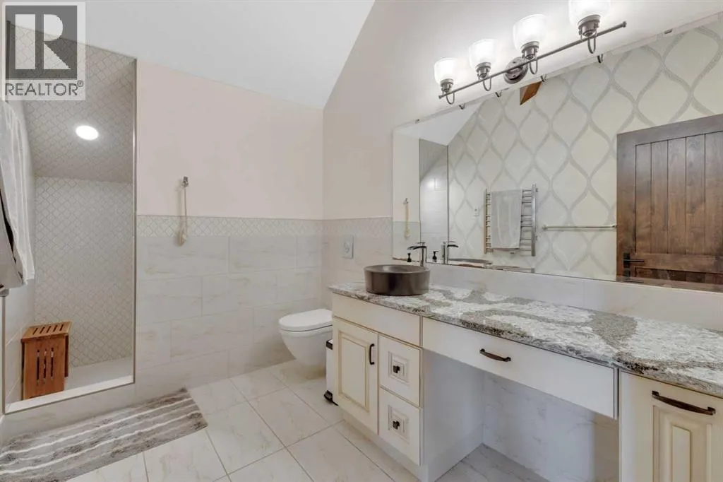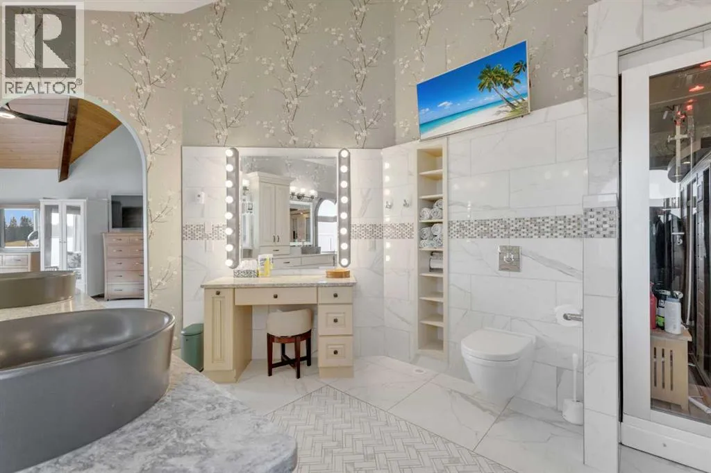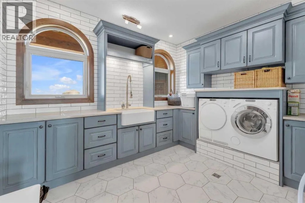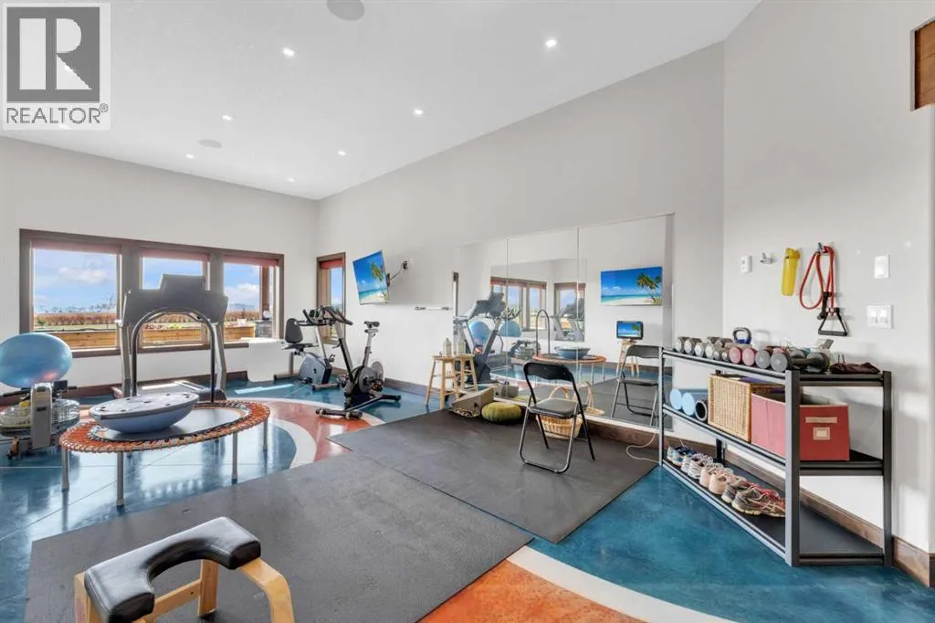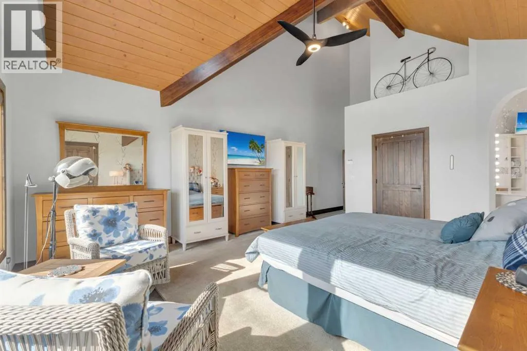 This estate presents the rare combination every buyer hopes to find: an architecturally stunning home, a fully equipped commercial grade shop, and nearly 100 acres of productive farmland, all crafted to exceptional standards. Construction began in 2014, with the home progressing through a meticulous multi year build and receiving full compliance and occupancy approval in 2017. Offering over 6,850 sq ft of refined living space (3,687 sq ft above grade + 3,163 sq ft below), this custom Linwood Homes estate provides privacy, accessibility, and rural serenity just minutes from Red Deer, Lacombe, Sylvan Lake, and the QE2. Inside, rich cherrywood cabinetry, beams, intricate tilework, and 27 foot vaulted ceilings define the warm, luxurious atmosphere. The gourmet kitchen offers quartz counters, built in Miele appliances, LED lighting, and a large walk in pantry. Triple pane windows frame expansive views, while the living roomâs stone surrounded woodstove and the family roomâs gas fireplace create inviting gathering spaces. The primary suite features a spa inspired ensuite with steam shower, infrared sauna, dual sinks, and a large walk in closet. Additional bedrooms, a den, and a walkout basement with theater room and gym enhanced by fully insulated interior walls offer exceptional versatility. The lower level showcases polished concrete floors and a custom bar with cooled wine storage and beer tap, flowing to a lounge with gas fireplace and a covered patio. Two offices, a luxury laundry room, and a second garage entry laundry add convenience. The newly resurfaced main deck (2025; $23,500) and infinity swim spa maximize outdoor enjoyment. Comfort is ensured with three A/C units, two boilers, forced air, in floor heat, RO water system, spray foam insulation, and full weeping tile. Exterior features include cedar soffits and beams, board and batten siding, and Lindab steel eavestroughs. A 19 kW solar array (47 panels) significantly offsets utility costs. The heated 45'Ã29' at tached garage provides ample space. The 250'Ã60' industrial grade shop offers 18 ft ceilings, reinforced concrete, a 72 ft heated section with in floor heat, 2 post lift, five 16'Ã24' doors, an 18'Ã40' hangar door, full kitchen/staff room, sump, LED lighting, filtration, R60 insulation, and buried air and water lines. Set on 98.28± acres with 86± acres of #2 cropland, the property also includes a 1.42 acre surface lease ($3,900/yr), six 5,000 bushel grain bins, four hydrants, separate septic systems for the house and shop, and a second serviced homesite, an exceptional blend of beauty, function, and long term legacy. (id:27476)