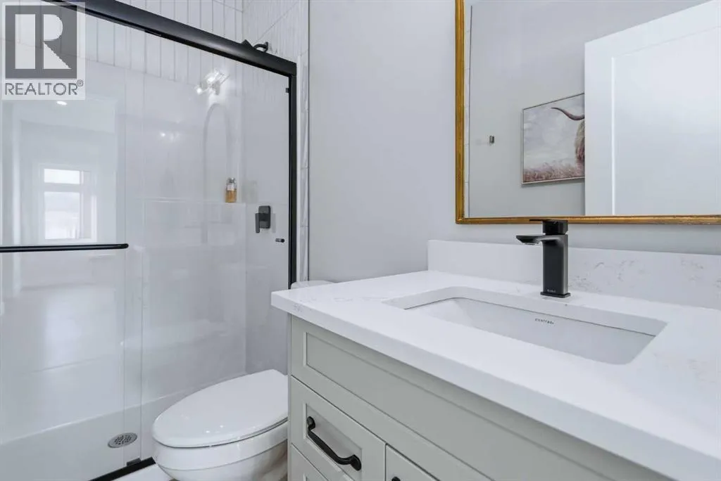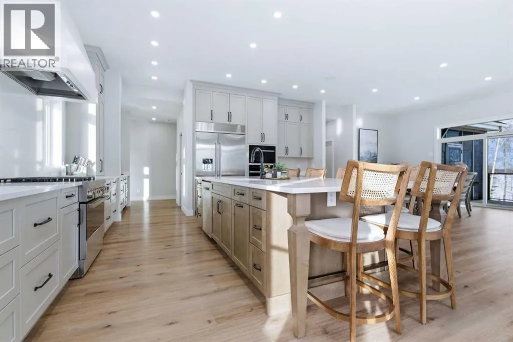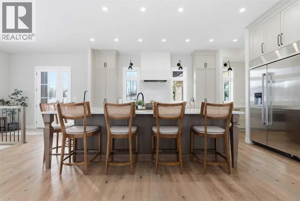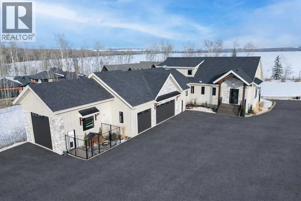 Welcome to this truly exceptional 4,800 sq. ft. custom 1.5-storey walkout, perfectly positioned on a ¾-acre lakefront lot in the exclusive and secluded Eagles Quay subdivision on the northwest end of Sylvan Lake. Built in 2023, this four-season Alberta dream home delivers luxury, privacy, and premier lake living.Enjoy full lake access with a communal dock for boats and personal watercraftâperfect for summer days on the water and unforgettable sunset cruises. Inside, the home offers five spacious bedrooms, four bathrooms, a dedicated office, and a stunning 3-season sunroom with two heaters overlooking the lake, ideal for extending your lake enjoyment well into spring and fall.The open-concept main floor is flooded with natural light and designed for entertaining, while the upper level provides private retreats for family and guests. Convenience is unmatched with laundry on the main floor, second floor, and in the garage.Entertain like no other in the ultimate man cave, featuring a full bar, built-in ventilation for enjoying a smoked old fashioned, and a top-of-the-line Foresight golf simulator that seamlessly converts into a 14â x 10â home theatre screen for movie nights and game days.Outside, the property continues to impress with year-round programmable Gemstone lighting, a beautiful firepit and seating area, and full-service RV hookups for visiting family and friends. The newly paved RR 24 leads to a huge paved driveway, offering both convenience and exceptional curb appeal.Car enthusiasts and outdoor adventurers will appreciate the massive three-car garage plus an additional RV/boat bay with a 12â overhead door, providing space for all your toys.This is more than a homeâitâs a lifestyle. Luxury, privacy, and lakefront living, all wrapped into one extraordinary property. (id:27476)