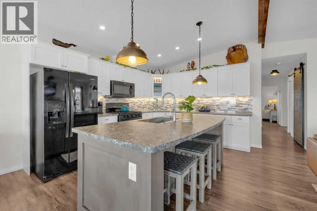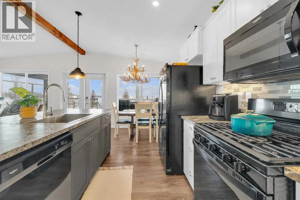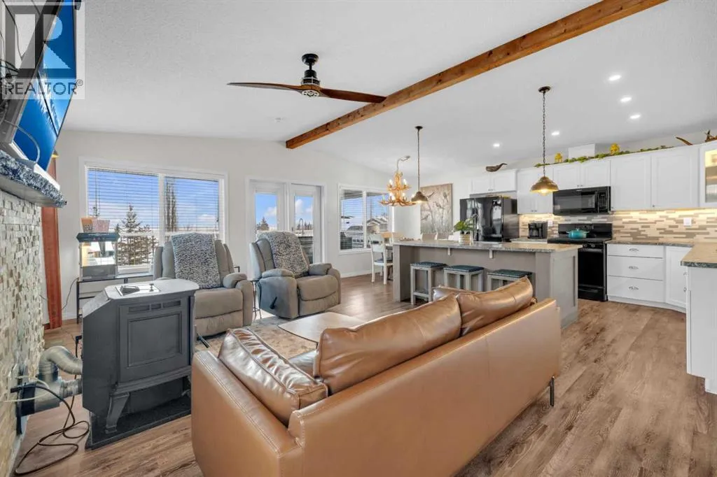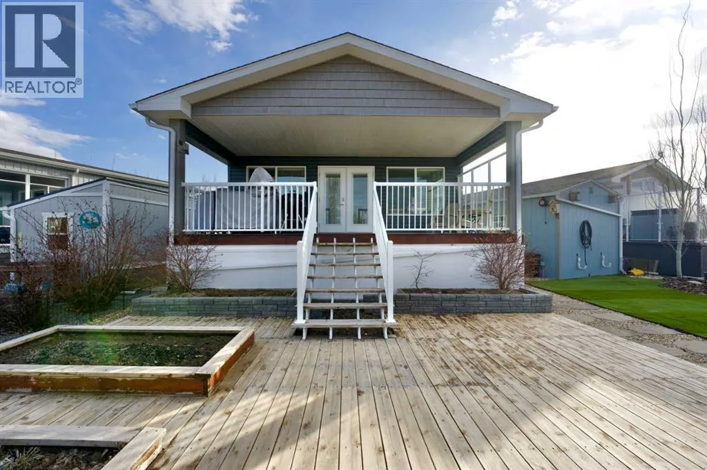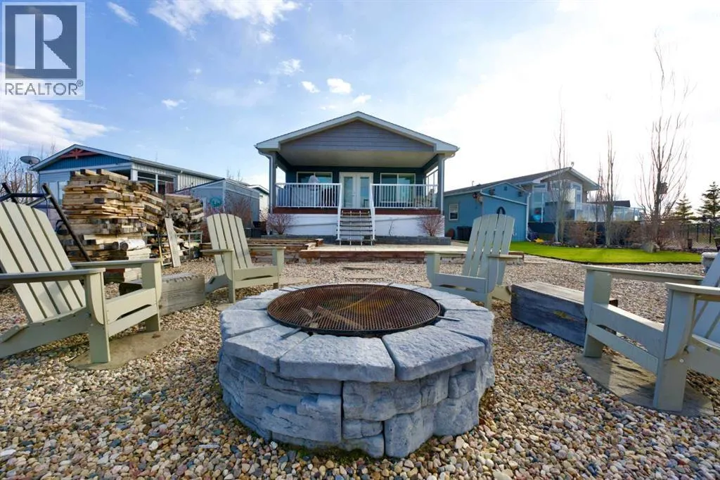 Welcome to Sandy Point Resort, an exclusive gated lakeside community on the west shores of Gull Lake, just minutes from Bentleyâwhere refined living, nature, and recreation come together in a true four-season retreat.Tucked away on a large pie-shaped lot in a quiet cul-de-sac, this custom-designed 2-bedroom, 1-bathroom executive home backs directly onto the golf course driving range with no neighbours behind, offering exceptional privacy and unobstructed panoramic views of the lake and fairways. Fully landscaped and thoughtfully positioned, this property delivers a peaceful, private setting surrounded by breathtaking scenery. A spacious 10 x 24 covered back deck extends your living space outdoors, providing the perfect place to relax, entertain, and take in the stunning lake and golf course views in any season.Inside, the Great Room is the heart of the homeâwarm, inviting, and designed for both comfort and entertaining. A cozy pellet stove framed by a striking stone feature wall creates ambiance year-round, while expansive picture windows flood the space with natural light and showcase the stunning views. The open-concept design flows seamlessly into the chefâs kitchen, complete with a gas stove, pot drawers, custom lighting, and a spacious walk-through pantry with solid shelving, offering both style and exceptional functionality.The primary bedroom easily accommodates a king-size bed and features a large walk-through closet with Jack-and-Jill access to the bathroom, blending comfort with convenience. A generous second bedroom provides the perfect space for guests, making this home ideal for hosting family and friends.Sandy Point Resort offers a truly elevated lifestyle with exclusive resident amenities including a community gazebo with fire pit, playgrounds, scenic bike trails, and convenient on-site laundry, showers, and restrooms for year-round enjoyment. Golf enthusiasts will appreciate the driving range and the upcoming brand-new 12-hole golf course. Th e full-service marina with gas and propane makes lake days effortless, while the seasonal restaurant with rooftop patio is the perfect place to relax and take in the views.Additional features include gated storage, a community garden, and close proximity to local greenhouses and berry farms, offering a true farm-to-table lifestyle. Whether youâre seeking a seasonal escape or a full-time residence, this one-of-a-kind custom home is a rare opportunity to own a prime lake property in one of Albertaâs most desirable resort communities.Enjoy lakeside living, year-round recreation, and a vibrant communityâall just a short drive to Bentley, Lacombe, and Sylvan Lake.This is lake life at its finest. Book your showing today. (id:27476)
