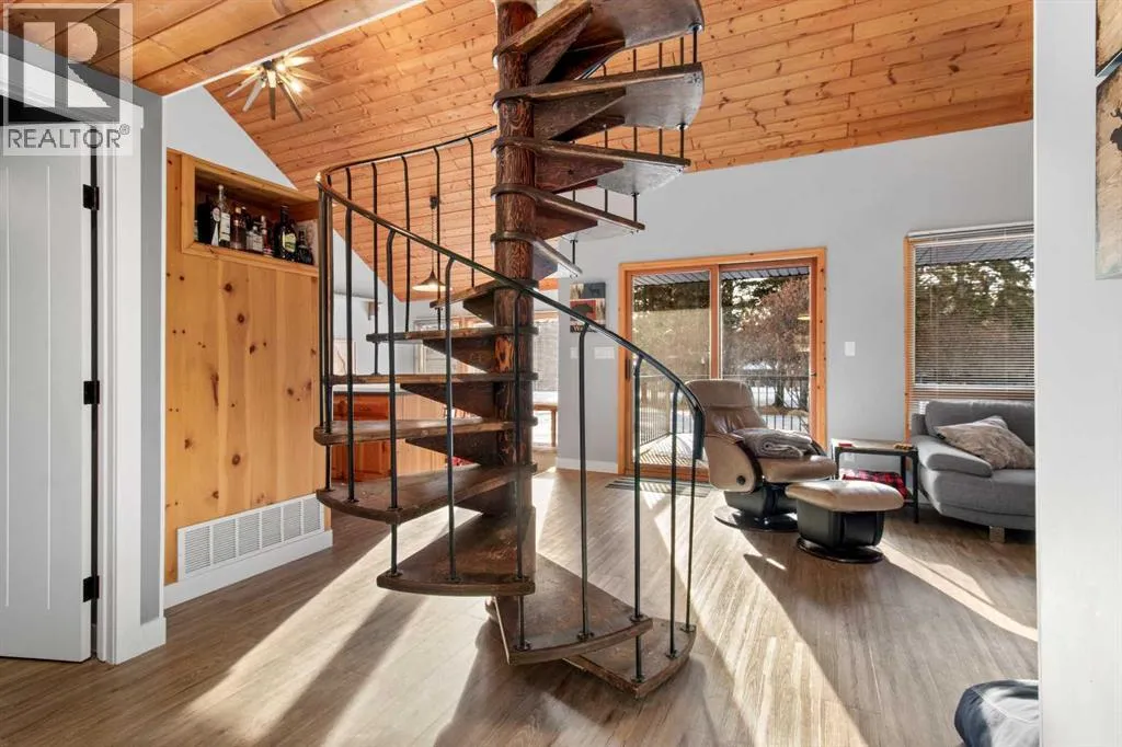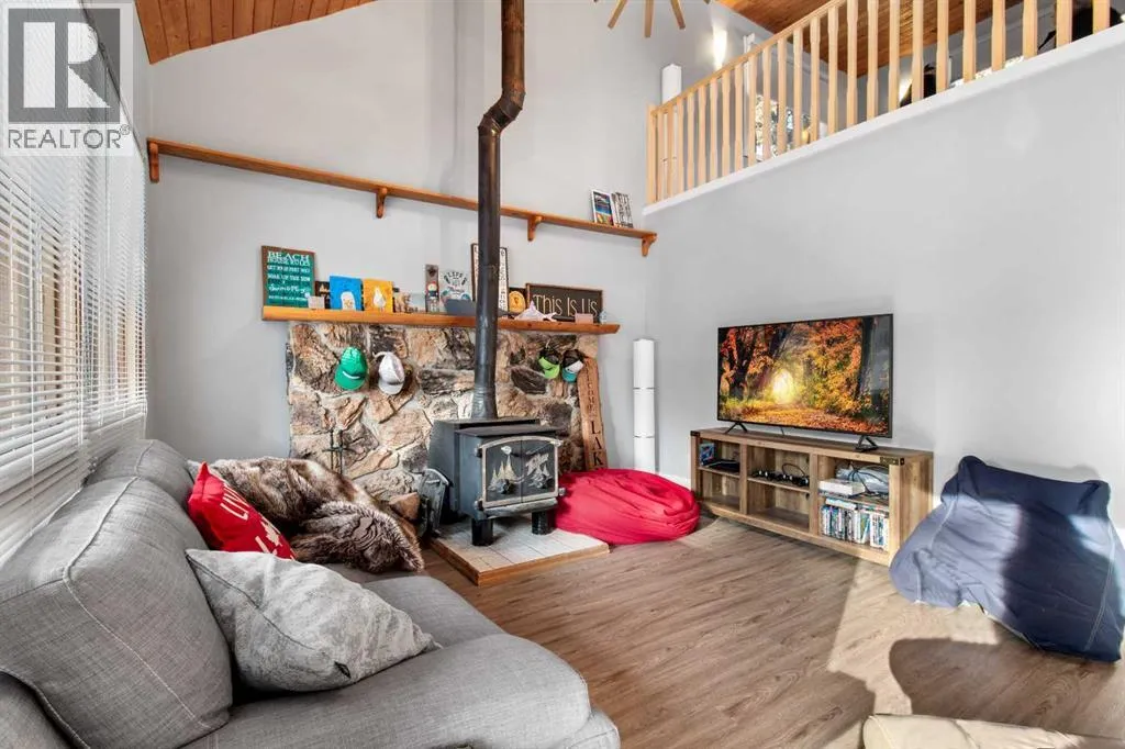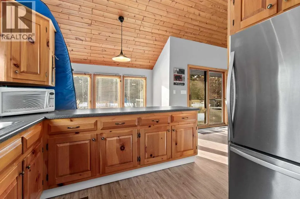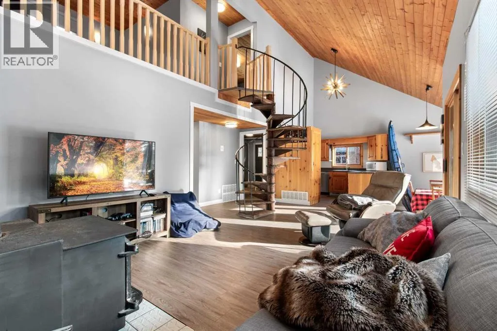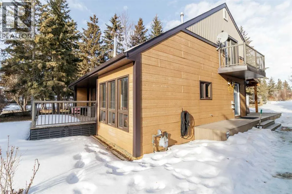 Discover the perfect lakeside retreat in the sought-after Birch Bay community on the northwest shores of Gull Lake, a premier recreational destination in Central Alberta. Nestled midway between Edmonton and Calgary, this peaceful, family-friendly subdivision offers private beach access, scenic parks, walking trails, a community boat launch, and a welcoming atmosphere ideal for seasonal cabin living or year-round enjoyment.This charming, turn-key 4 season cottage has been thoughtfully renovated and upgraded since 2018, blending rustic charm with modern comforts . The open-concept main floor features soaring beamed ceilings, abundant natural light from skylights, a spacious living/dining area, and a fully equipped kitchen ready for family gatherings and entertaining.Accommodations include a cozy main-floor bedroom with a queen-sized bottom bunk and single top bunk, plus a convenient 3-piece bathroom. A central spiral staircase leads to the upper level, where youâll find a generous loft area perfect for additional guest sleeping or relaxation, and a primary bedroom complete with a 4-piece ensuite and private deck access.Step outside to enjoy not one, but two expansive decks: the front deck offers sunny southern exposure for basking in the warmth, while the covered back deck provides shaded comfort and enhanced privacy within the secluded, treed yard. Just a short stroll along quiet roads or scenic paths leads to the private community beach, boat launch, and parkâyour gateway to endless lake activities including boating, swimming, fishing, and more. Nearby amenities feature a 9-hole golf course, with winter recreation options such as ice fishing, curling, hockey, and snowmobiling adding year-round appeal.Escape the city hustle and embrace quality family timeâwhether playing games, reading by the fire, or simply soaking in the natural beauty and tranquility of lakeside living. This meticulously updated cottage is ready for immediate enjoyment. Donât miss your oppo rtunity to own a piece of Birch Bay paradise! (id:27476)