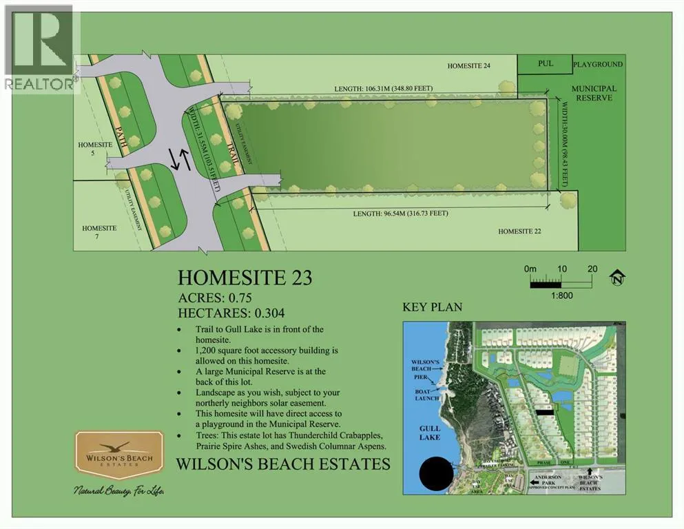 Premiere community and location in Central Alberta! Perfect spot to build your desired property on a 0.75 acre Estate lot! This community is close to Gull Lake on the Southeast side, treed for privacy, and environmentally friendly. There is an environmental reserve nearby & activity-packed playground in Anderson park, an underrated gem that is perfect for families of all ages. The Wilsonâs Beach Estates & Lacombe County integrated trail system is an awesome amenity allowing residentâs to take full advantage of the paved paths, access all of the community and surrounding area easily. Only a 5 min walk to Gull Lake makes activities such as boating, camping, fishing, swimming, and skating a daily possibility! The developers & current residents have been working hard to provide an amazing community atmosphere and look forward to sharing the experience with new owners. These are just a few of the details to be shared, there is more information regarding building sites, architectural guidelines, utilities and more available! Check out the images of the home Veldhuisen Construction has put together that could be built on these lots, as well there is a pdf of the floor plans under the documents tab! Please contact the listing agent for more info and pricing! (id:27476)