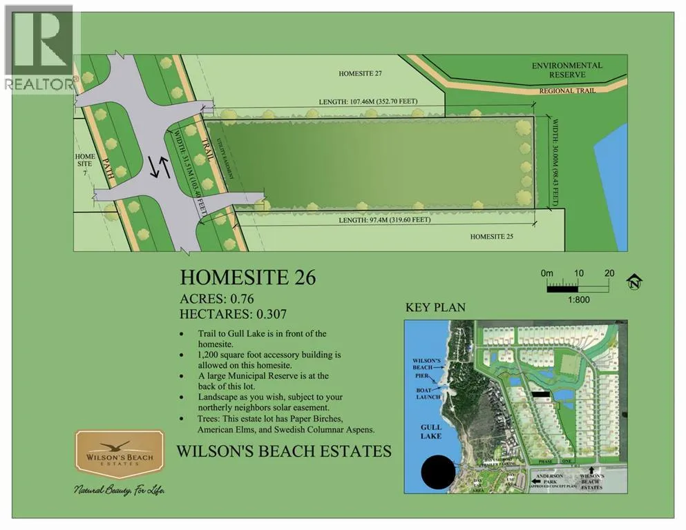 Premiere community and location in Central Alberta! Perfect spot to build your desired property on a 0.76 acre Estate lot! This community is close to Gull Lake on the Southeast side, treed for privacy, and environmentally friendly. There is an environmental reserve nearby & activity-packed playground in Anderson park, an underrated gem that is perfect for families of all ages. The Wilson’s Beach Estates & Lacombe County integrated trail system is an awesome amenity allowing resident’s to take full advantage of the paved paths, access all of the community and surrounding area easily. Only a 5 min walk to Gull Lake makes activities such as boating, camping, fishing, swimming, and skating a daily possibility! The developers & current residents have been working hard to provide an amazing community atmosphere and look forward to sharing the experience with new owners. These are just a few of the details to be shared, there is more information regarding building sites, architectural guidelines, utilities and more available! Check out the images of the home Veldhuisen Construction has put together that could be built on these lots, as well there is a pdf of the floor plans under the documents tab! Please contact the listing agent for more info and pricing! (id:27476)