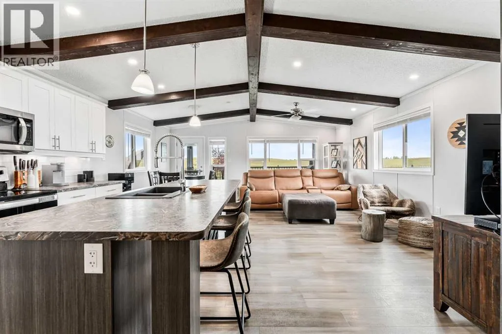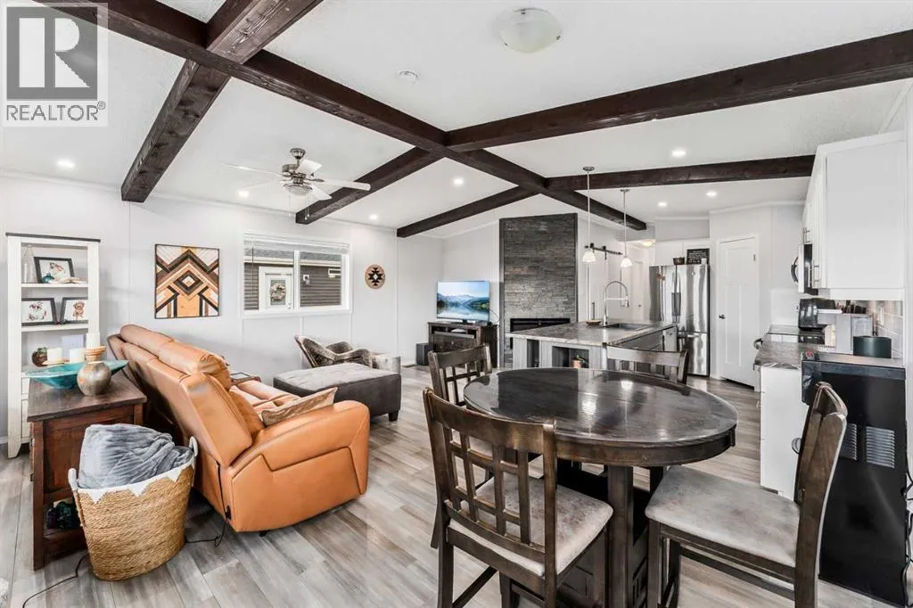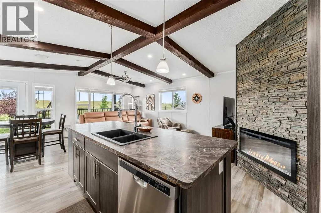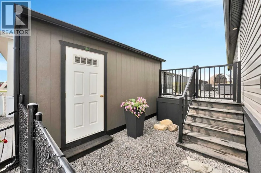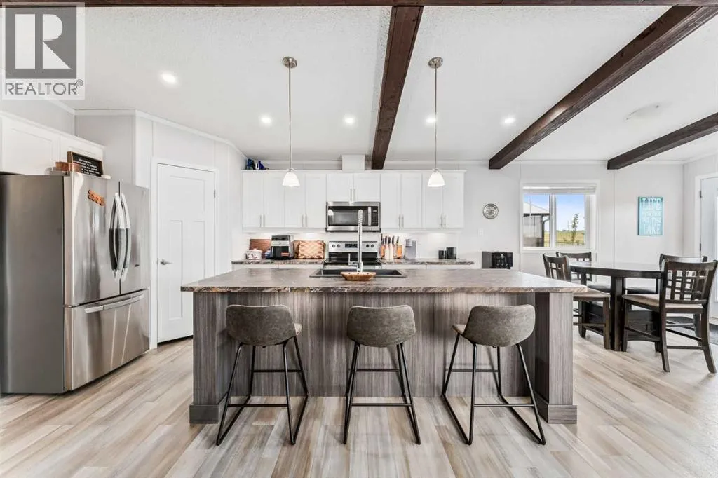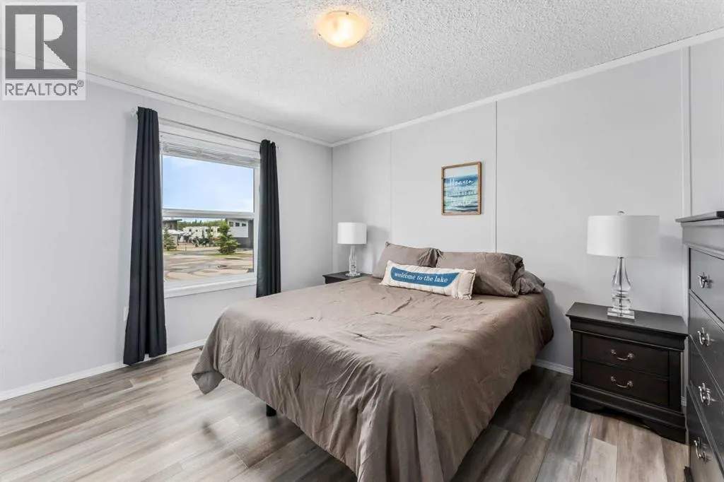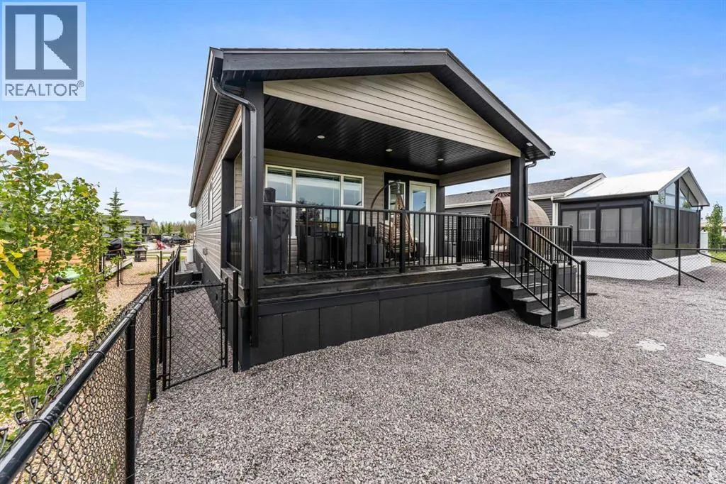 Welcome to Southview at Sandy Point, a sought-after gated lake community on the southwest shores of Gull Lake, where modern comfort meets the relaxed lifestyle of year-round lake living in Central Alberta. Built in 2021, this stylish 2-bedroom, 2-bathroom modular home offers 1,040 square feet of thoughtfully designed living space, making it an ideal option for a full-time residence, weekend getaway, or low-maintenance vacation property near the water. Step inside to a bright open-concept layout highlighted by vaulted beamed ceilings, large windows, and an abundance of natural light. The spacious kitchen is designed for both everyday living and entertaining, featuring a large island with breakfast bar seating, full pantry, stainless steel appliances, and plenty of cabinetry for storage. The inviting living room is centered around a cozy fireplace, creating the perfect space to unwind after a day on the lake or hosting friends and family. The primary bedroom retreat offers privacy and comfort with a generous walk-in closet and a full ensuite bathroom, while the second bedroom and additional 4-piece bathroom provide great flexibility for guests, family members, or a home office. A full-size laundry area adds everyday convenience to the homeâs functional design. Outdoor living is just as impressive. Step onto the large wraparound deck, perfect for enjoying morning coffee, summer BBQs, and relaxing evenings around the firepit. With no rear neighbours and open views toward the future golf course fairways, the setting offers peace, privacy, and beautiful prairie sunsets. The fully fenced, zero-maintenance yard is tastefully landscaped and includes a storage shed, allowing you to enjoy the outdoor space without the burden of heavy upkeep. Located within the year-round Southview community at Sandy Point Resort, residents enjoy access to one of the most desirable Gull Lake recreational destinations in Central Alberta. Community amenities include a public sandy beach, marina, playgrounds, walking trails, picnic areas, RV and boat storage, and plenty of opportunities for boating, fishing, and outdoor recreation. This location combines the best of lake life and convenience, just minutes from Bentley, a short drive to Sylvan Lake and Red Deer, and under two hours from Calgary and Edmonton. Whether youâre looking for a peaceful lakeside escape, or a comfortable home in a vibrant resort-style community, this property delivers. Move-in ready, beautifully maintained, and designed for low-maintenance livingâthis is your opportunity to own a piece of Gull Lake paradise and enjoy lake life 365 days a year. (id:27476)
