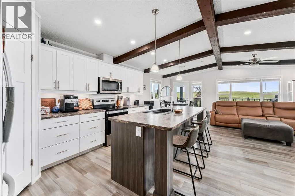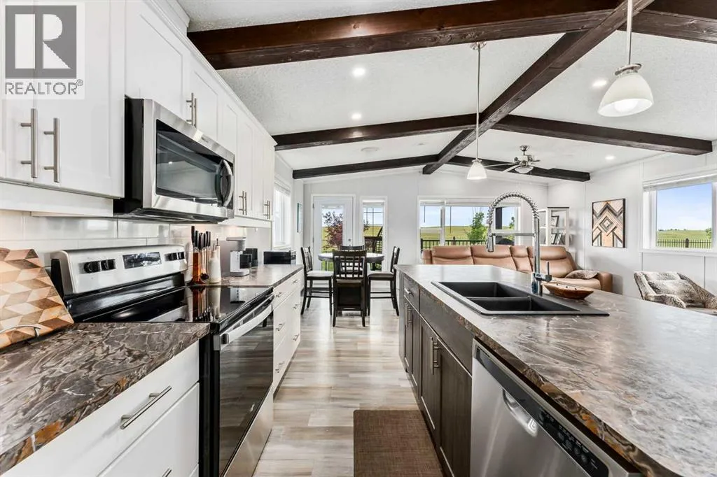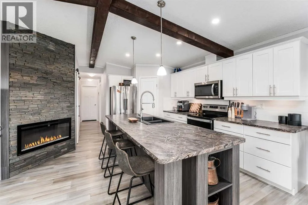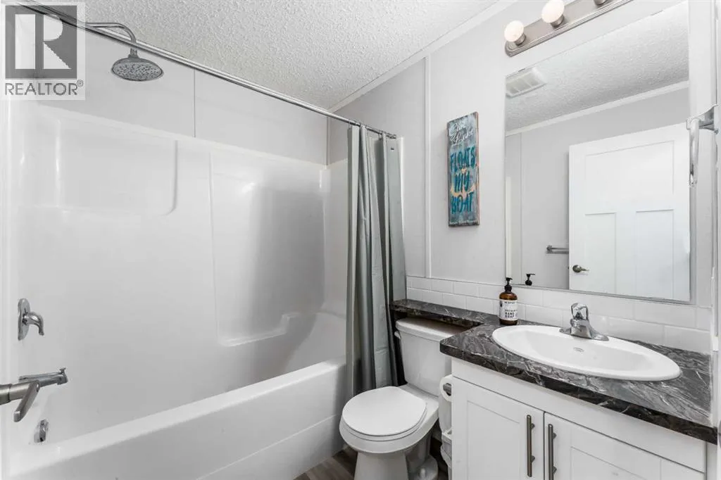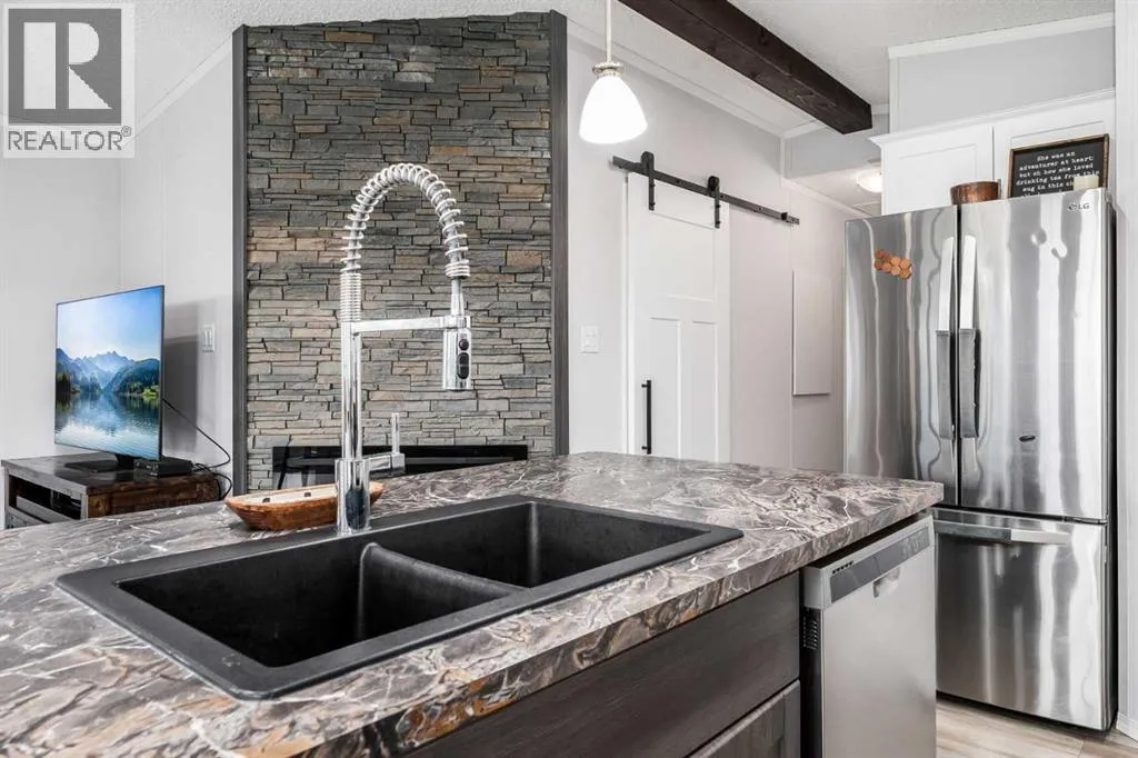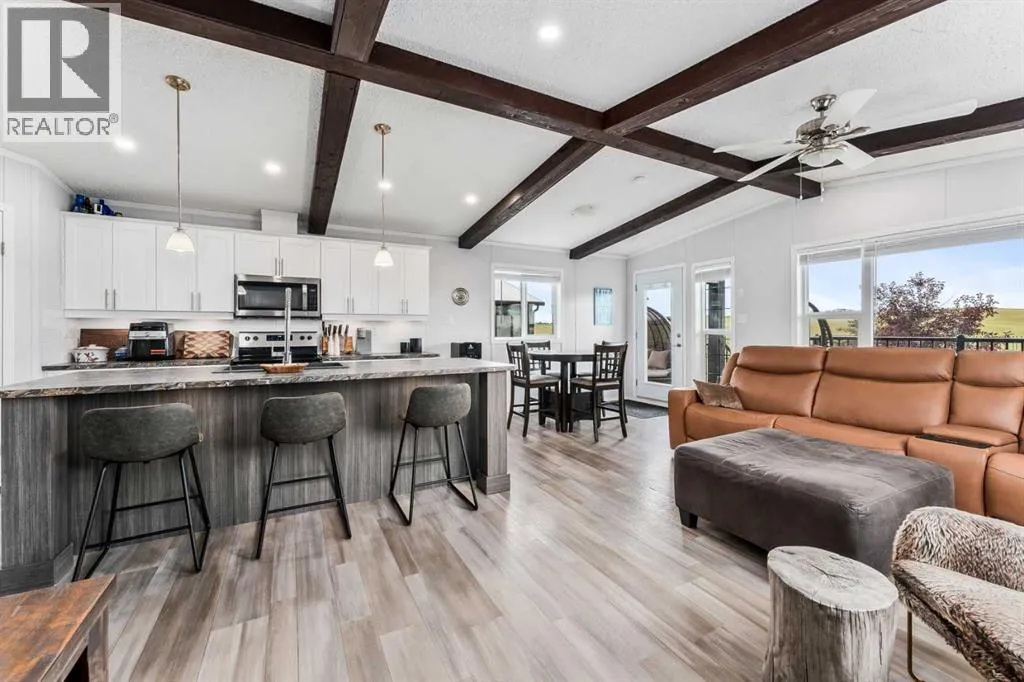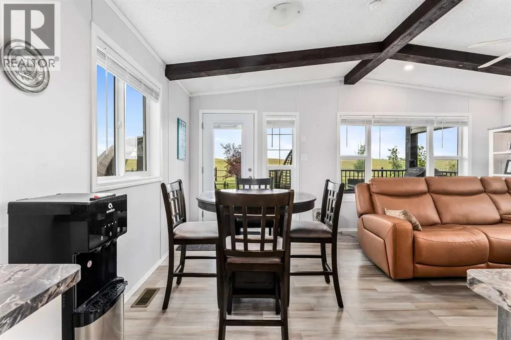 Welcome to Southview at Sandy Point, a sought-after gated lake community on the southwest shores of Gull Lake, where modern comfort meets the relaxed lifestyle of year-round lake living in Central Alberta. Built in 2021, this stylish 2-bedroom, 2-bathroom modular home offers 1,040 square feet of thoughtfully designed living space, making it an ideal option for a full-time residence, weekend getaway, or low-maintenance vacation property near the water. Step inside to a bright open-concept layout highlighted by vaulted beamed ceilings, large windows, and an abundance of natural light. The spacious kitchen is designed for both everyday living and entertaining, featuring a large island with breakfast bar seating, full pantry, stainless steel appliances, and plenty of cabinetry for storage. The inviting living room is centered around a cozy fireplace, creating the perfect space to unwind after a day on the lake or hosting friends and family. The primary bedroom retreat offers privacy and comfort with a generous walk-in closet and a full ensuite bathroom, while the second bedroom and additional 4-piece bathroom provide great flexibility for guests, family members, or a home office. A full-size laundry area adds everyday convenience to the homeâs functional design. Outdoor living is just as impressive. Step onto the large wraparound deck, perfect for enjoying morning coffee, summer BBQs, and relaxing evenings around the firepit. With no rear neighbours and open views toward the future golf course fairways, the setting offers peace, privacy, and beautiful prairie sunsets. The fully fenced, zero-maintenance yard is tastefully landscaped and includes a storage shed, allowing you to enjoy the outdoor space without the burden of heavy upkeep. Located within the year-round Southview community at Sandy Point Resort, residents enjoy access to one of the most desirable Gull Lake recreational destinations in Central Alberta. Community amenities include a public sandy beach, marina, playgrounds, walking trails, picnic areas, RV and boat storage, and plenty of opportunities for boating, fishing, and outdoor recreation. This location combines the best of lake life and convenience, just minutes from Bentley, a short drive to Sylvan Lake and Red Deer, and under two hours from Calgary and Edmonton. Whether youâre looking for a peaceful lakeside escape, or a comfortable home in a vibrant resort-style community, this property delivers. Move-in ready, beautifully maintained, and designed for low-maintenance livingâthis is your opportunity to own a piece of Gull Lake paradise and enjoy lake life 365 days a year. (id:27476)