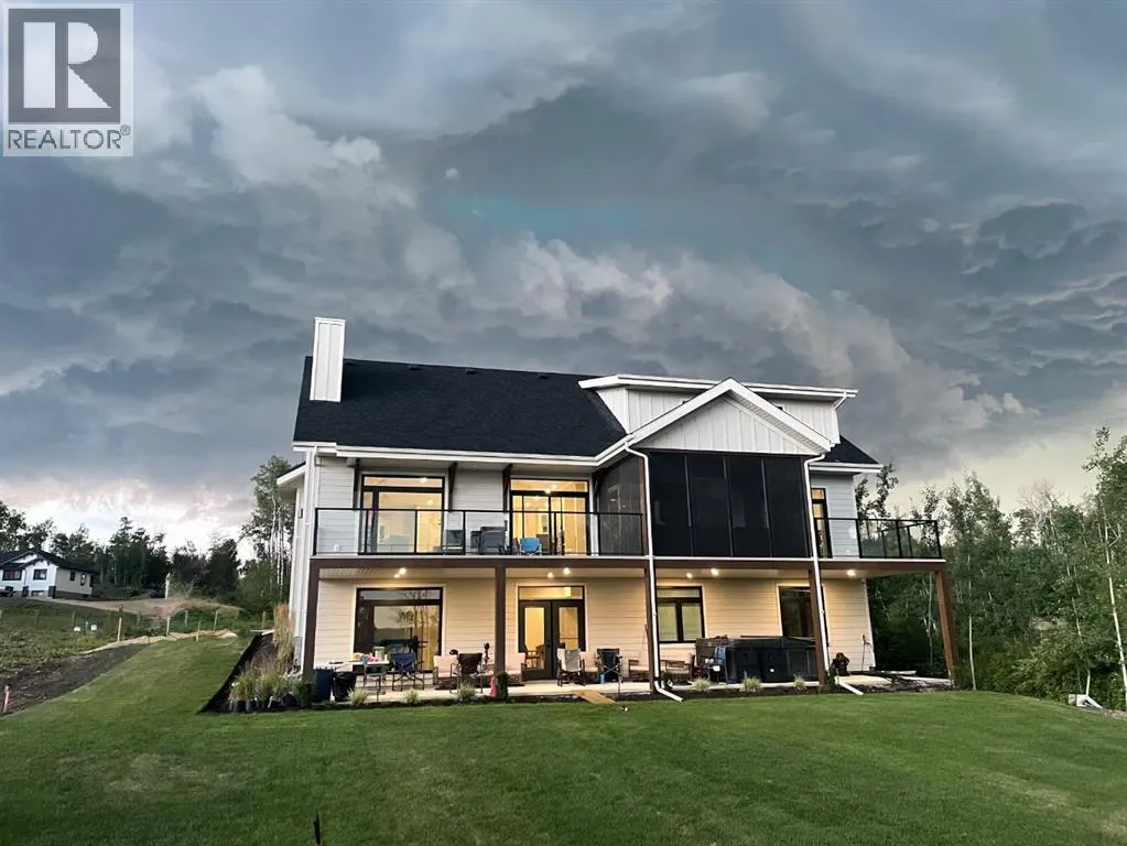 Welcome to this truly exceptional 4,800 sq. ft. custom 1.5-storey walkout, perfectly positioned on a ¾-acre lakefront lot in the exclusive and secluded Eagles Quay subdivision on the northwest end of Sylvan Lake. Built in 2023, this four-season Alberta dream home delivers luxury, privacy, and premier lake living.Enjoy full lake access with a communal dock for boats and personal watercraftâperfect for summer days on the water and unforgettable sunset cruises. Inside, the home offers five spacious bedrooms, four bathrooms, a dedicated office, and a stunning 3-season sunroom with two heaters overlooking the lake, ideal for extending your lake enjoyment well into spring and fall.The open-concept main floor is flooded with natural light and designed for entertaining, while the upper level provides private retreats for family and guests. Convenience is unmatched with laundry on the main floor, second floor, and in the garage.Entertain like no other in the ultimate man cave, featuring a full bar, built-in ventilation for enjoying a smoked old fashioned, and a top-of-the-line Foresight golf simulator that seamlessly converts into a 14â x 10â home theatre screen for movie nights and game days.Outside, the property continues to impress with year-round programmable Gemstone lighting, a beautiful firepit and seating area, and full-service RV hookups for visiting family and friends. The newly paved RR 24 leads to a huge paved driveway, offering both convenience and exceptional curb appeal.Car enthusiasts and outdoor adventurers will appreciate the massive three-car garage plus an additional RV/boat bay with a 12â overhead door, providing space for all your toys.This is more than a homeâitâs a lifestyle. Luxury, privacy, and lakefront living, all wrapped into one extraordinary property. (id:27476)