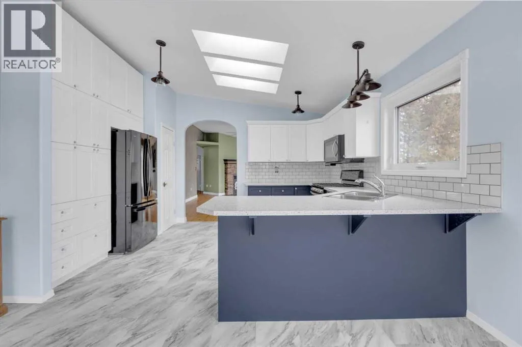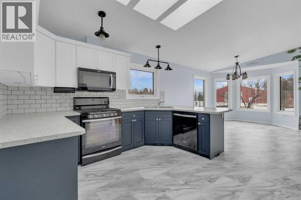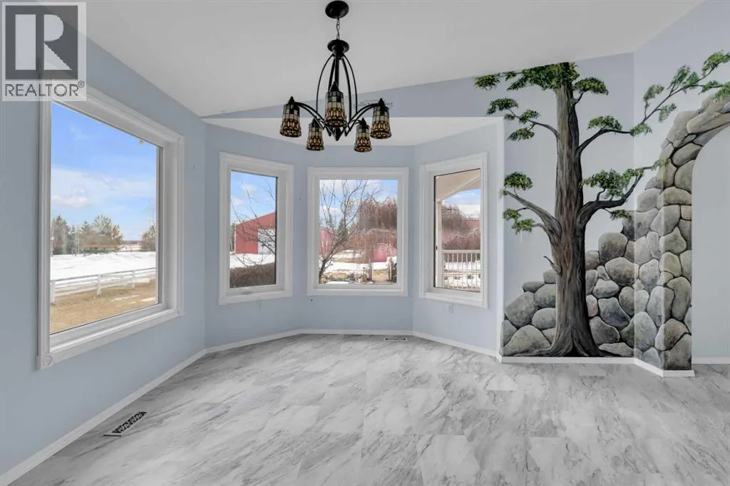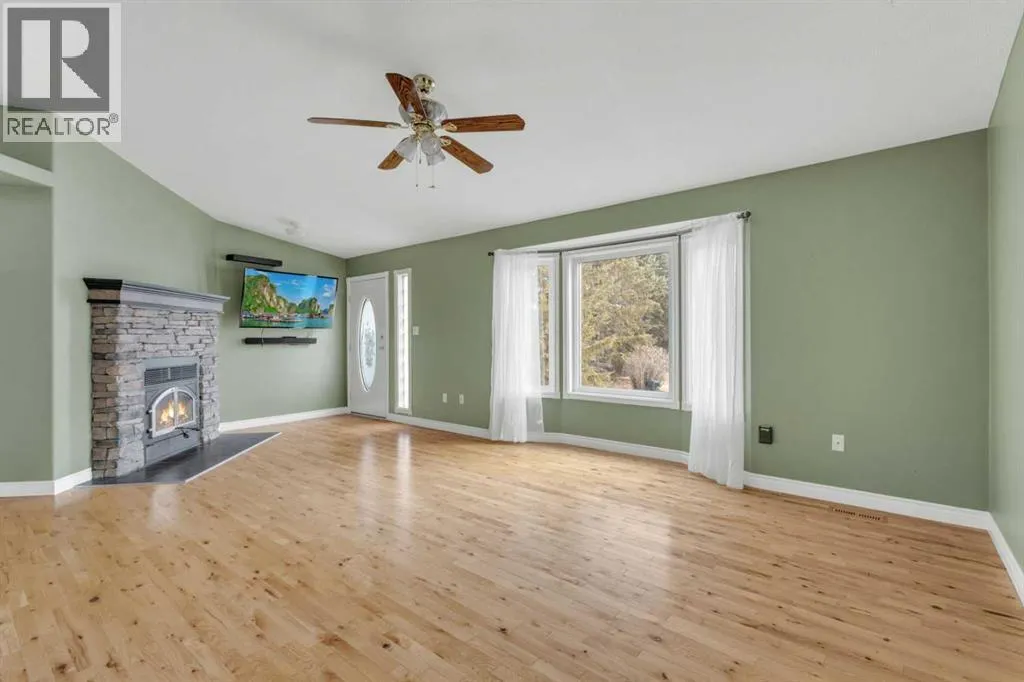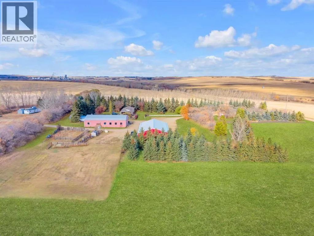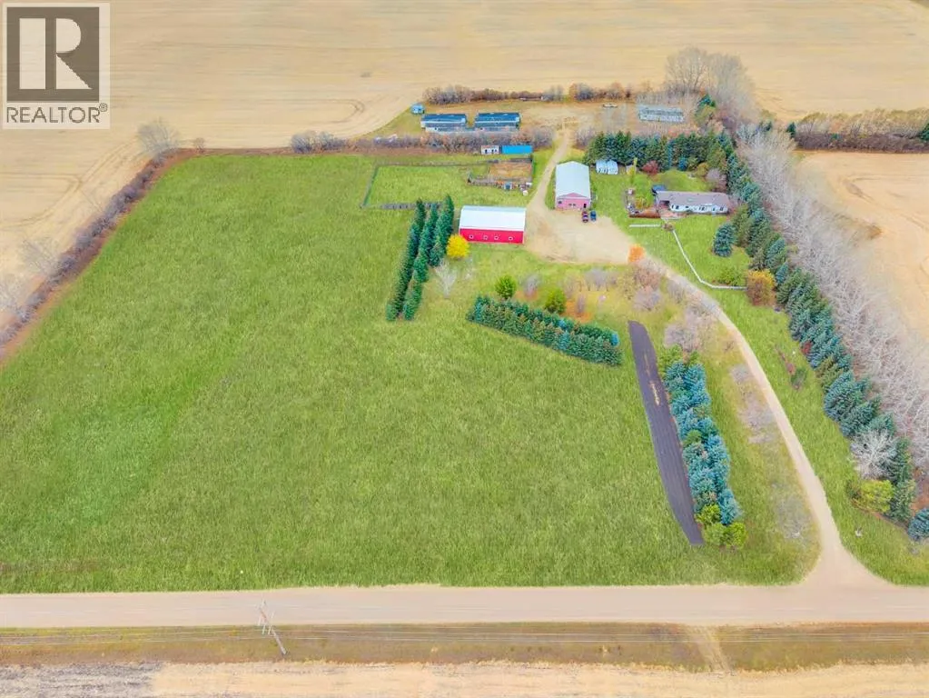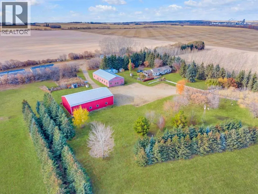 Exceptional opportunity to own 4.7 ± acres to start your county lifestyle. The parcel includes two shops, gated entrance and private setting. The home is a Triple M 2001 modular home in incredible condition on a heated 4-foot concrete foundation, offering nearly 1,885 sq ft, 3 bedrooms plus a den, 1 half bath, a 4-piece main bath, and a 3-piece ensuite. Bright bay windows, a skylight, and a wood-burning fireplace create warm, inviting living spaces, while outside features include a huge, welcoming deck, incredible landscaping, an ornamental fish pond, and a fully enclosed three-season gazebo. Infrastructure is outstanding with two shops. Shop #1 is a 40 à 80 à 14 ft lined and insulated shop with two 13.5 à 20 ft sliding doors, radiant heat, cement floor, floor drain, and fully insulated interior. Shop #2 is a 72 à 48.5 à 16 ft pole shed built in 2018 with a 14 à 20 ft overhead door, gravel floor, walk-in access, and eight windows providing natural light. The yard is reinforced for heavy oilfield traffic, offering durability and excellent access for large trucks and equipment, and additional buildings include three wooden sheds and an outhouse. Recent upgrades include the existing well being recased with new lining and a new pump in 2024, and a new septic tank and field installed in spring 2025. Located just ½ mile off pavement (Hwy 597), 1 mile from the Prentice plant, 3 miles from the NOVA Joffre plant, 13 miles from Lacombe, and 10 miles from Blackfalds. (id:27476)