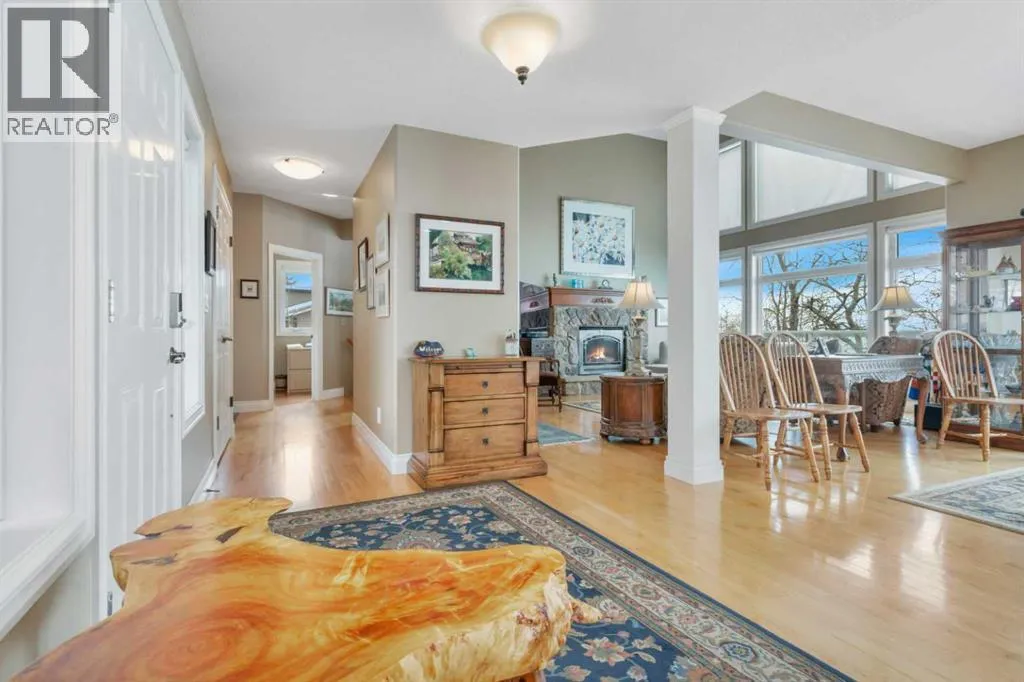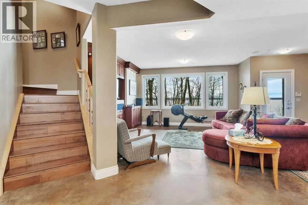Is there a lakefront home in Sylvan Lake with sunset views, a triple heated garage, and a walkout basement? 12 Blissful Beach offers exactly that, combining panoramic lake views, in-floor heating across multiple levels, and versatile living spaces designed for both everyday comfort and entertaining. Welcome to 12 Blissful Beach on the sunny side of Sylvan Lake, where incredible sunsets and true lakefront living define the experience. This Bowood built home features a triple heated garage and a thoughtfully designed layout with a main floor living room complete with wet bar, sink, bar fridge, and gas fireplace. The kitchen offers a large granite island, double sink facing the lake, and abundant cabinetry, flowing into a dining area filled with natural light and expansive lake views. A sunroom just off the dining space provides a flexible retreat with screens and glass, while a dedicated office adds everyday convenience. The upper level showcases a primary suite with unobstructed lake views, a spa-inspired ensuite with dual sinks, steam shower, soaker tub, in-floor heat, and a walk-in closet, along with additional bedrooms, a full bathroom with separate tub and tiled shower, a games or reading area, and a bonus room with gas fireplace. The walkout basement expands the living space with a family room, additional bedrooms, and acid-wash concrete floors with in-floor heating. Outdoors, enjoy a fenced garden, dog run, RV parking with 30 amp service, Quick Curbing, recently planted trees, and your own dock, lift, and lakefront storage shed. Additional features include reverse osmosis for kitchen and fridge, water softener, gas lines to upper deck and sunroom and central air conditioning. (id:27476)