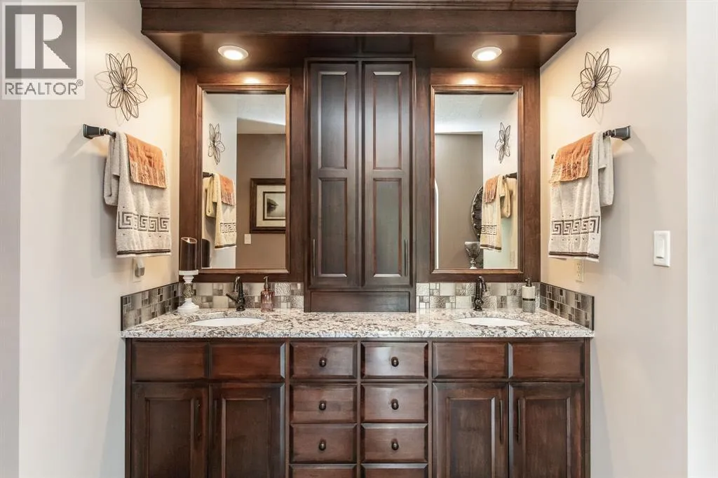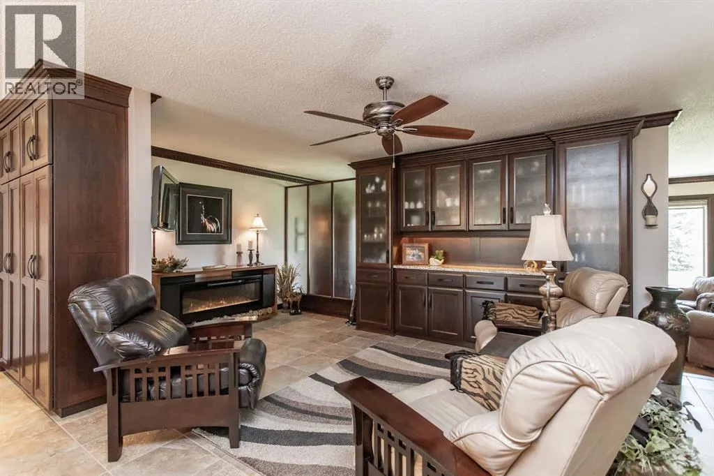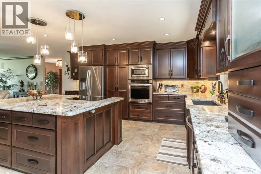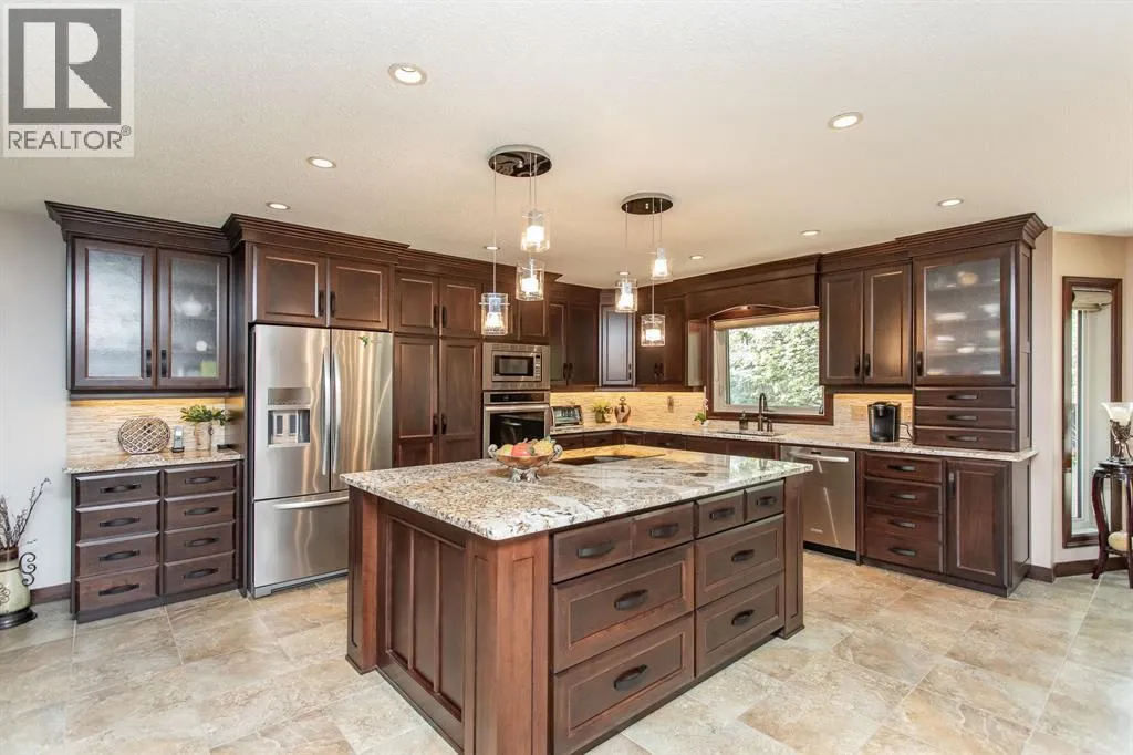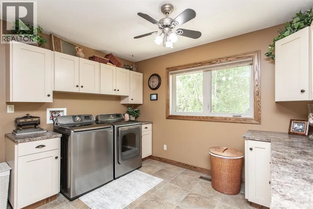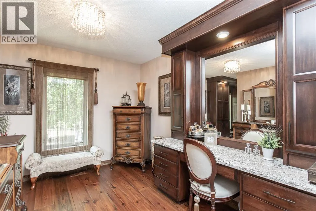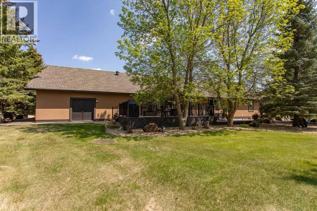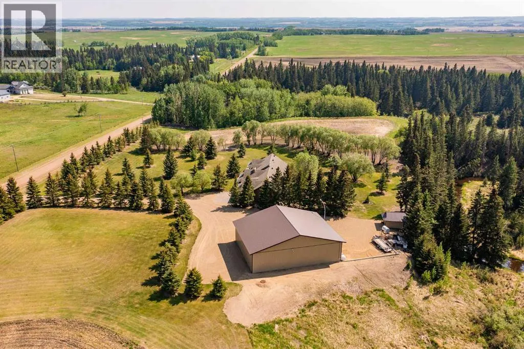 The perfect acreage for the discerning buyerâset on 32 private acres just minutes from Red Deer, where space, privacy, and quality come together effortlessly. This beautifully renovated 3,100+ sq.ft. bungalow features an attached heated garage and workshop, along with a dream 52x70 detached shop built for both function and flexibility.This home offers an open-concept layout designed for both everyday living and entertaining, with high-end finishes and custom millwork throughout. The Kitchen anchors the home with granite countertops, a massive centre island, upgraded stainless appliances including an induction stove, and rich cherrywood cabinetry. From the 200-year-old reclaimed hardwood floors to the travertine backsplash and feature wall, every detail has been thoughtfully chosen and built to last.The main floor is both functional and comfortable, with three Bedrooms, main floor laundry, and a standout Primary Suite featuring dual vanities, a tiled rain shower, and a fully finished dressing room with custom cabinetry. Downstairs, the Theatre Room with a 98â screen and custom wet bar creates the perfect space to unwind or host.Outdoor living is just as intentional, with an expansive 1,000 sq.ft. west-facing deck complete with Wolf decking, aluminum railings, LED lighting, and surround soundâoverlooking a private, tree-lined setting near Jones Creek. Whether itâs quiet mornings or evenings with friends, this space delivers.For those who need space to work, build, or store, the property is exceptionally well-equipped. The attached heated double garage connects to a 15x22 workshop with in-floor heat, while the 52x70 detached shop includes a bathroom, radiant gas heat, and two 14x14 overhead doorsâready for business, hobbies, or serious storage.Additional upgrades include new furnaces and hot water tanks, triple-pane windows, updated electrical and plumbing, Hunter Douglas blinds, solid core doors, acrylic stucco, and a custom stone pillar security gate at the entr ance.A property like this doesnât rely on one standout featureâitâs the way everything comes together. Space, quality, privacy, and function, all in one setting. (id:27476)