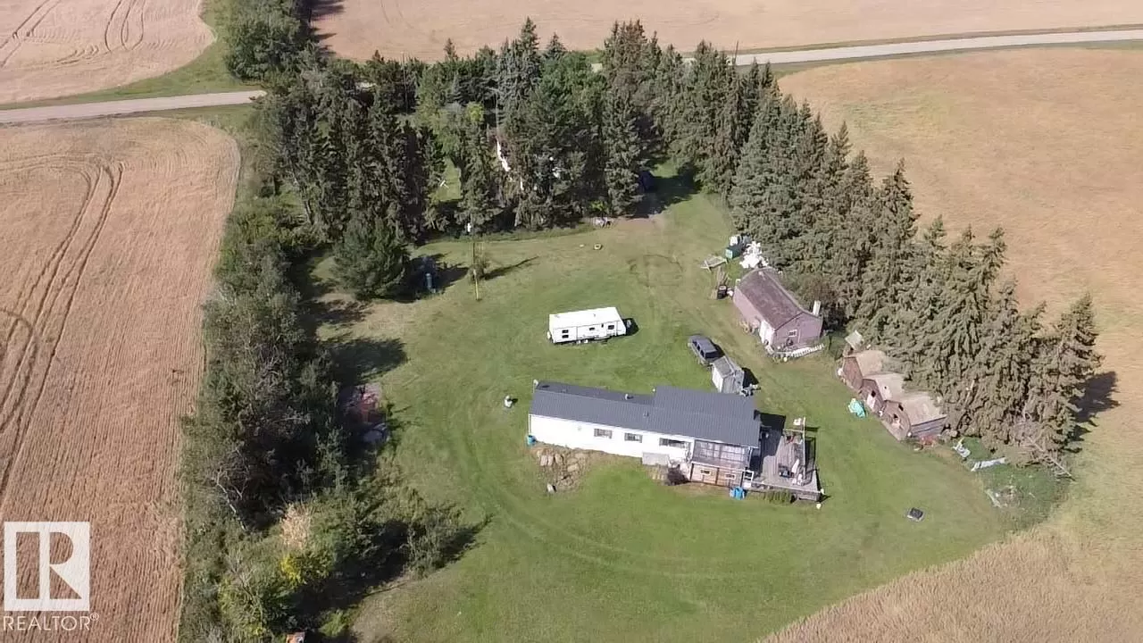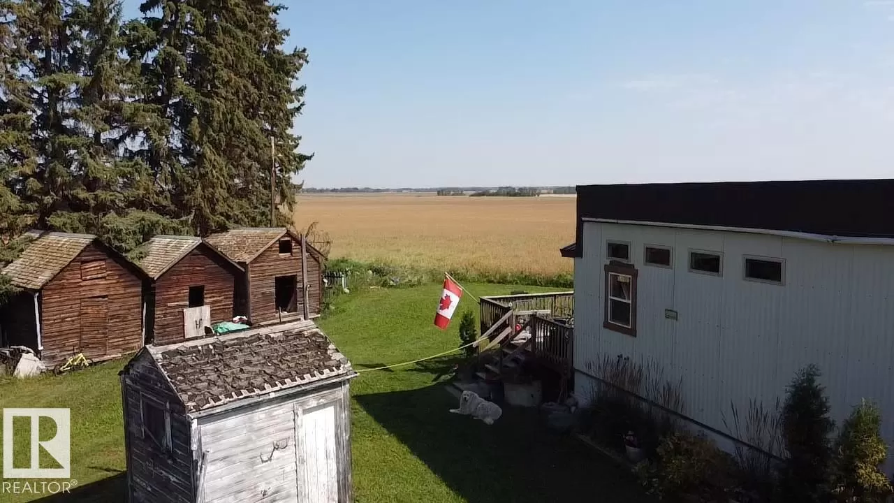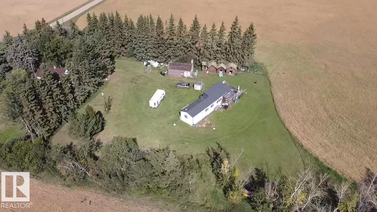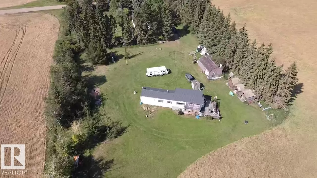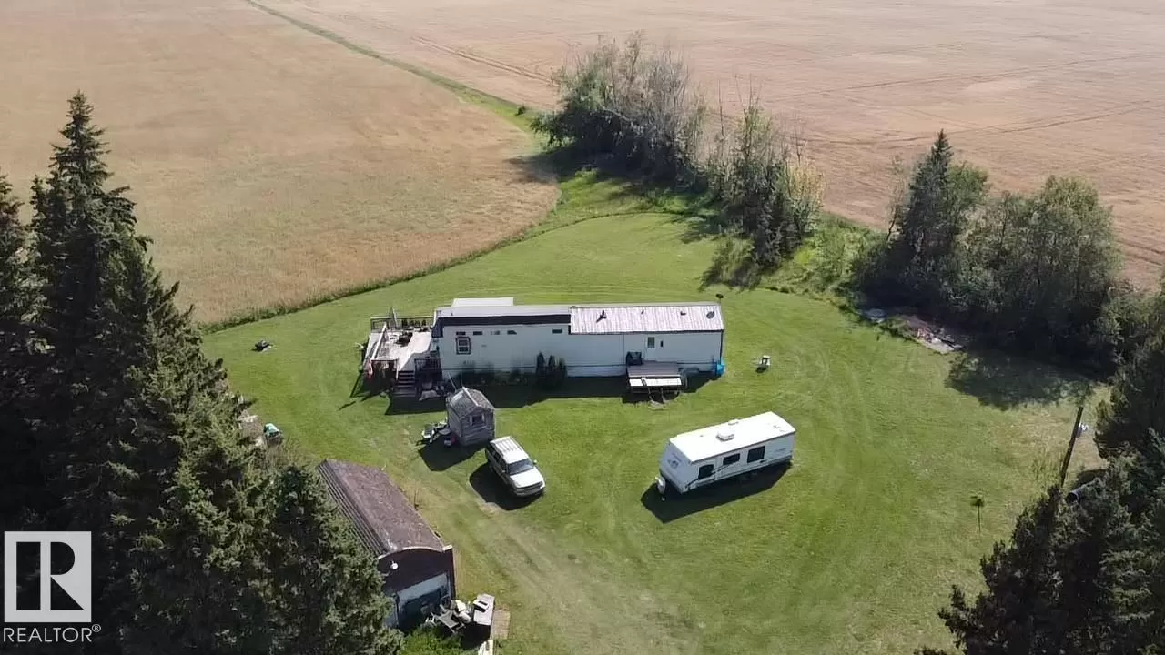Gorgeous and peaceful acreage north of the town of Andrew. This 2.59 acre property offers its occupants a great lifestyle away from city noise. The home consists of a mobile which has been modified and updated with a bright and open living area boasting high cathedral ceiling in the kitchen and living room. There are 3 generous size bedrooms and an upgraded full bath all on this floor. The home has a new steel roof and is also equipped with central air conditioning and features a huge deck overlooking the property and unobstructed vastness of county farmland as well as a second deck at the front of the home. The land also includes an older garage and some outbuildings. The yard is landscaped and inviting and provides tons of opportunities for having fun with family and friends and enjoying country life at its best! (id:27476)