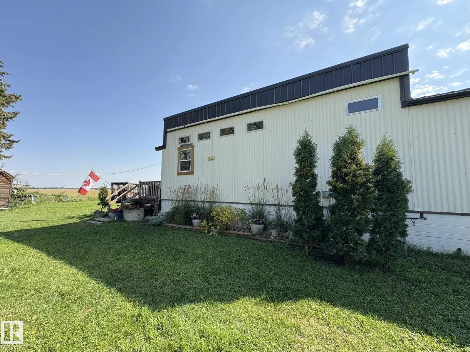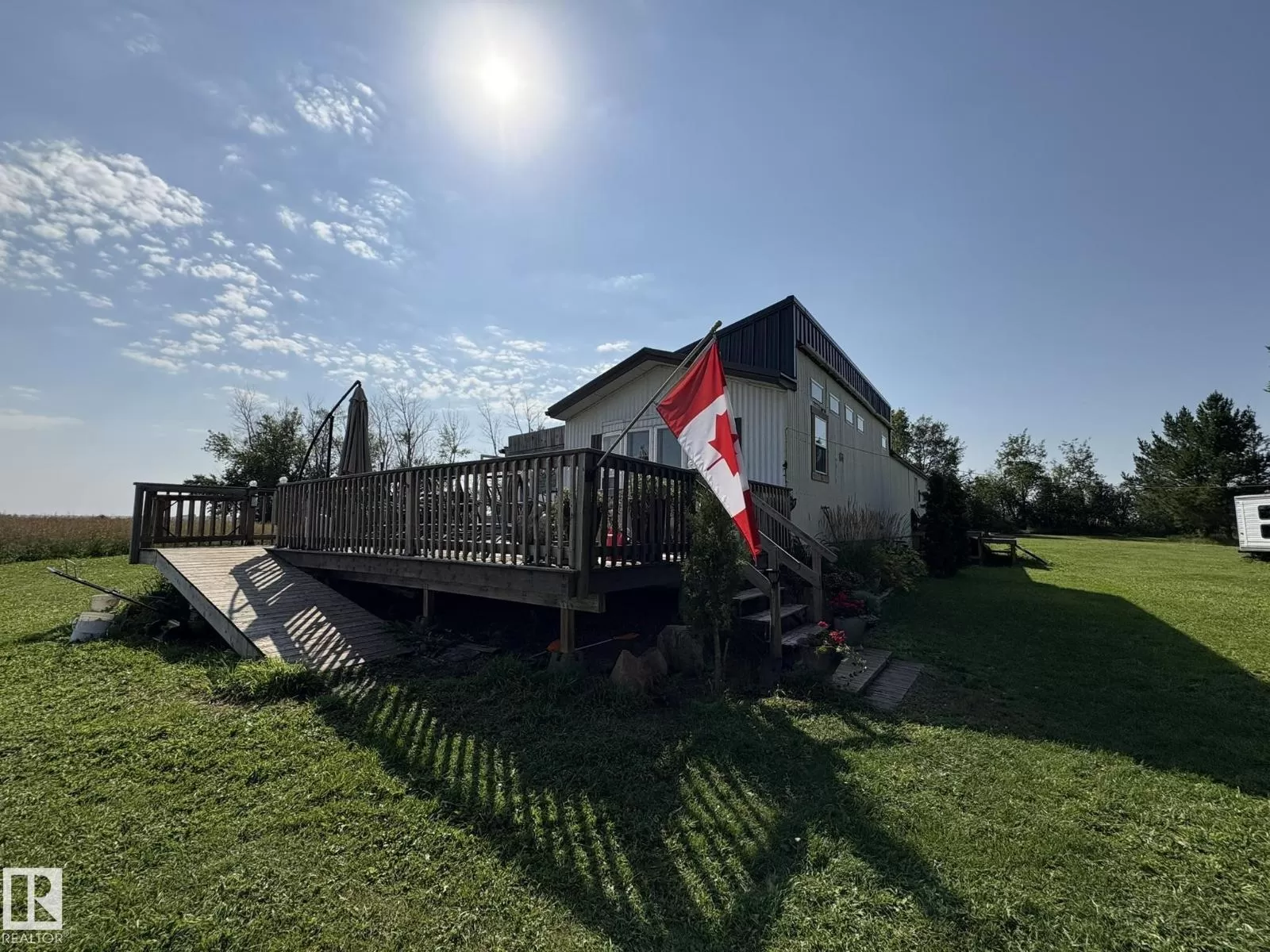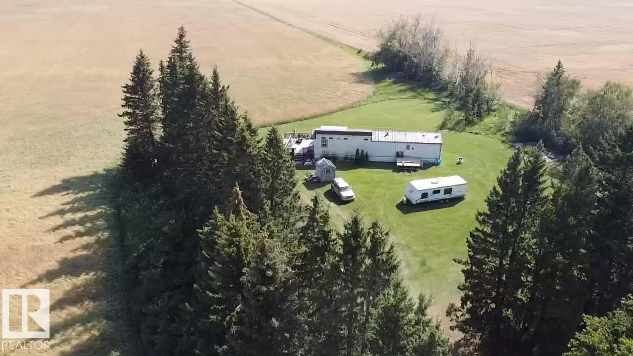 Gorgeous and peaceful acreage north of the town of Andrew. This 2.59 acre property offers its occupants a great lifestyle away from city noise. The home consists of a mobile which has been modified and updated with a bright and open living area boasting high cathedral ceiling in the kitchen and living room. There are 3 generous size bedrooms and an upgraded full bath all on this floor. The home has a new steel roof and is also equipped with central air conditioning and features a huge deck overlooking the property and unobstructed vastness of county farmland as well as a second deck at the front of the home. The land also includes an older garage and some outbuildings. The yard is landscaped and inviting and provides tons of opportunities for having fun with family and friends and enjoying country life at its best! (id:27476)
