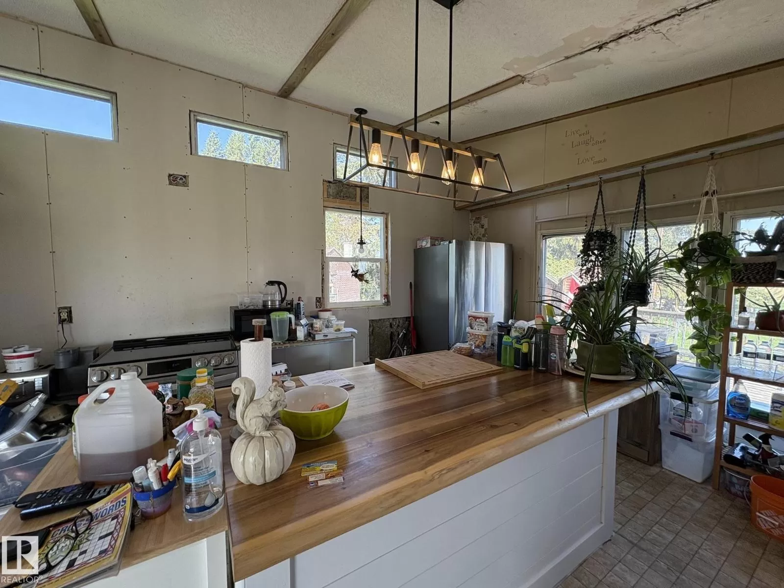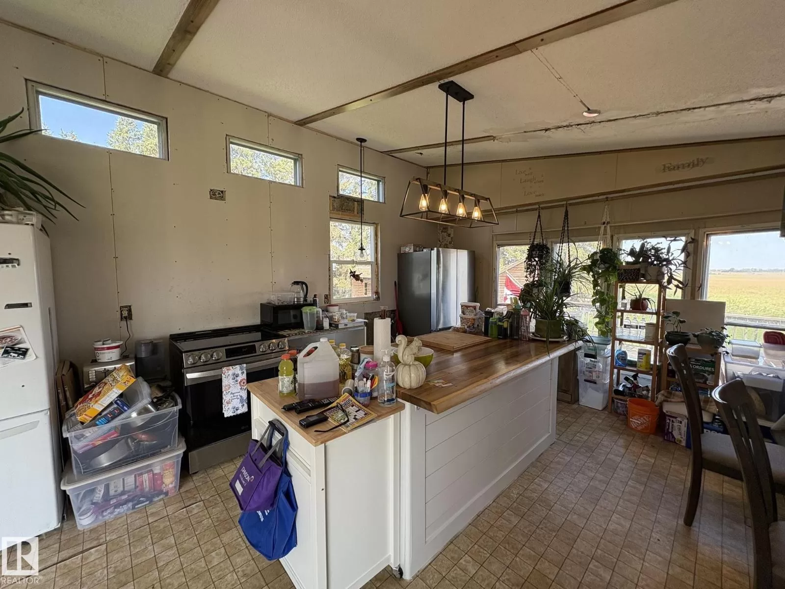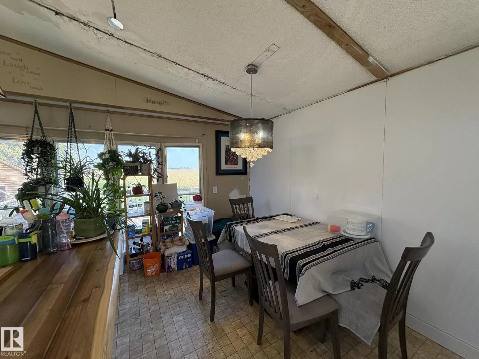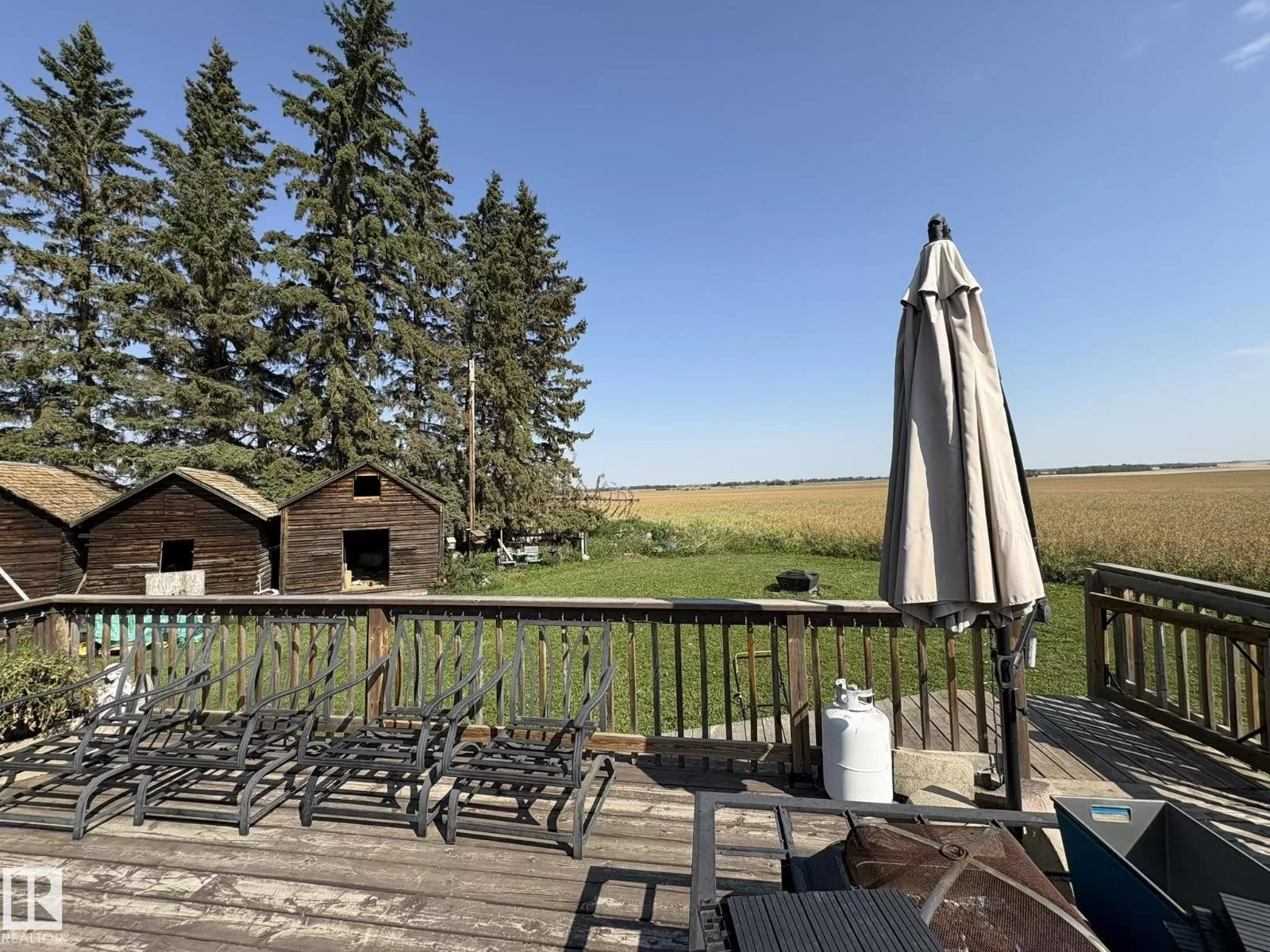Gorgeous and peaceful acreage north of the town of Andrew. This 2.59 acre property offers its occupants a great lifestyle away from city noise. The home consists of a mobile which has been modified and updated with a bright and open living area boasting high cathedral ceiling in the kitchen and living room. There are 3 generous size bedrooms and an upgraded full bath all on this floor. The home has a new steel roof and is also equipped with central air conditioning and features a huge deck overlooking the property and unobstructed vastness of county farmland as well as a second deck at the front of the home. The land also includes an older garage and some outbuildings. The yard is landscaped and inviting and provides tons of opportunities for having fun with family and friends and enjoying country life at its best! (id:27476)