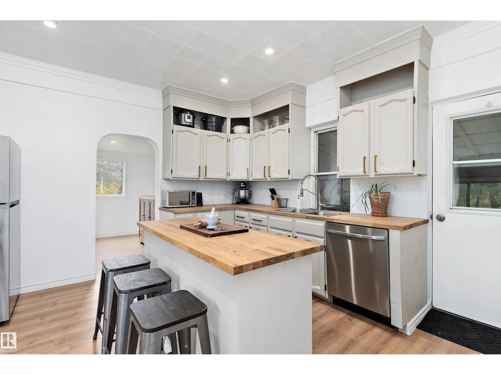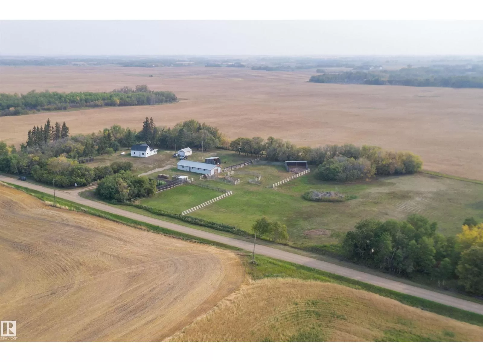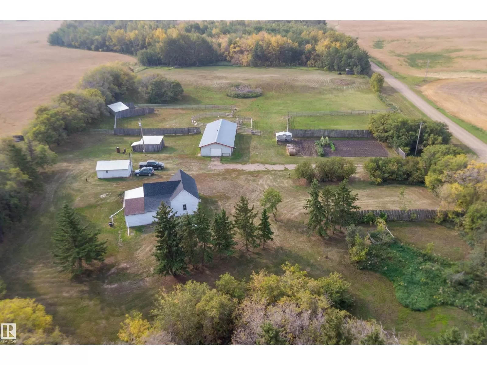 Charming 5.9acre farm offers a peaceful rural lifestyle with modern updates and extensive agricultural features. Built in 1928, the 1096 sqft log-constructed home combines rustic charm with recent upgrades:(2024) shingles/windows/laminate flooring and updated appliances. Attached 230 sqft closed breezeway. Property ideal for livestock enthusiasts, with facilities for horses, sheep, goats or cattle and has perimeter electric fence. Yard surrounded by scenic grain farms and a forested area teeming with wildlife. A seasonal pond and diverse tree varieties enhance the propertyâs appeal. Acreage features: 320 ft well, power to: house/shop/garage/yard post. Single garage plus large insulated shop, fits truck or other machinery, includes 6 animal stalls and tack area. Birthing pen, stud pasture, round pen, sorting pen, automatic HEATED waterer, 48ft x 84ft garden with raspberry bush. Chicken coop, woodshed, and 3 additional outbuildings/shelters. 7 min to Mdre, 20 min to Veg; 40 min to ShPk/FtSk. Don't delay!! (id:27476)