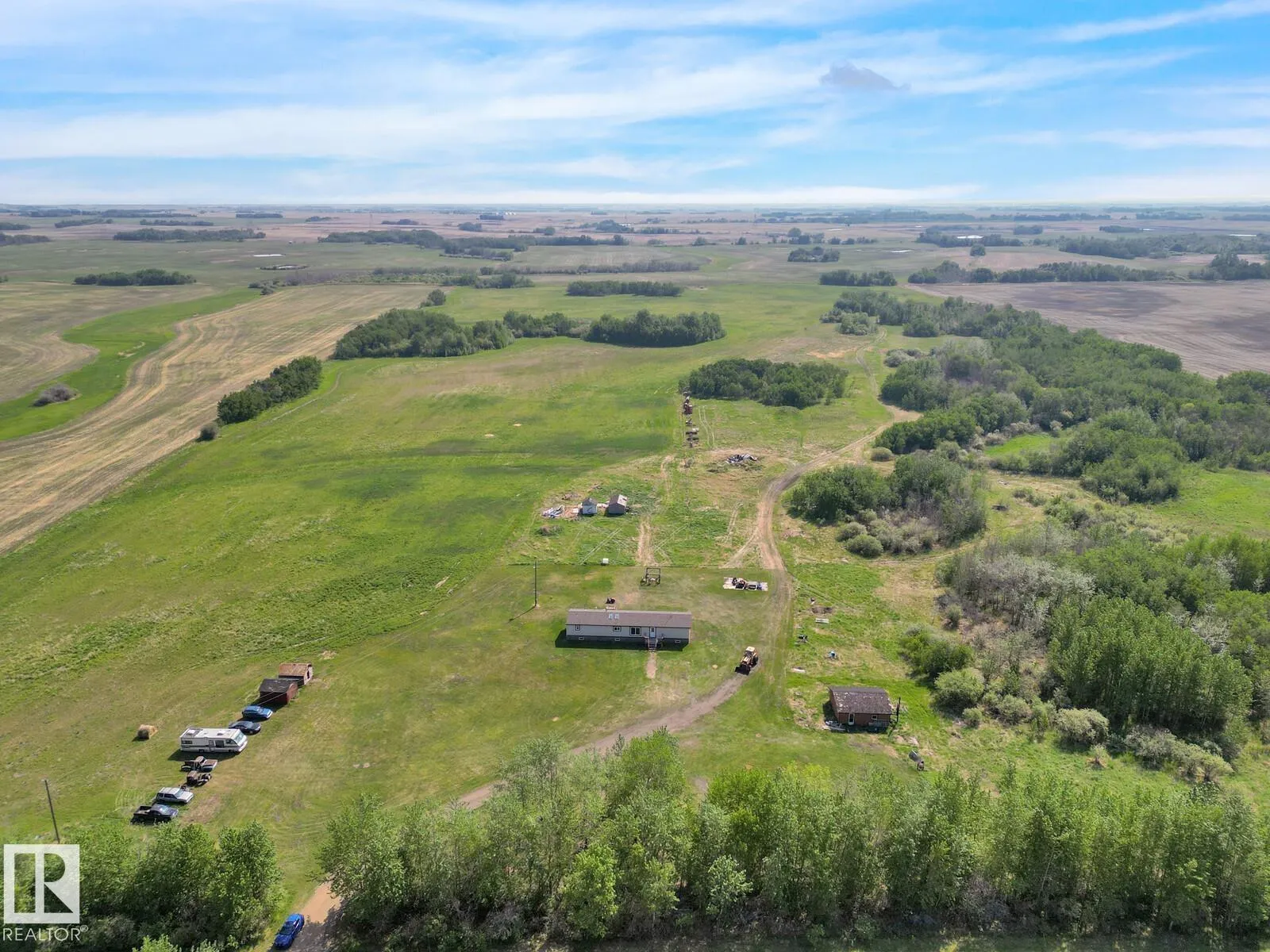 If you are looking for land, some peace and quiet and low maintenance lifestyle, THIS IS IT! This 4 bedroom modular home sits on 80 acres of quality land. With a mix of bush and farmland, this property is a true gem. Only a short drive north of Mundare, really easy to commute with quick access to highways. The modular home was built in 2008 with a fabulous design. With 3 bedrooms and a full bathroom at one end and the master with a large ensuite at the other. The livingroom room and kitchen are the centre of the home. The kitchen is a good size with a corner pantry, island and dining area with doors leading the the deck. Enjoy the morning sunshine as the deck faces east, you can sit with your coffee enjoying the wildlife and solitude of this 80 acres of paradise. Approximately 56 acres are cultivated with the rest in trees and bush. Enjoy your property on your quad, dirt bikes and sleds, such a great as a recreational property. (id:27476)
