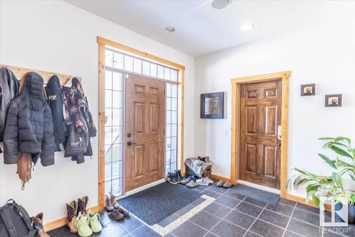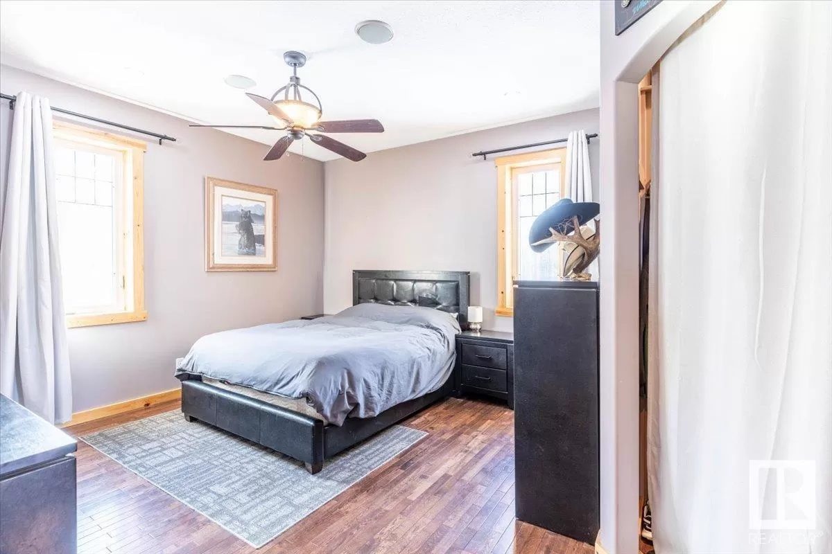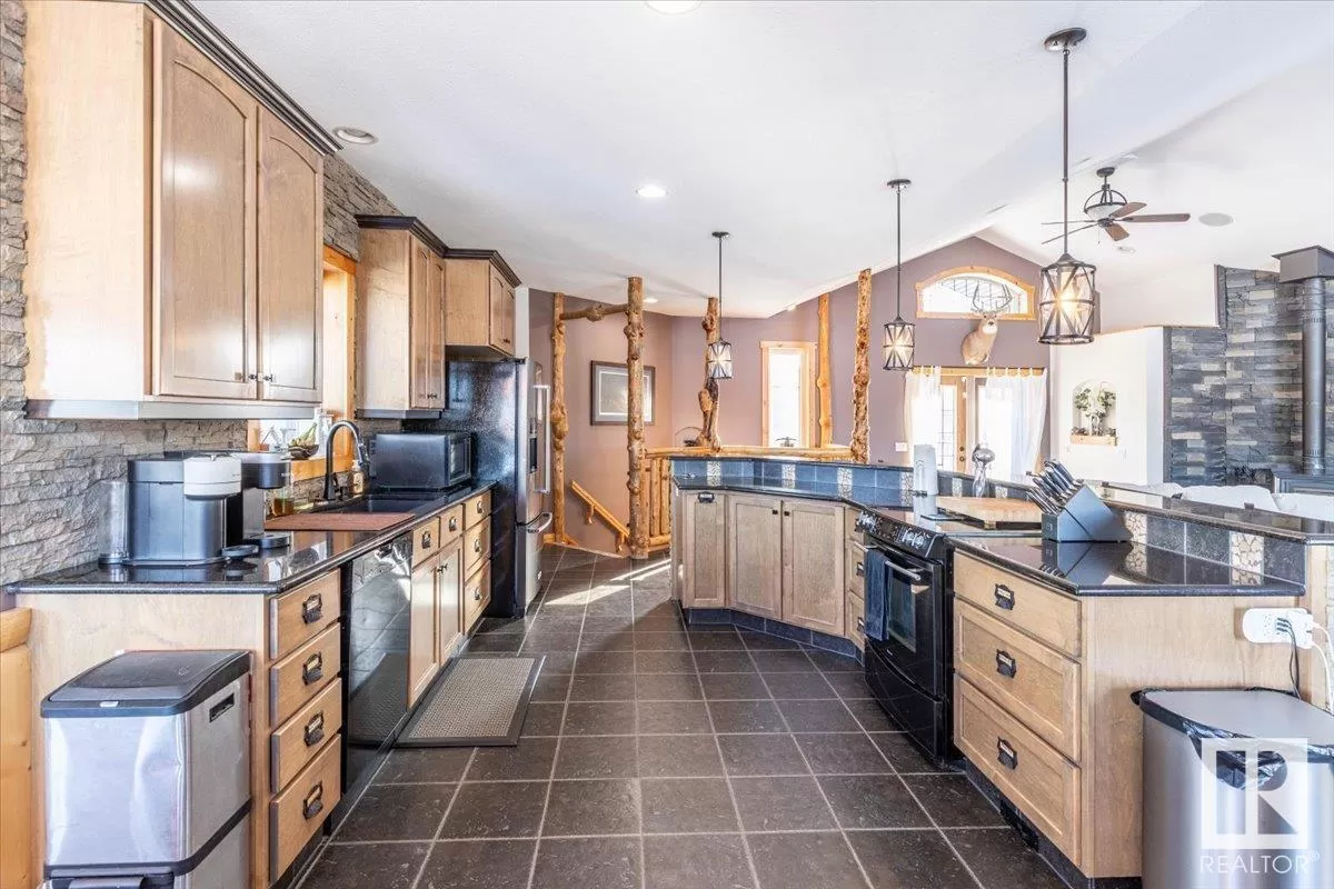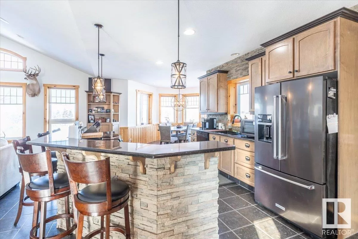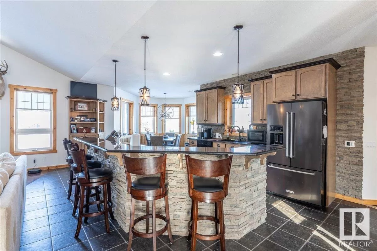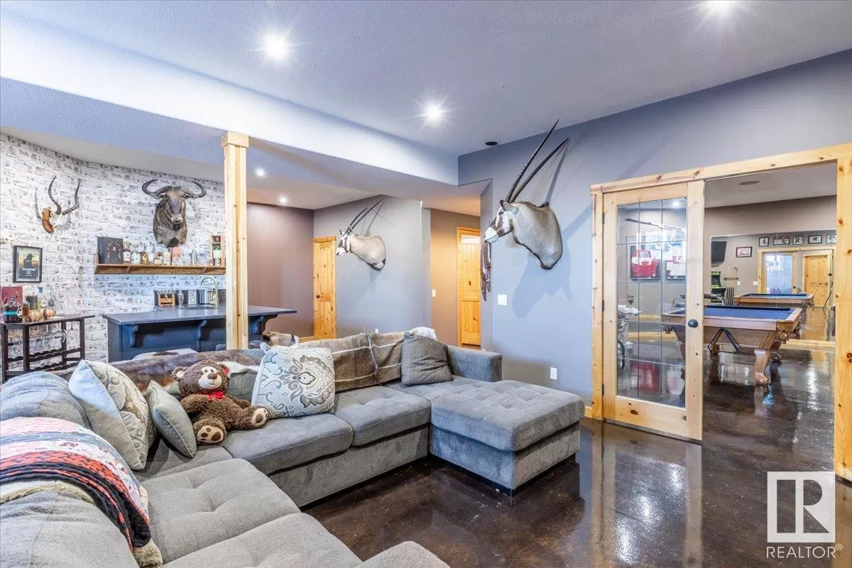 70.36 acres with a Gorgeous custom built 2088sq/ft home. ICF construction from basement to roof. Power gate at the entrance with trees along the driveway keeping the property private. The house has a Double Attached Garage that is metal cladded inside, tall ceilings, cement floor, and in-floor heat. The main floor has an open concept Kitchen, Living Room, and Dining Room with beautiful pine log finishing, vaulted ceiling, and lots of windows for natural light. Two bedrooms are also on the main floor, including the primary with its own 5 piece ensuite bathroom and walk-in closet. A Den/Office, 4 piece bathroom, Pantry, and Laundry room conclude the Main floor. The basement has in-floor heat, 3 bedrooms, a rec room, gym, 3 piece bathroom, storage room, and a family room with a wet bar. Also on the property is a fully finished workshop with 3 overhead doors, in-floor heat, and has solar panels. Fenced and cross fenced with water and shelter for animals. Good farmland currently in hay. (id:27476)