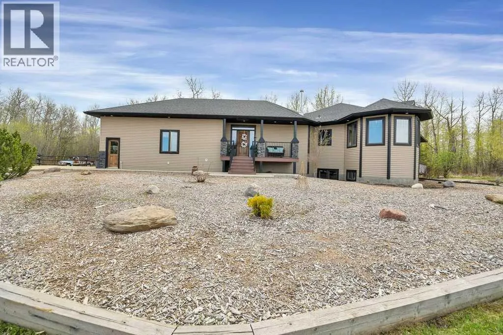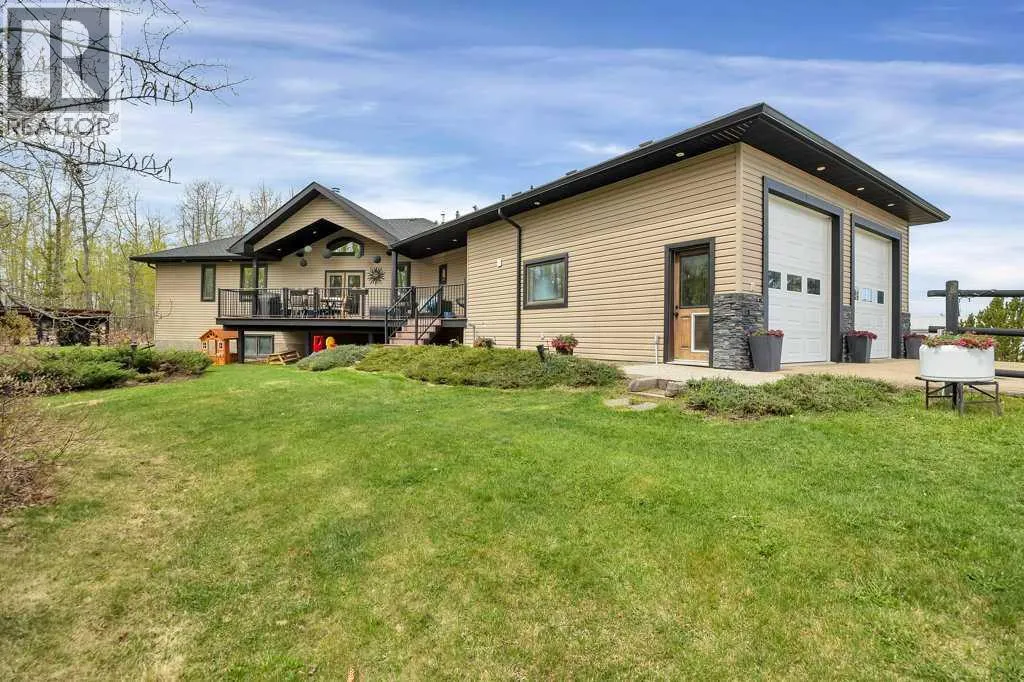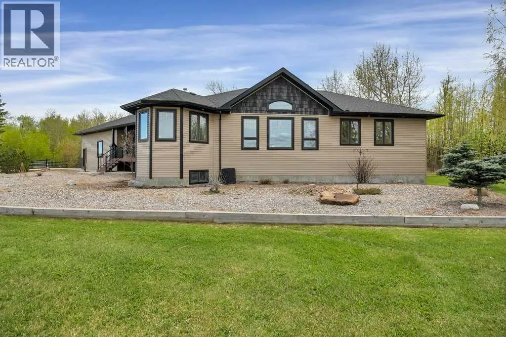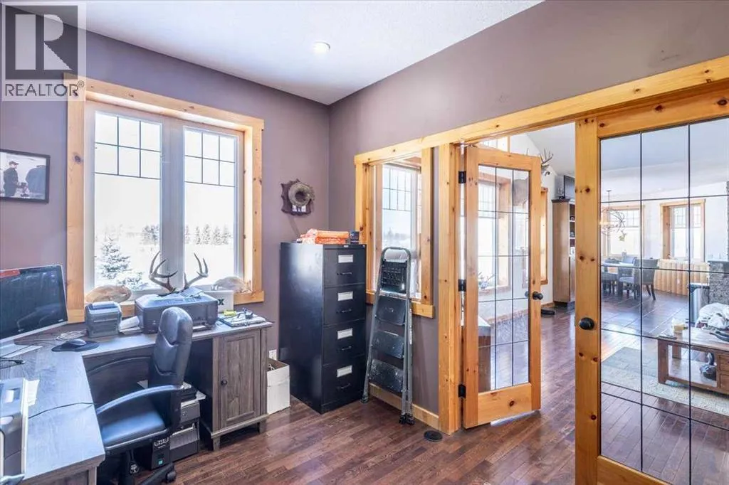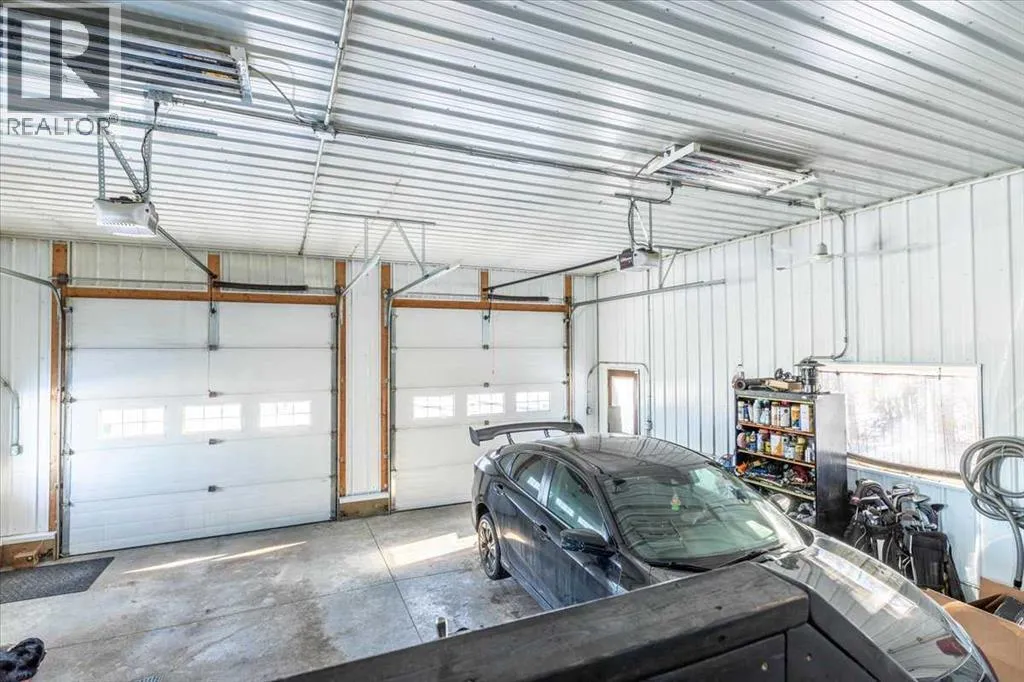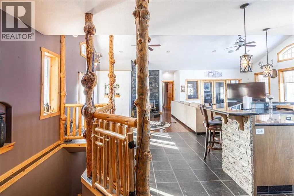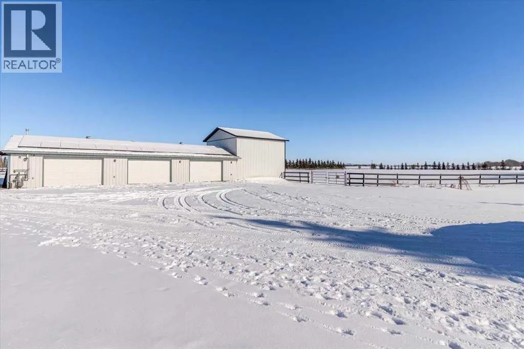 70.36 acres with a Gorgeous custom built 2088sq/ft home. ICF construction from basement to roof. Power gate at the entrance with trees along the driveway keeping the property private. The house has a Double Attached Garage that is metal cladded inside, tall ceilings, cement floor, and in-floor heat. The main floor has an open concept Kitchen, Living Room, and Dining Room with beautiful pine log finishing, vaulted ceiling, and lots of windows for natural light. Two bedrooms are also on the main floor, including the primary with its own 5 piece ensuite bathroom and walk-in closet. A Den/Office, 4 piece bathroom, Pantry, and Laundry room conclude the Main floor. The basement has in-floor heat, 3 bedrooms, a rec room, gym, 3 piece bathroom, storage room, and a family room with a wet bar. Also on the property is a fully finished workshop with 3 overhead doors, in-floor heat, and has solar panels. Fenced and cross fenced with water and shelter for animals. Good farmland currently in hay. (id:27476)