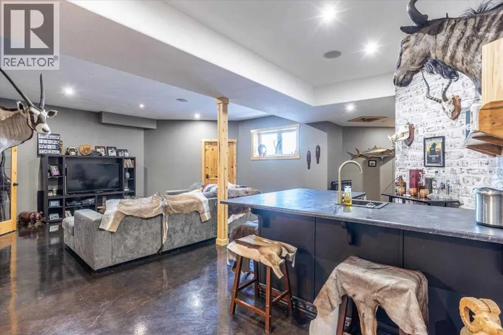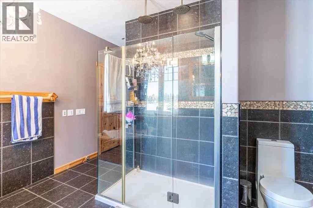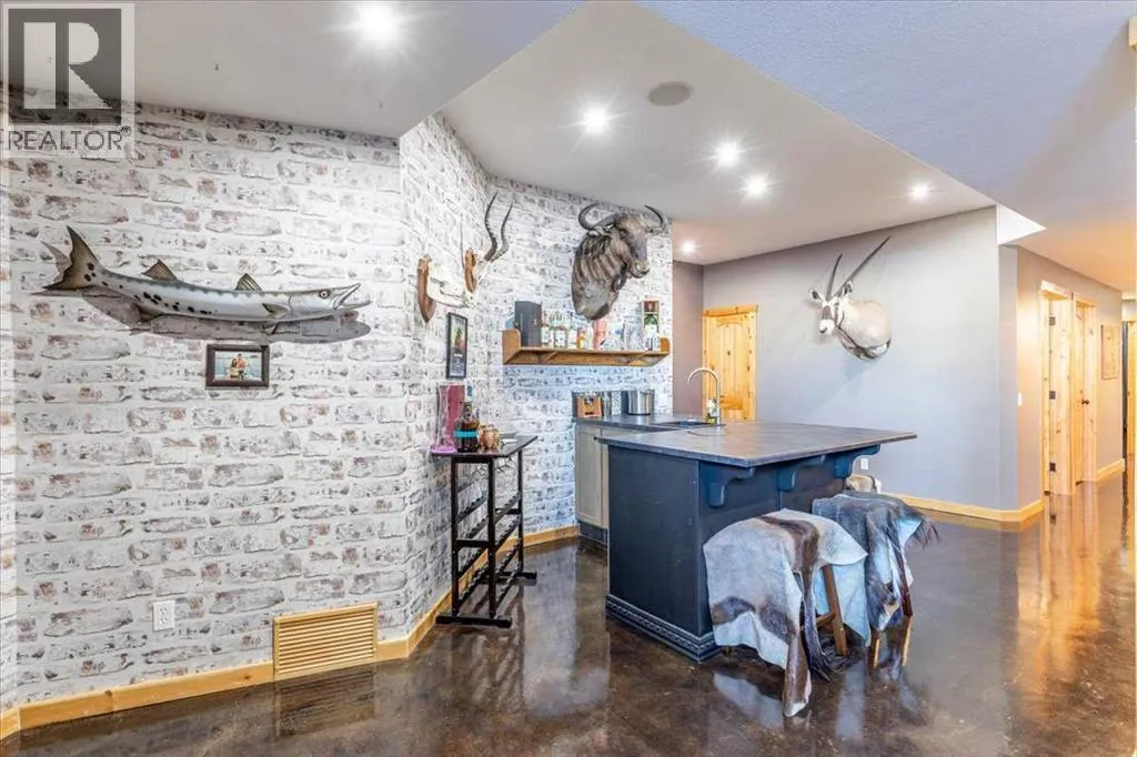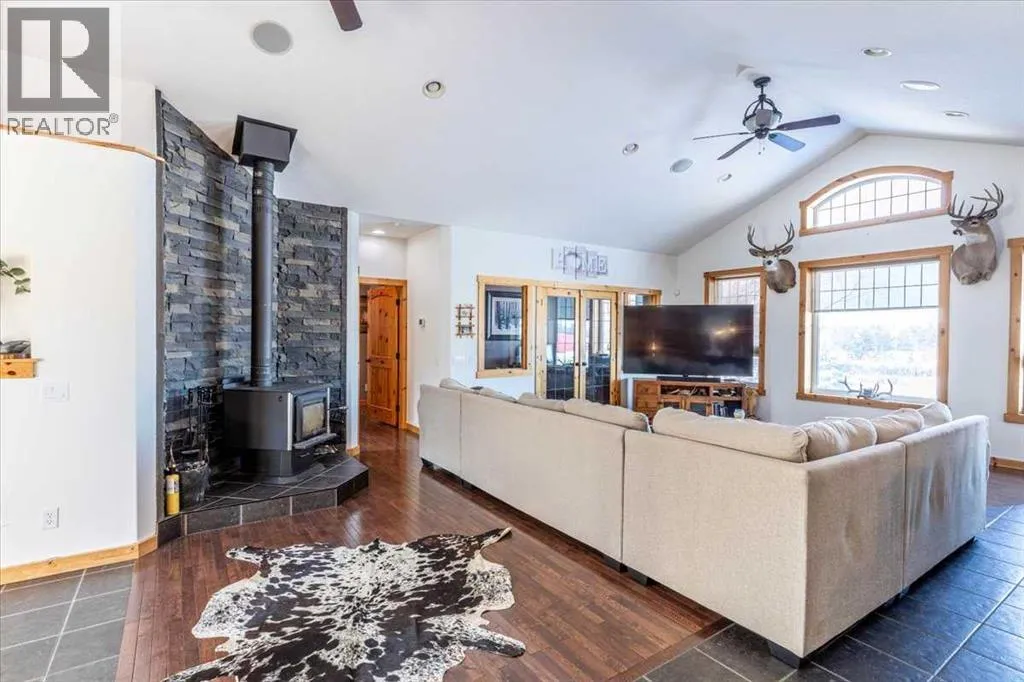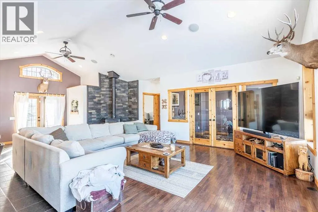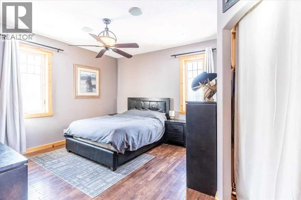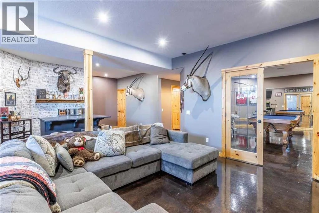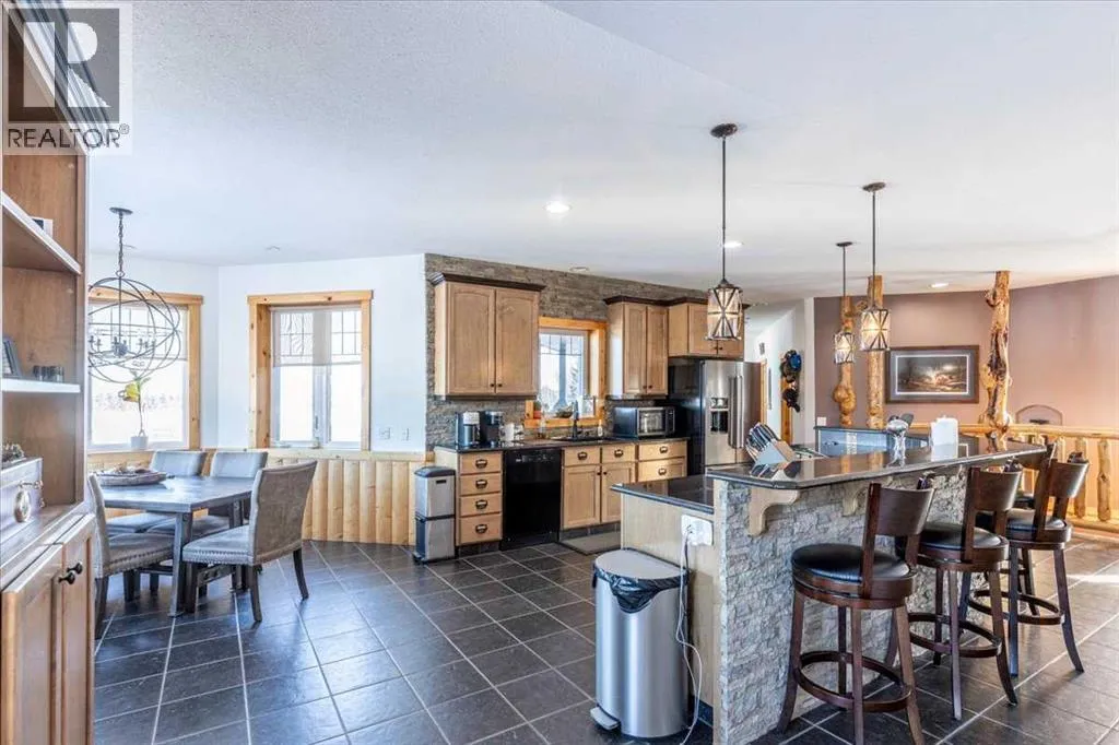 70.36 acres with a Gorgeous custom built 2088sq/ft home. ICF construction from basement to roof. Power gate at the entrance with trees along the driveway keeping the property private. The house has a Double Attached Garage that is metal cladded inside, tall ceilings, cement floor, and in-floor heat. The main floor has an open concept Kitchen, Living Room, and Dining Room with beautiful pine log finishing, vaulted ceiling, and lots of windows for natural light. Two bedrooms are also on the main floor, including the primary with its own 5 piece ensuite bathroom and walk-in closet. A Den/Office, 4 piece bathroom, Pantry, and Laundry room conclude the Main floor. The basement has in-floor heat, 3 bedrooms, a rec room, gym, 3 piece bathroom, storage room, and a family room with a wet bar. Also on the property is a fully finished workshop with 3 overhead doors, in-floor heat, and has solar panels. Fenced and cross fenced with water and shelter for animals. Good farmland currently in hay. (id:27476)