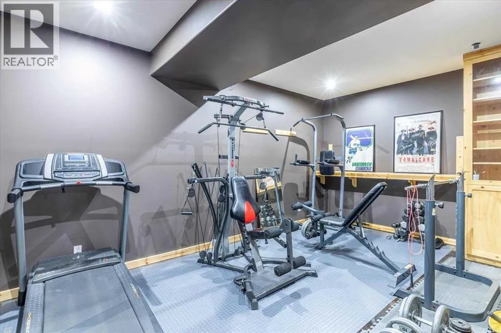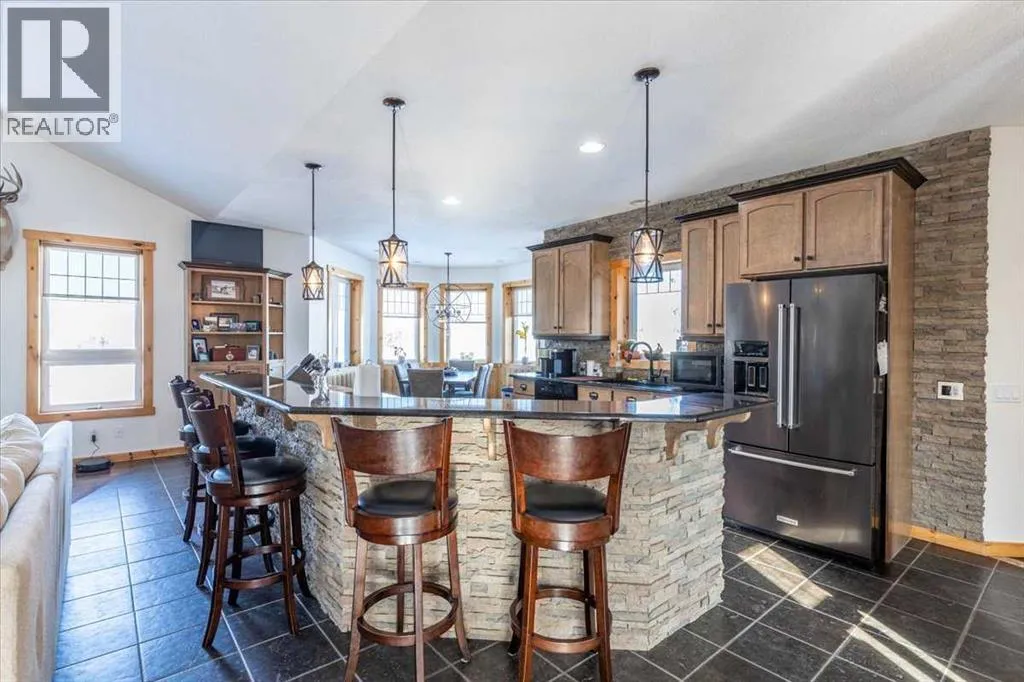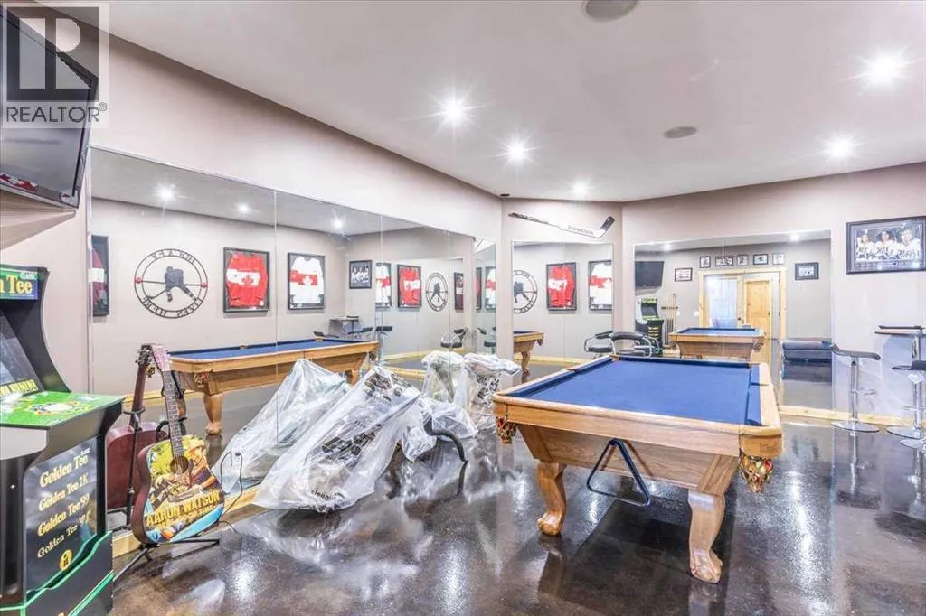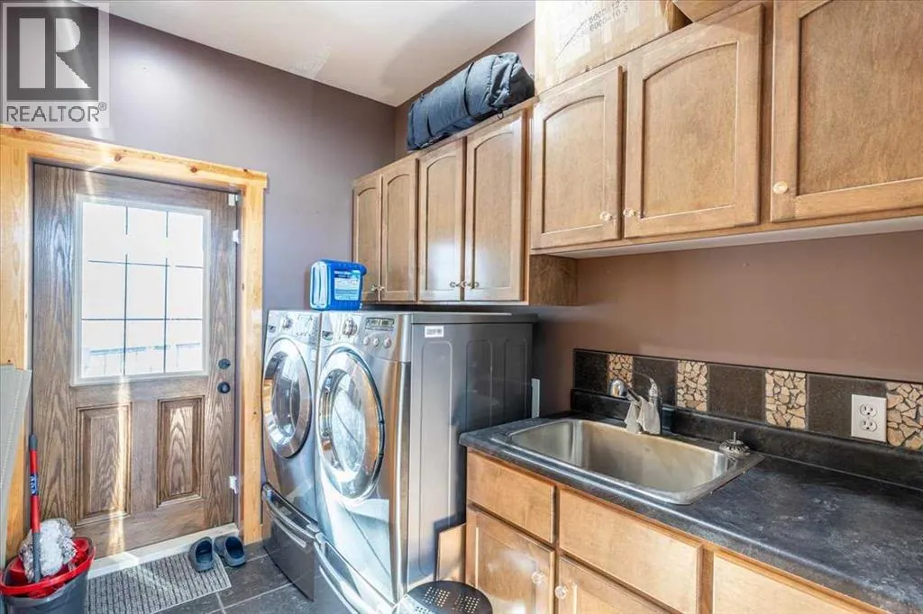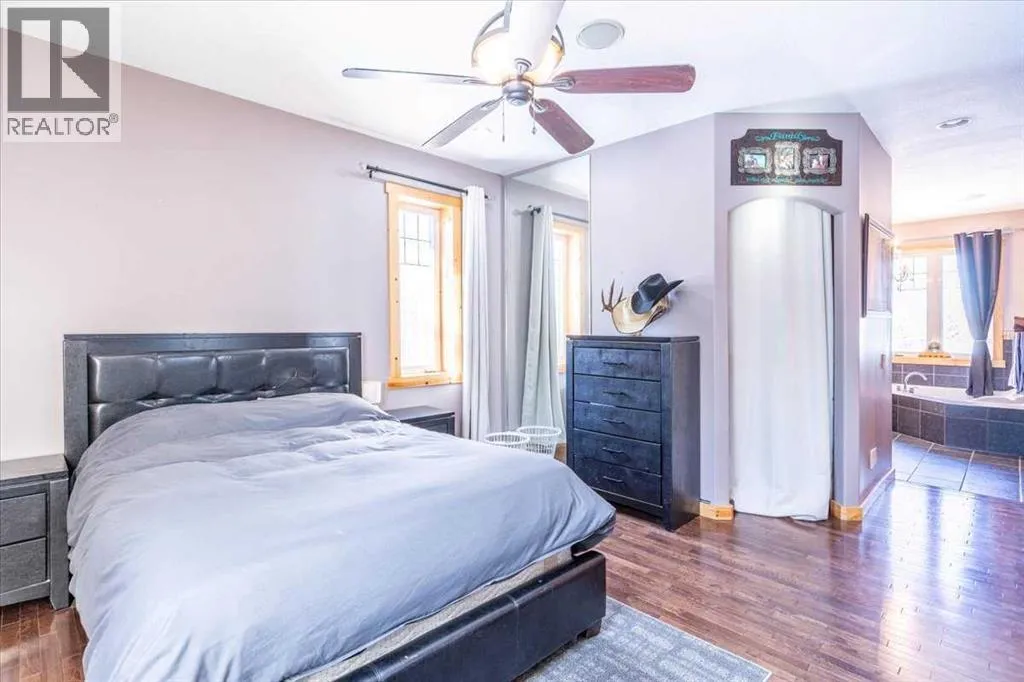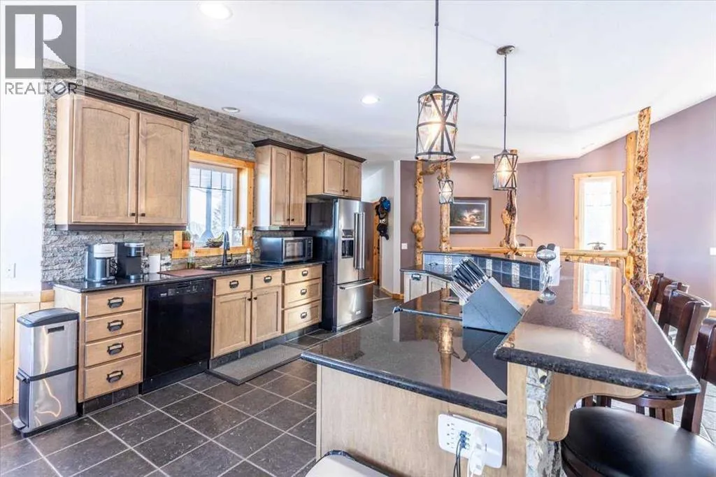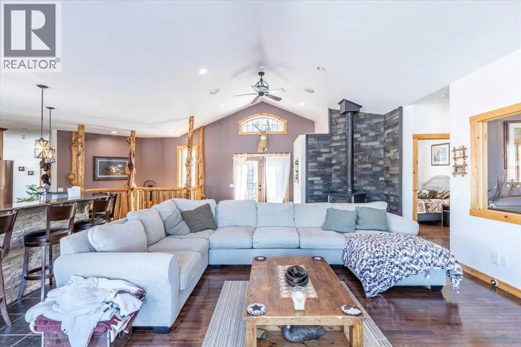 70.36 acres with a Gorgeous custom built 2088sq/ft home. ICF construction from basement to roof. Power gate at the entrance with trees along the driveway keeping the property private. The house has a Double Attached Garage that is metal cladded inside, tall ceilings, cement floor, and in-floor heat. The main floor has an open concept Kitchen, Living Room, and Dining Room with beautiful pine log finishing, vaulted ceiling, and lots of windows for natural light. Two bedrooms are also on the main floor, including the primary with its own 5 piece ensuite bathroom and walk-in closet. A Den/Office, 4 piece bathroom, Pantry, and Laundry room conclude the Main floor. The basement has in-floor heat, 3 bedrooms, a rec room, gym, 3 piece bathroom, storage room, and a family room with a wet bar. Also on the property is a fully finished workshop with 3 overhead doors, in-floor heat, and has solar panels. Fenced and cross fenced with water and shelter for animals. Good farmland currently in hay. (id:27476)