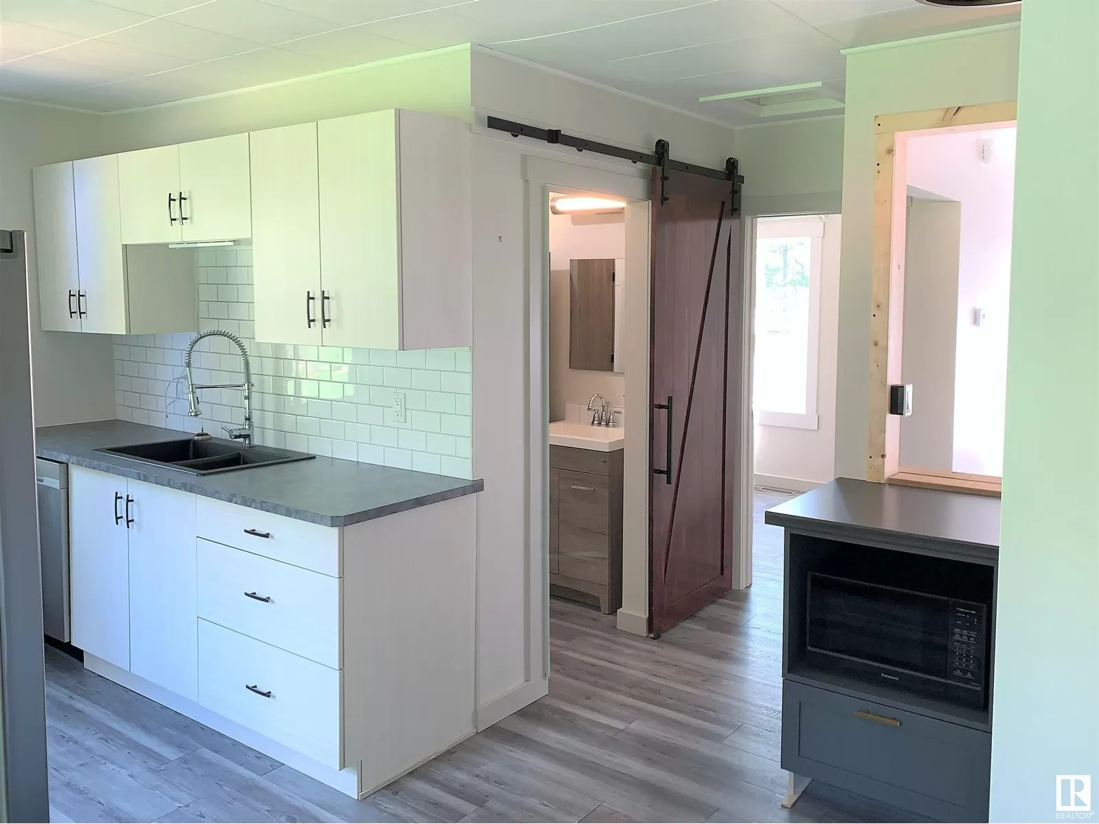 Year round lake home for those who like the outdoors. Just one block from the lake and play ground. Large south facing deck letâs you view quiet nature facing a nicely treed area. Freshly renovated interior is a perfect blend of modern yet rustic. LVN flooring, unique light fixtures, new kitchen cabinets, subway tiles, silgranit sink, barn door and very nicely detailed bathroom. Huge windows that let in lots of sunlight with beautiful views. There is a master bedroom plus a second bedroom perfect for bunk beds. There is also a washer & dryer. The backyard is perfect for privacy, a firepit, outdoor games with a green space behind. Newer windows, shingles (2015), new well and jet pump, and a new septic as well as a newer furnace. (id:27476)