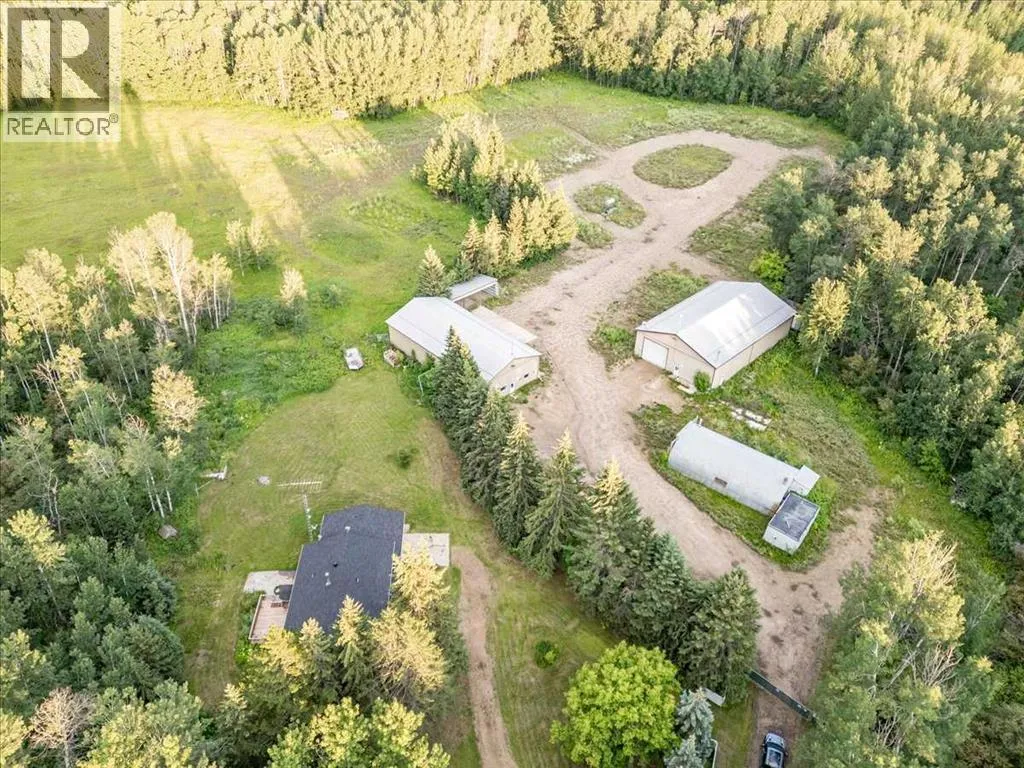 Great opportunity to live and have your business on the same Property! Beautiful private setting with trees, a creek and all located on pavement. This 35.12 acres hosts a 1465.73 sq/ft house with a 20x28 attached garage with a creek behind it and sheltered from the industrial yard. The graveled industrial yard is set up to move right in. On it is a 50x29 heated and insulated quonset with power and a cement floor. A 40x80 Fully finished Shop metal cladded inside and out with 2 overhead doors (12x14 and 16x14), heated, insulated, power, mezzanine, 3pc bathroom, with offices and lunch room in the front. A 50x80 drive through shop (18x14 doors) with power, heat, fully insulated with a mezzanine, spray booth, and office with two more overhead doors off the side. This beautiful property has extra room to expand your business or keep it the way it is. (id:27476)
