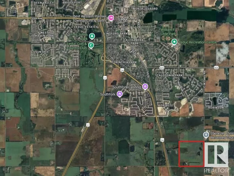 This property offers approximately 150 acres located just south of the City of Leduc, within the proposed annexation zone. It is located approximately 1km from the current residential development. The land is divided into a 148-acre parcel of highly productive farmland, currently rented to local farmers on a crop-share basis, and a 2-acre subdivided lot with a communications tower that is currently rented. The property is situated near Leduc, the Edmonton International Airport, and major highways, providing efficient access to nearby urban centres and transportation routes. This is an established agricultural property with existing rental arrangements and infrastructure. (id:27476)