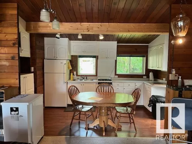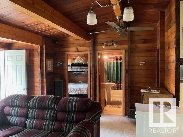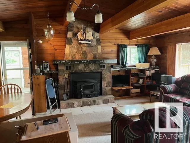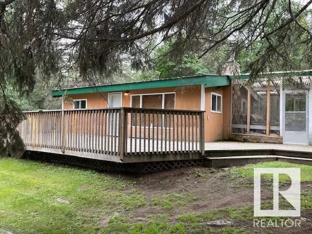 Awesome Pan-Abode home that the previous owner insulated & sided for year round living. Beautiful pan-abode interior with warm fireplace for extreme comfort. Attached 198 Sq.ft. screened in porch, with attached 294 Sq.ft. bunk house for the guests or the kids. Very large front deck to enjoy the views. Two single garages 12x24 and 16x24. This beautiful landscaped/treed yard is the perfect setting for unwinding. Lots of room for holiday trailer parking for guests as the home is on a double lot, Just steps to the shared water front area for water sports, piers or a boat. ALSO the lot right in front is also for sale for only $149,000. (id:27476)