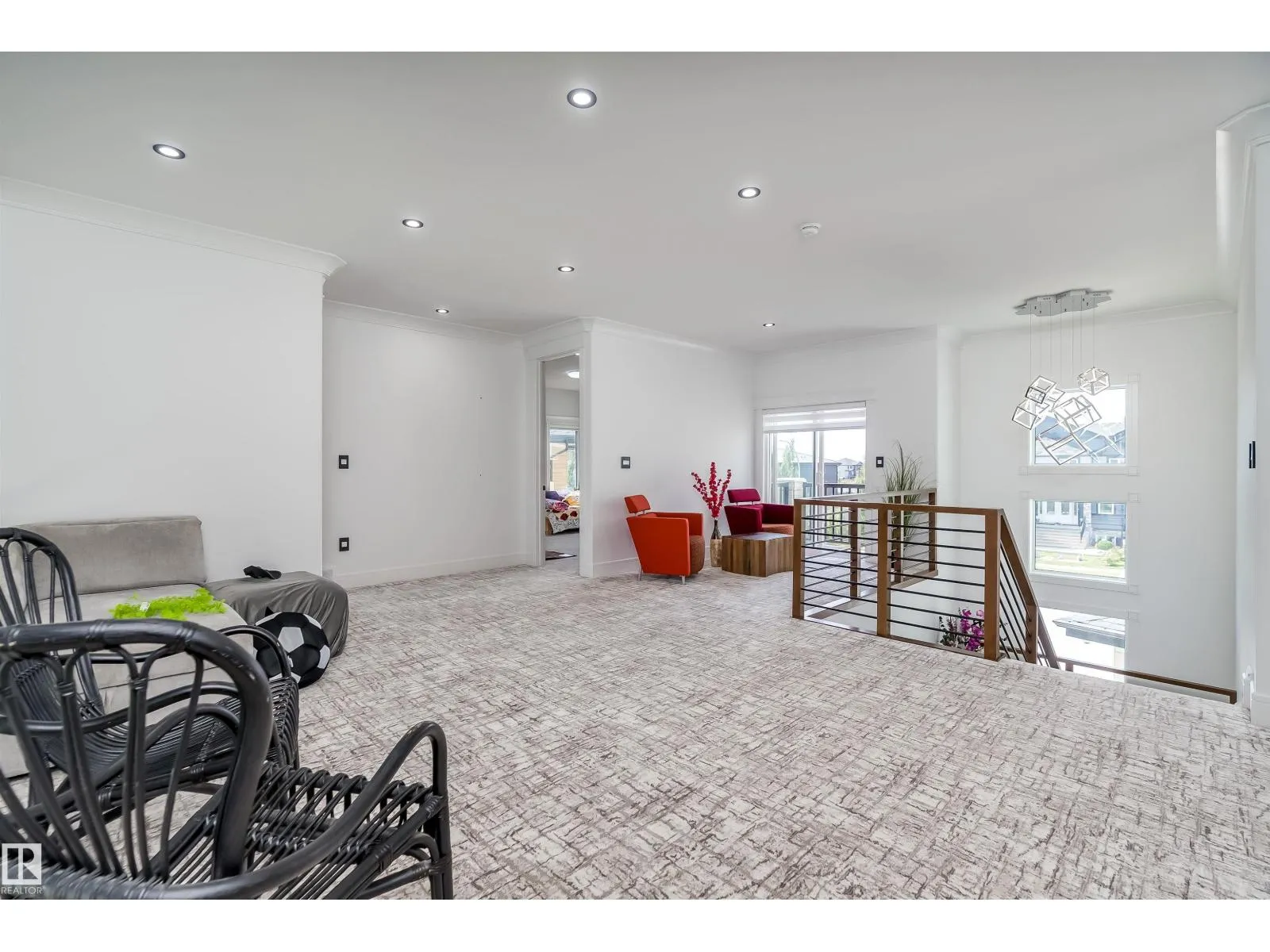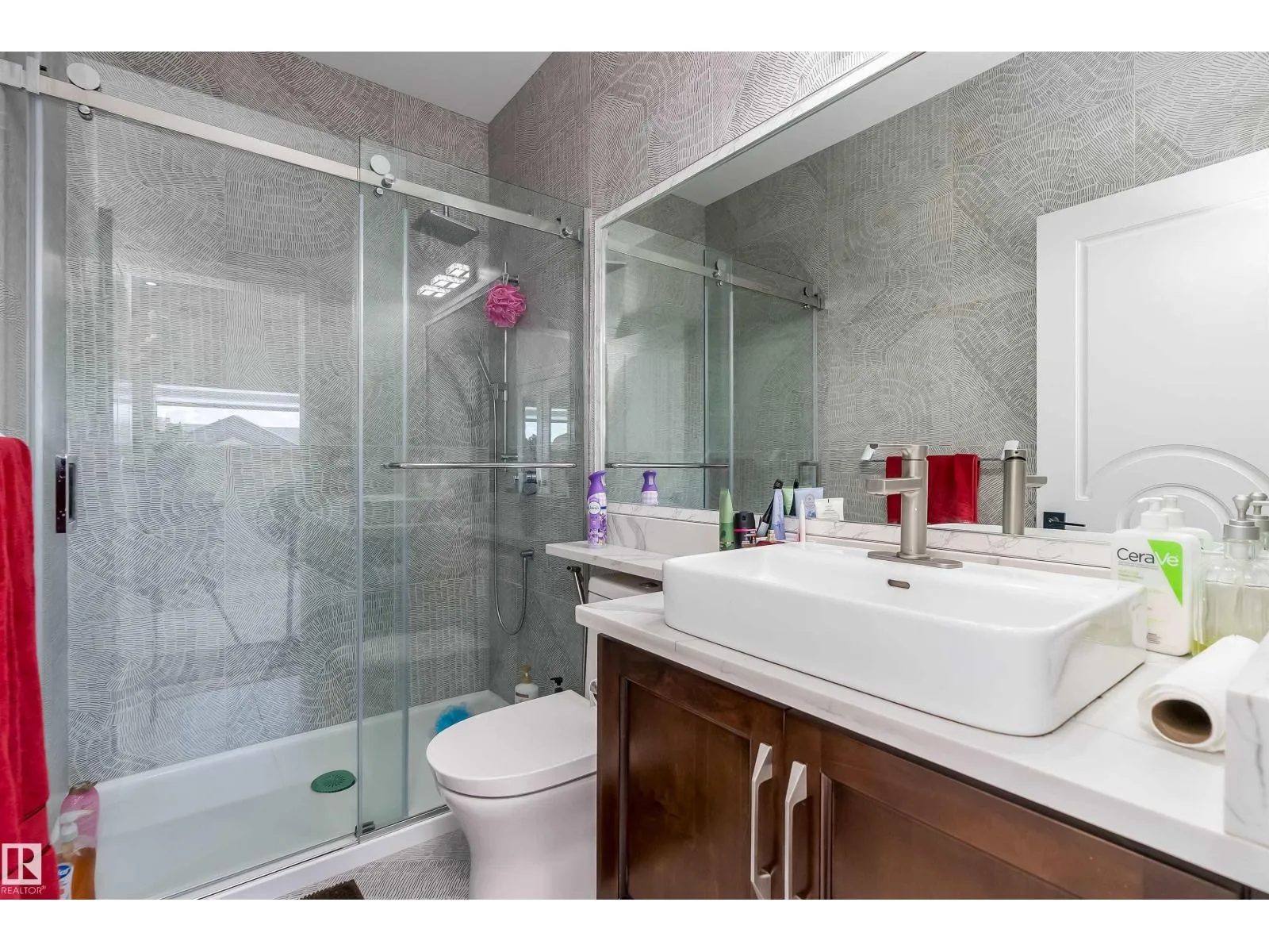 Welcome to Diamond Estates in Leduc County! This EXQUISITE MANSION with its architectural beauty & LARGE windows , on 0.33-acre lot & offers impressive apx 5667 sqft of total living space. The main floor features a living , family room, dining, & kitchen area, with a spice kitchen, main bedroom, & bathroom for elderly family and a half bathroom . There are large windows that create a spacious atmosphere, complemented by luxurious lighting & chandeliers . The custom-designed kitchen showcases real walnut wood cabinetry & high-end finishes. It includes updated electrical & plumbing fixtures & modern touches. The LEGAL GARAGE SUITE w/PRIVATE ENTRANCE, includes living room, kitchen, 2 bedrooms, a half bath, and a Jack & Jill full bathroom . The BASEMENT offers a bar, a full washroom, 2 bedrooms, and another bathroom with a living area and kitchen. Each section of the home has its own laundry. The massive backyard adds to the home's features. There is TRIPLE ATTACHED INSULATED garage. (id:27476)