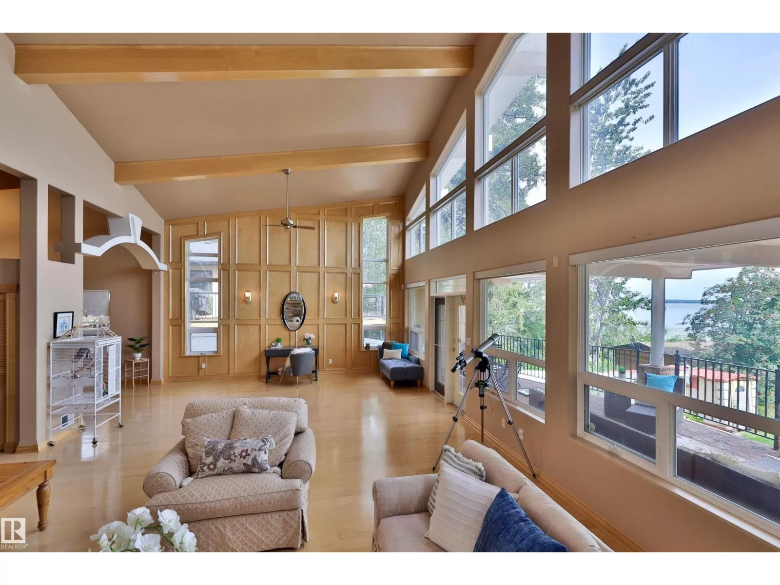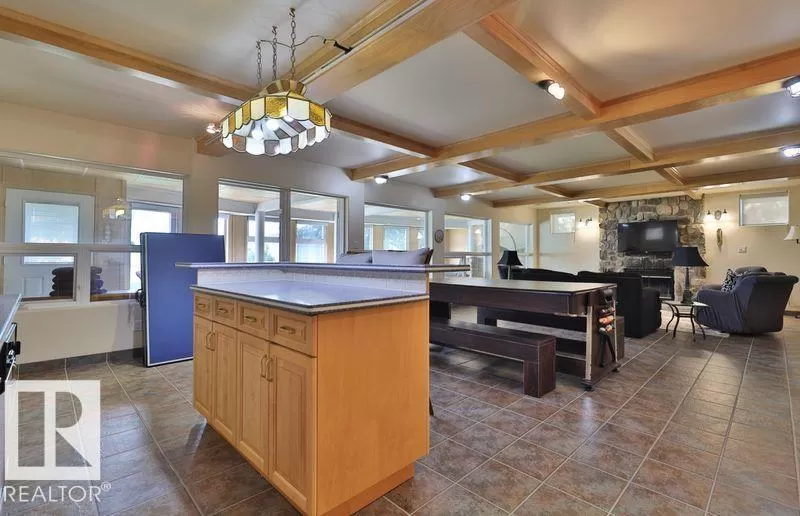 Absolutely stunning lakefront home on Mitchell Beach at Pigeon Lake is located on a 66x180 lot that has a boat house, storage sheds, oversized & heated double detached garage and covered decks both front and back. Inside this beautiful home there are 4 bedrooms, 3 bathrooms, open kitchen and dining room, massive living room with a wood burning fireplace and a spacious master bedroom with a full ensuite. Downstairs, there are 3 more bedrooms, a 3 pce bathroom, huge family room with a 2nd wood burning fireplace, a games room, wet bar and access to the sunroom. Clay tile roof, stucco exterior, hardwood and ceramic flooring through out makes this fine property very low maintenance. Exceptional construction and quality finishing is evident from the moment you enter this amazing property! (id:27476)