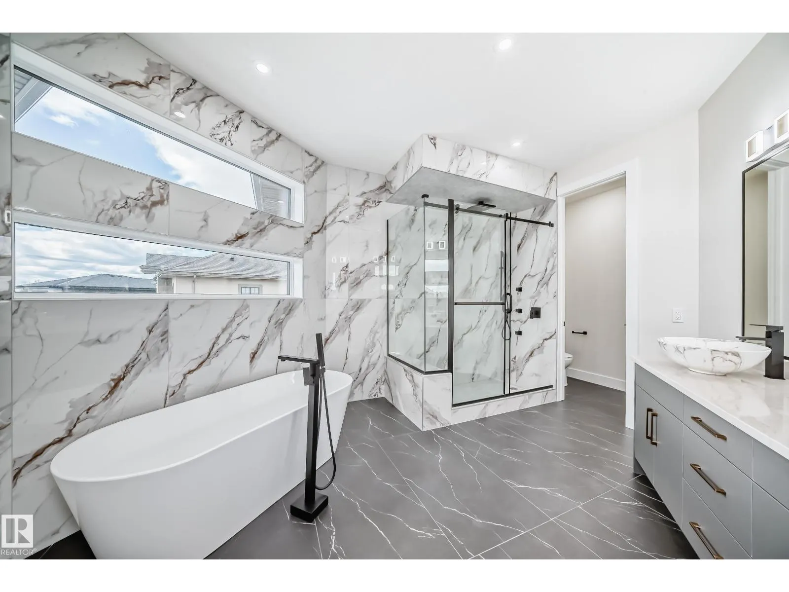 Outstanding Custom-Built Luxury Home in Royal Oaks Exceptional over 4,000 sq. ft. masterpiece, w/ 5 bedrooms and 6 full bathrooms, where every bedroom featuring its own ensuite. The main floor showcases soaring 18-ft ceilings in the living room, a chef-inspired kitchen with 10-ft ceilings, painted wood cabinetry, premium Taj Mahal quartzite countertops, a striking feature wall, and a spice kitchen with gas stove. A main floor den (or bedroom with closet) plus an additional bedroom with ensuite is ideal for family living or guests. Step outside to enjoy the covered balcony. Upstairs, find four spacious bedrooms, each with a private ensuite. The impressive primary suite boasts a stunning feature wall, private balcony, luxurious 5-piece spa ensuite, and much more.. The walk-out basement is designed with flexibility in mind, allowing for two separate suitesâperfect for multi-generational living or future rental income. Oversized triple garage. This than a homeâitâs a lifestyle of luxury, comfort & elegance. (id:27476)