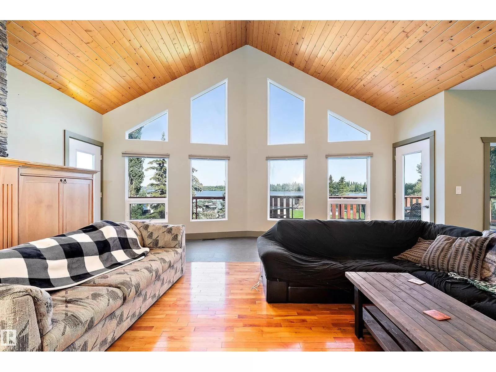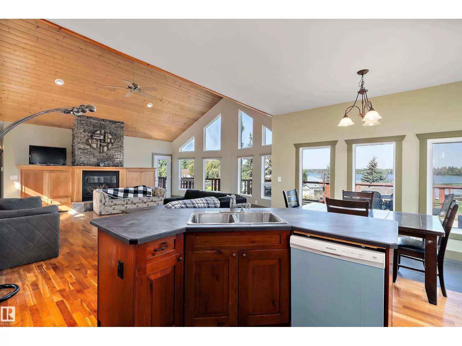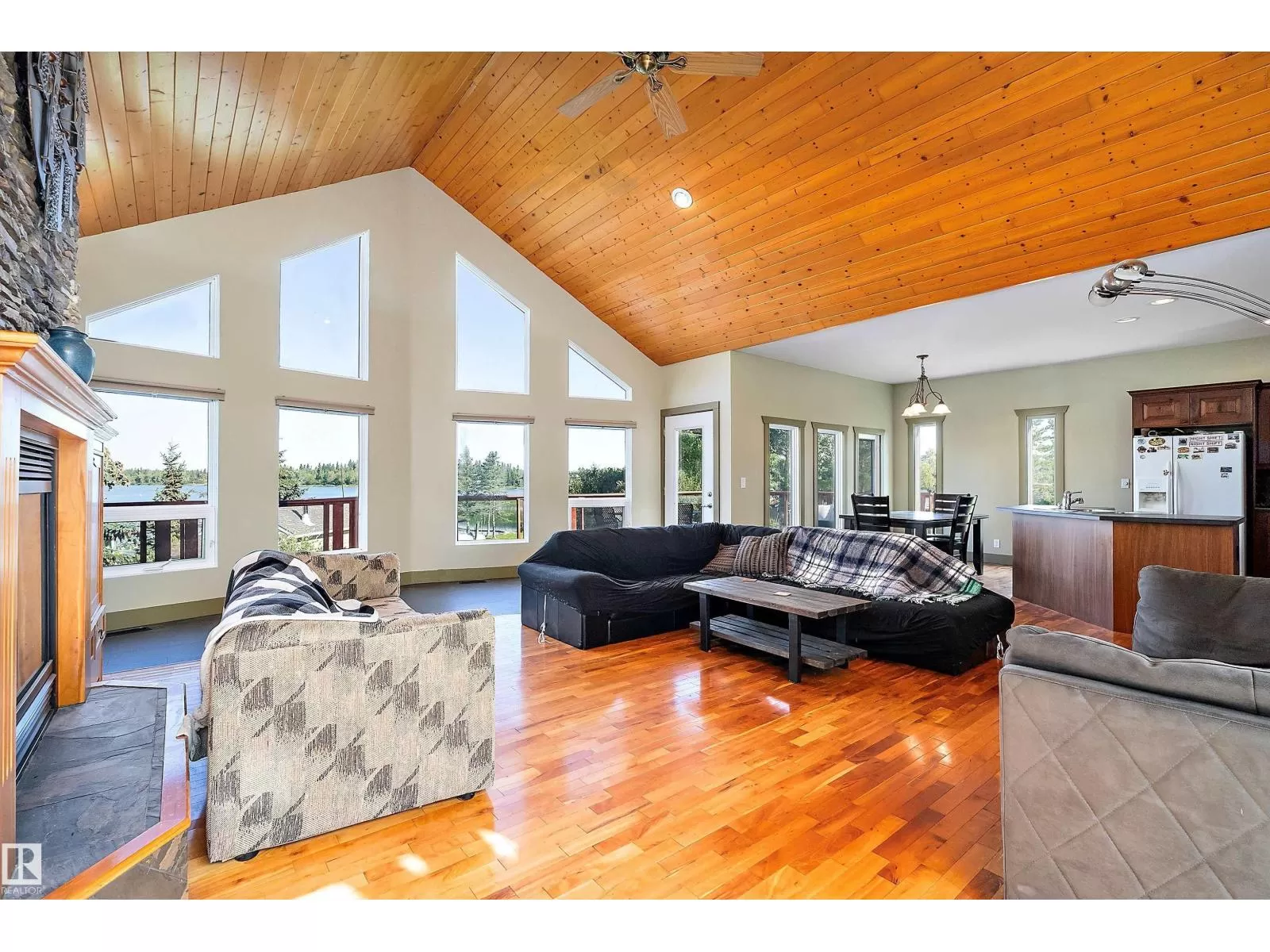WIZARD LAKE WATER FRONT!! Amazing WEST FACING VIEWS looking right down the Lake! This is a Fantastic 2 Storey with a WALK OUT BASEMENT and a DOUBLE ATTACHED GARAGE! Upstairs your met with Hardwood Floors a over sized Stone Gas Fire Place, a WIDE OPEN floor plan consisting of your living room, Spacious Kitchen with a dining area, down the hall is a half bath, Laundry Room and your very Large Master Bedroom with a great sized Walk in Closet and 4 pc Ensuite with a 2 person soaker tub with views and shares a double sided fire place with the sleeping area. Completing your upstairs is your very very large DECK over looking the Lake. Downstairs you have another living room, 3pc bathroom, 2 more bedrooms and access to your garage. All this 35 mins away from Edmonton. Lake Life at its Finest. (id:27476)