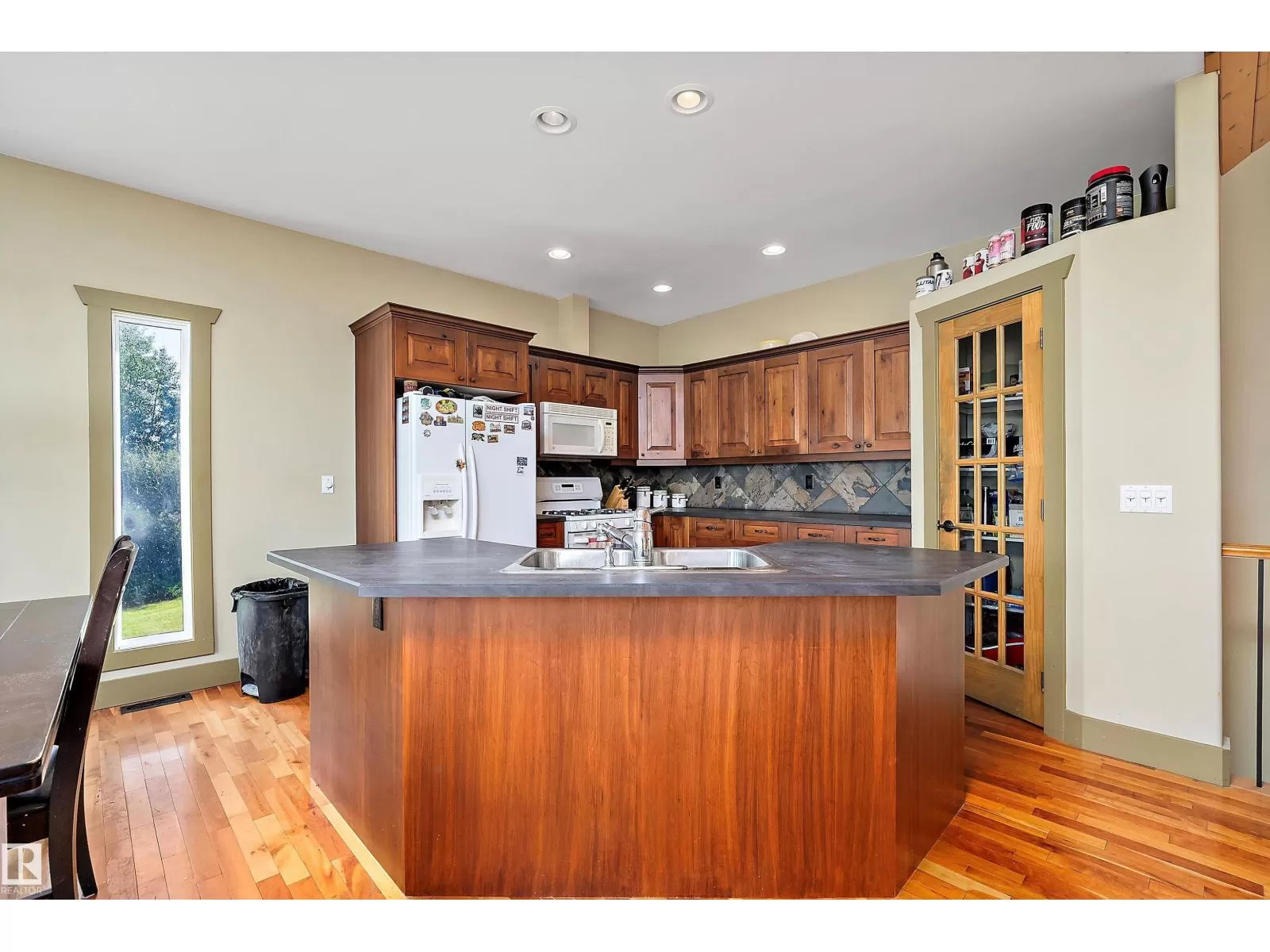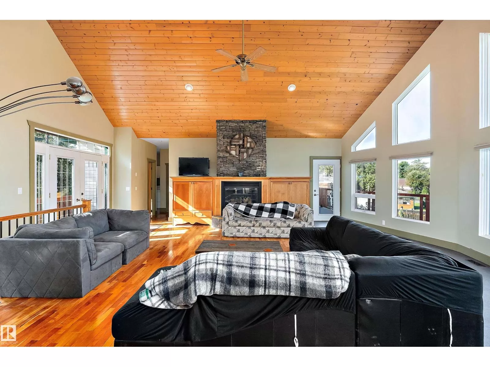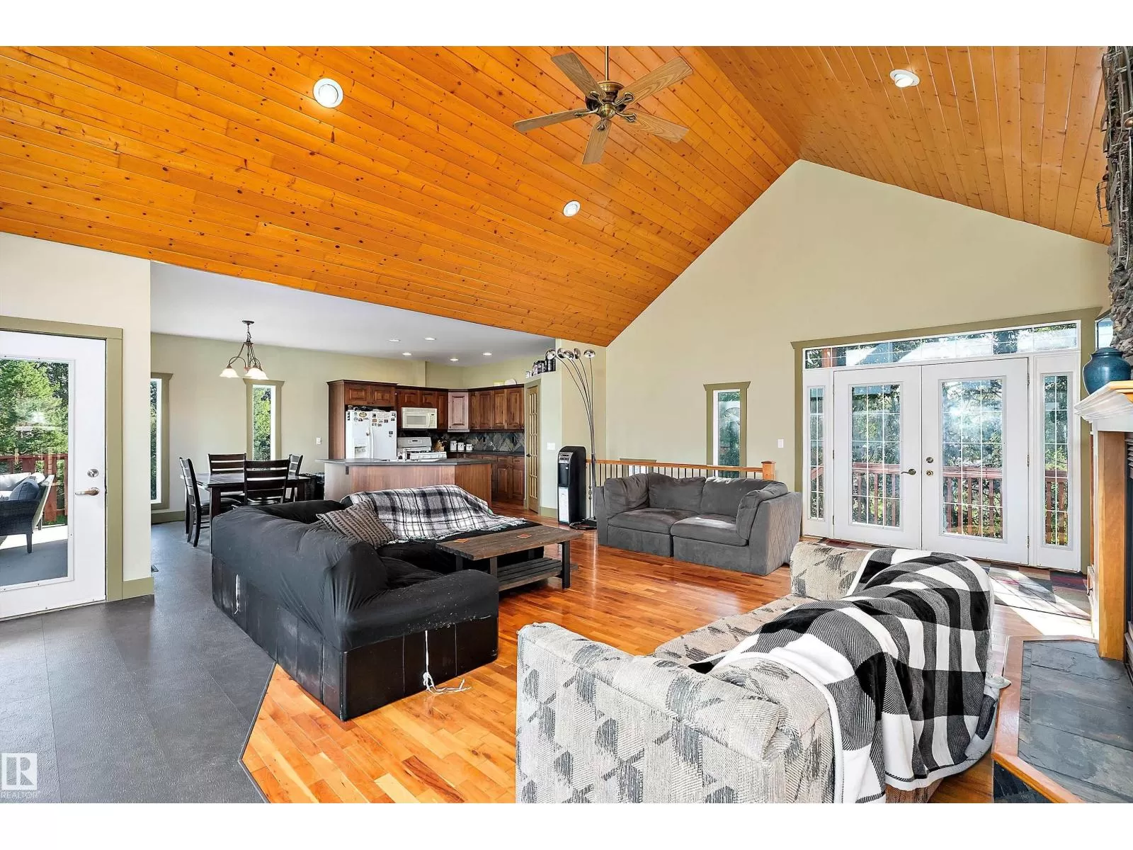 WIZARD LAKE WATER FRONT!! Amazing WEST FACING VIEWS looking right down the Lake! This is a Fantastic 2 Storey with a WALK OUT BASEMENT and a DOUBLE ATTACHED GARAGE! Upstairs your met with Hardwood Floors a over sized Stone Gas Fire Place, a WIDE OPEN floor plan consisting of your living room, Spacious Kitchen with a dining area, down the hall is a half bath, Laundry Room and your very Large Master Bedroom with a great sized Walk in Closet and 4 pc Ensuite with a 2 person soaker tub with views and shares a double sided fire place with the sleeping area. Completing your upstairs is your very very large DECK over looking the Lake. Downstairs you have another living room, 3pc bathroom, 2 more bedrooms and access to your garage. All this 35 mins away from Edmonton. Lake Life at its Finest. (id:27476)