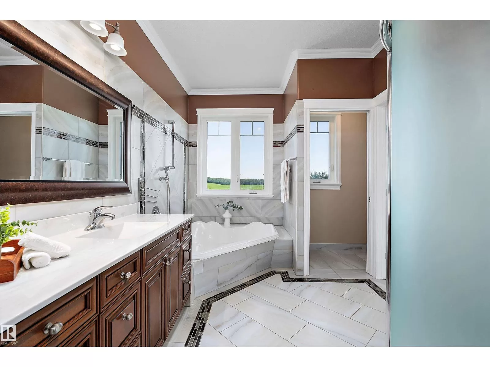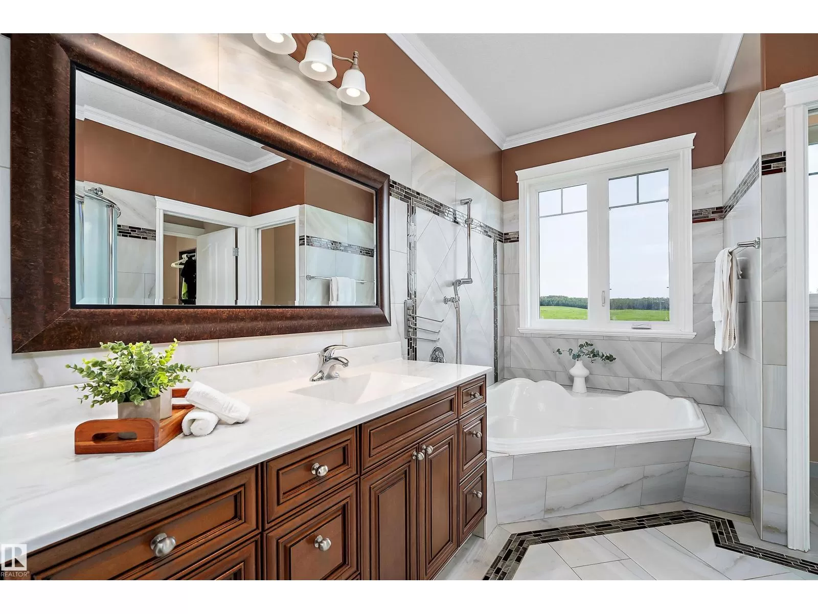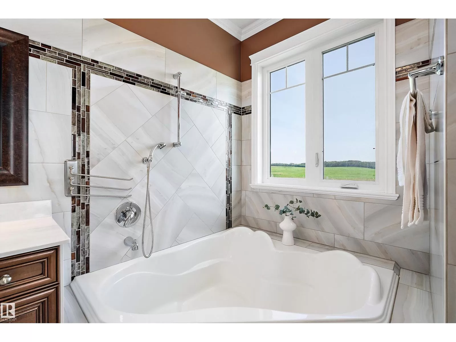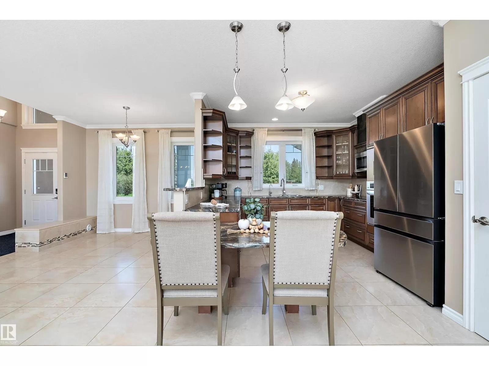 Situated in a quiet cul de sac, over 3.5 acres, this spacious bungalow offers over 2,400 sqft on the main level w/a partly finished basement. Inside, youâll find vaulted ceilings & 4 generously sized bdrms on the main floorâeach with its own walk-in closet. The primary suite includes access to the back deck & a spa-like ensuite. The large kitchen offers ample cupboard & counter space, flowing into a bright eating nook & a huge living room. Convenient main floor laundry w/sink & 2 additional full baths complete this level, along with access to the oversized HEATED triple garage. The partly finished basement has 2 additional bdrms & a large bath featuring a walk-in shower, with plenty of room left to design a rec room, office, or whatever suits your lifestyle. This home has numerous updates and upgrades, including all interior walls insulated for soundproofing, a new septic tank, electric heated floors under the ceramic tile, and a new water treatment system w/reverse osmosis. Too many upgrades to list. (id:27476)