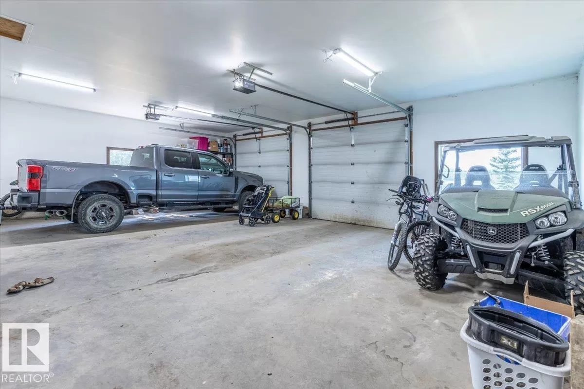 This Beautiful Home with an Oversized Double Attached Garage, Barn, and Double Detached Garage is situated on 55 Acres. Inside the home are 3 Bedrooms Including the Primary with a walk-in closet. The Primary also hosts a 5 piece Ensuite Bathroom, and a Double Sided Fireplace shared with the Living Room. The Den could be used as another Bedroom if needed. The Laundry Room has its own sink and extra storage. The Kitchen has an island with a second sink and is open to the Dining Room, and Living Room with Vaulted Ceilings. A 4 Piece Bathroom, and 2 Piece Bathroom are also on the Main floor with access to the Attached Heated Garage. The Basement is unfinished but open and ready to take in any direction. The Barn has 4 Box Stalls, a Tie Stall, a Loft in the center, and sliding doors on both ends. Rail Fencing off the back of the Barn makes it Great for animals. The Detached Garage has Power and a Concrete Floor. A prepared pad is in place for a future shop. This Gorgeous Property also has 2 Drilled Wells. (id:27476)
