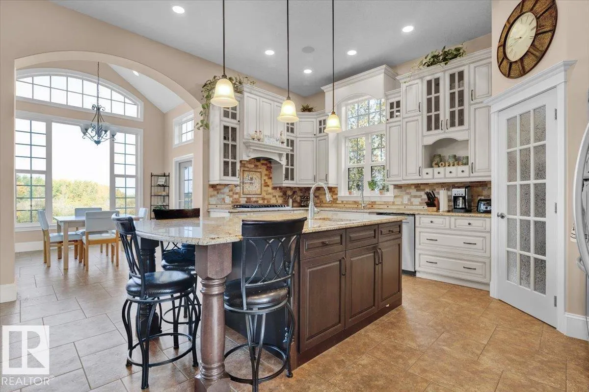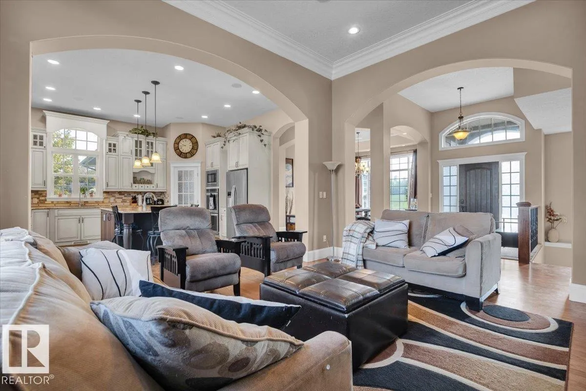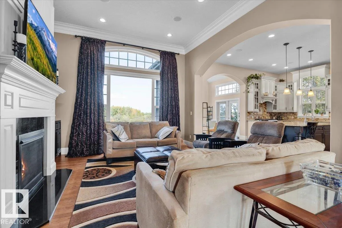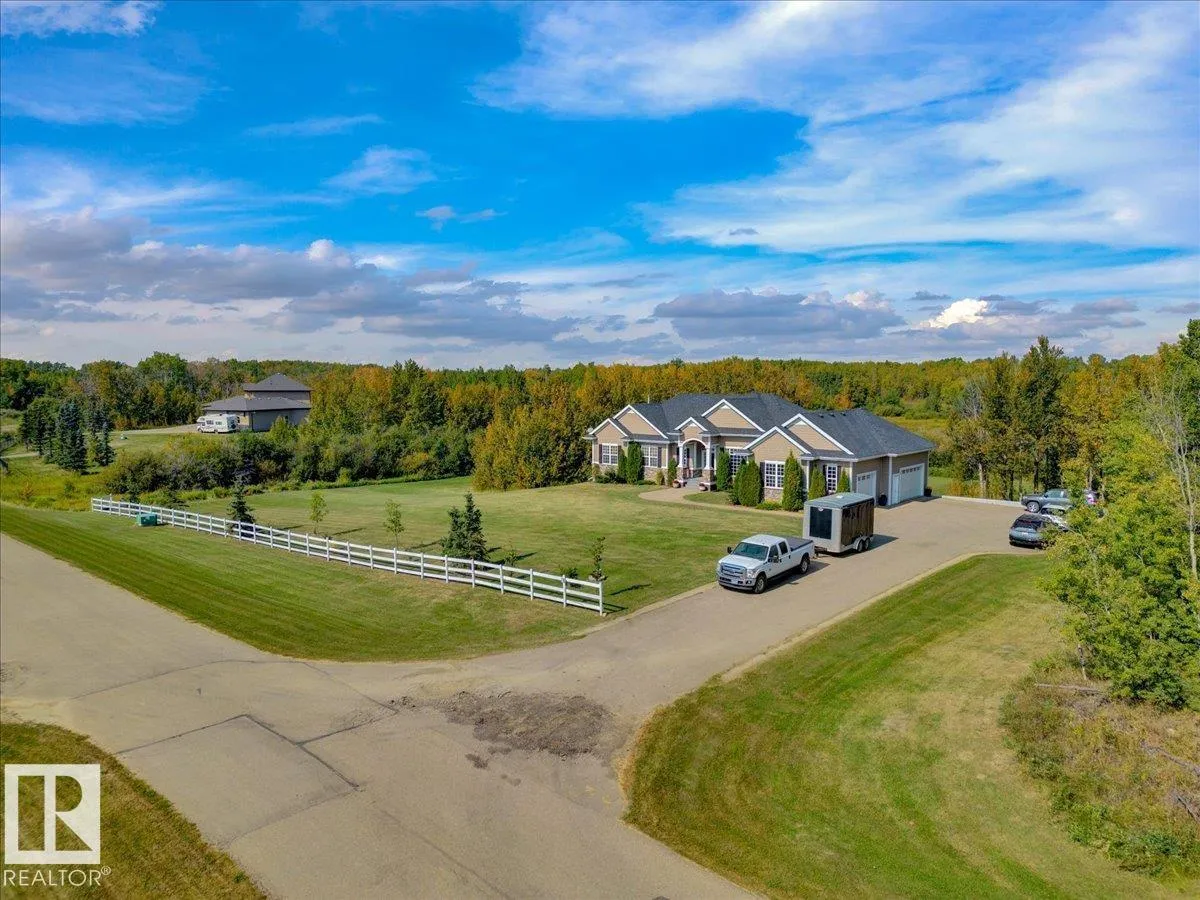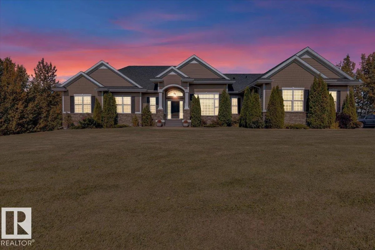What a breathtaking home!! Almost 2600 square feet above grade for this full custom built, one of a kind walk out bungalow on 2.9 Acres in the gated community of Woodland Heights. Soaring vaulted ceilings, elegant coffered ceilings, gourmet chef's kitchen with a walk through panty, huge island topped with beautiful stone counters , windows galore for a very bright living space, two fireplaces, total of five bedrooms(could be six) excellent flowing floor plan, triple oversize garage, 12.5 foot vaulted ceilings upstairs and 10 foot down..WOW! The Primary bedroom is a dream and the ensuite your own spa. Downstairs find infloor heat everywhere, two more generous sized bedrooms, spacious laundry room with tons of cabinets, gym, wet bar with bevy cooler, huge open space for entertaining! Walk out onto the aggregate patio and enjoy your sunsets....Far too much to share here...best see this one soon.... (id:27476)