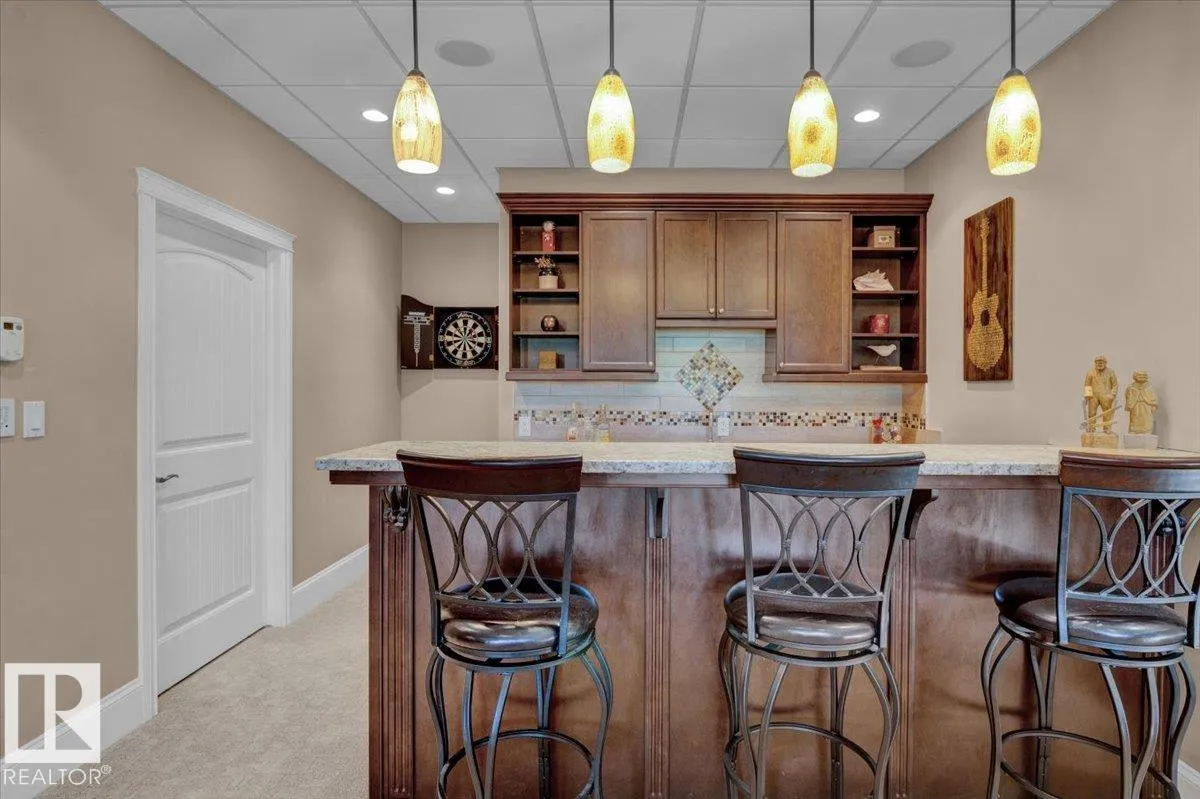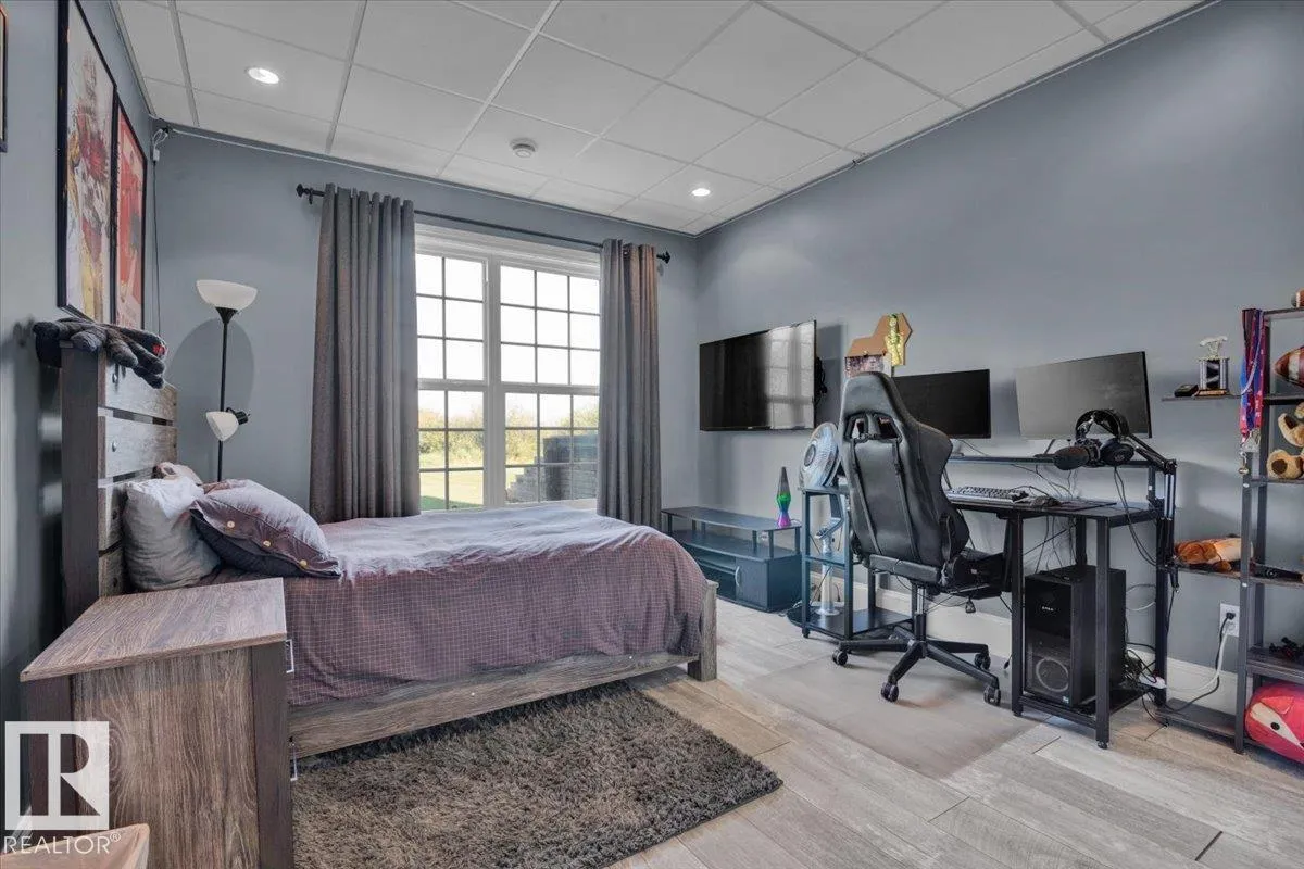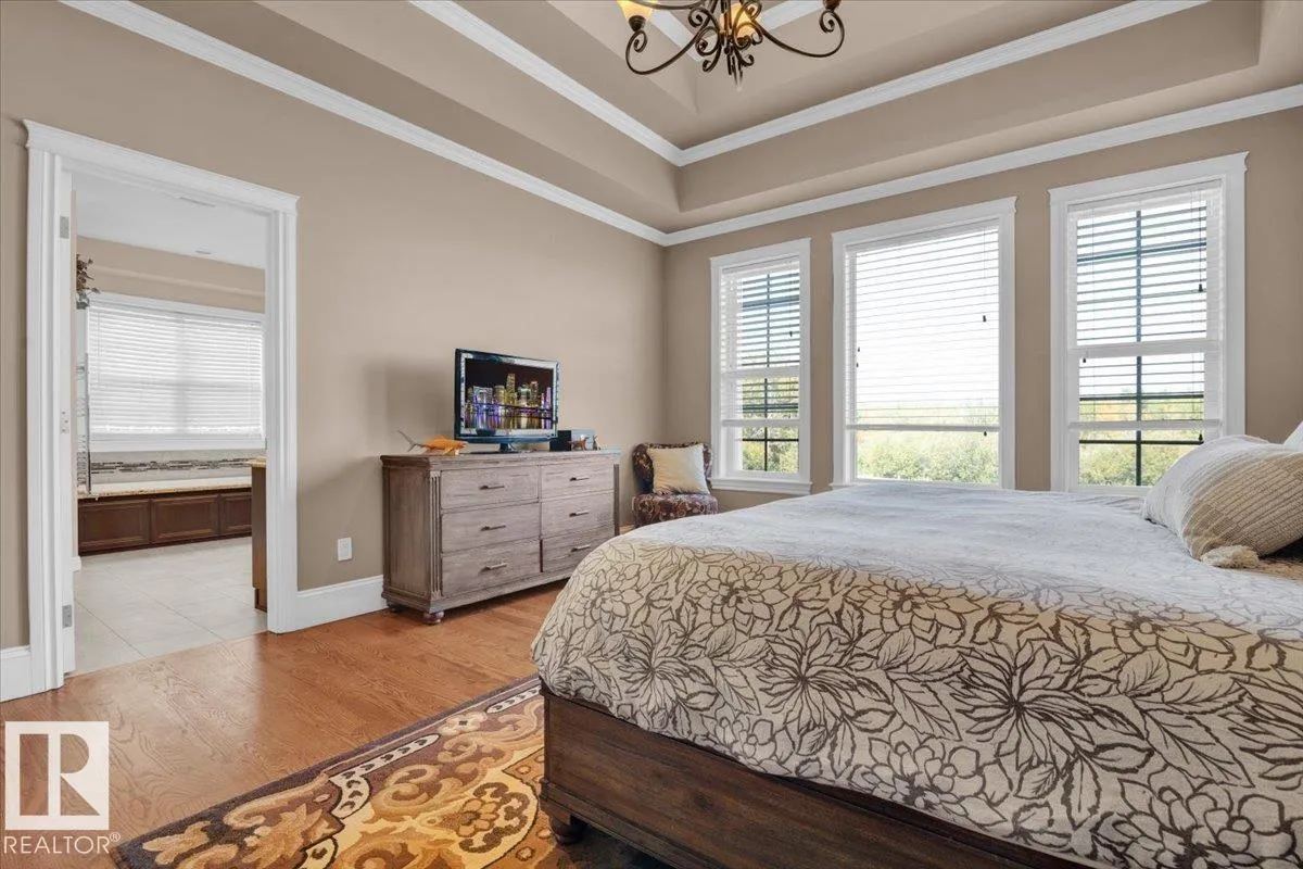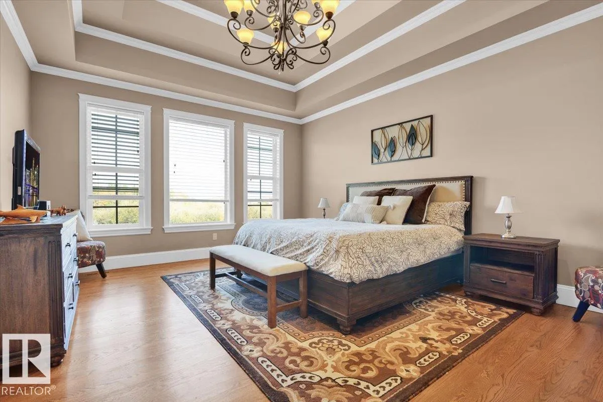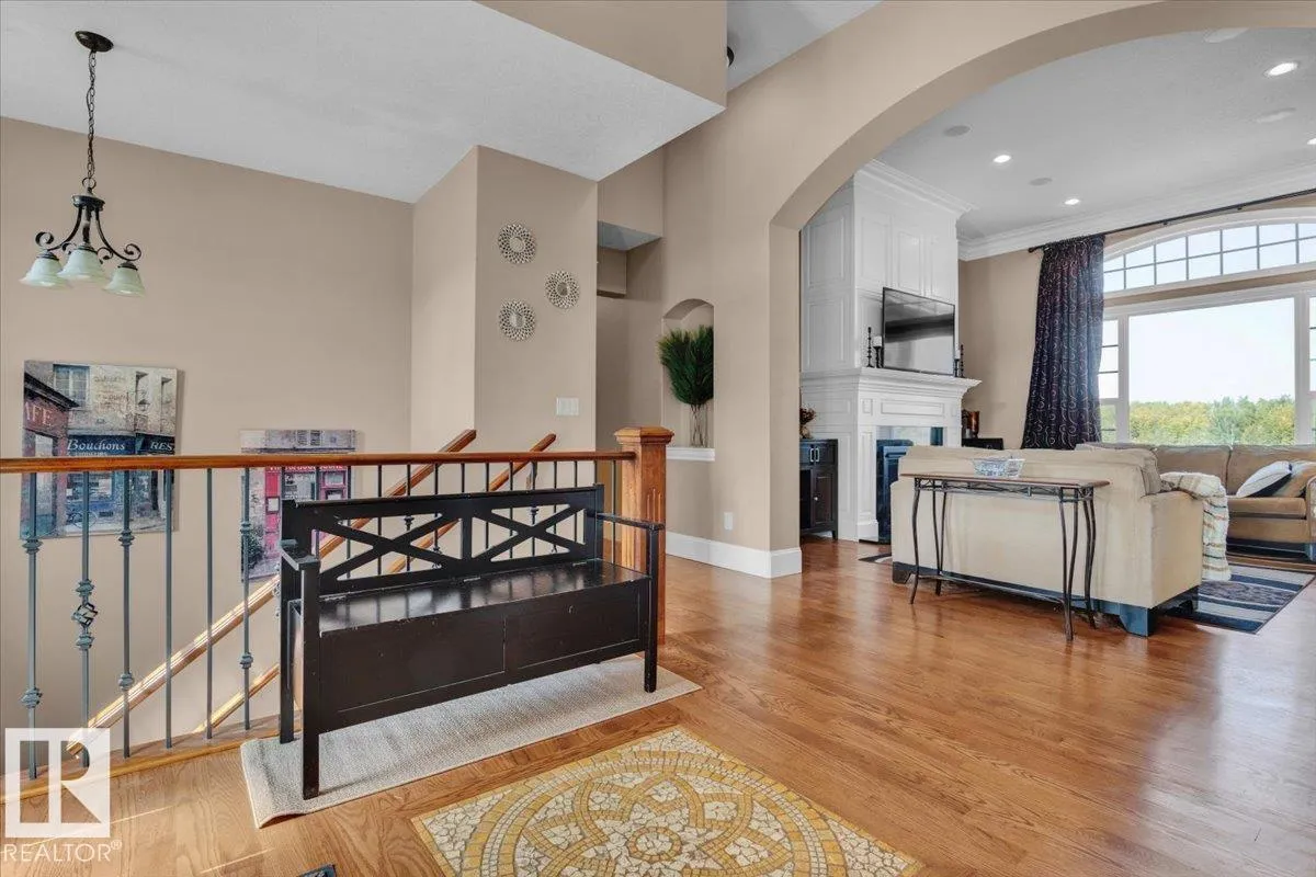 What a breathtaking home!! Almost 2600 square feet above grade for this full custom built, one of a kind walk out bungalow on 2.9 Acres in the gated community of Woodland Heights. Soaring vaulted ceilings, elegant coffered ceilings, gourmet chef's kitchen with a walk through panty, huge island topped with beautiful stone counters , windows galore for a very bright living space, two fireplaces, total of five bedrooms(could be six) excellent flowing floor plan, triple oversize garage, 12.5 foot vaulted ceilings upstairs and 10 foot down..WOW! The Primary bedroom is a dream and the ensuite your own spa. Downstairs find infloor heat everywhere, two more generous sized bedrooms, spacious laundry room with tons of cabinets, gym, wet bar with bevy cooler, huge open space for entertaining! Walk out onto the aggregate patio and enjoy your sunsets....Far too much to share here...best see this one soon.... (id:27476)