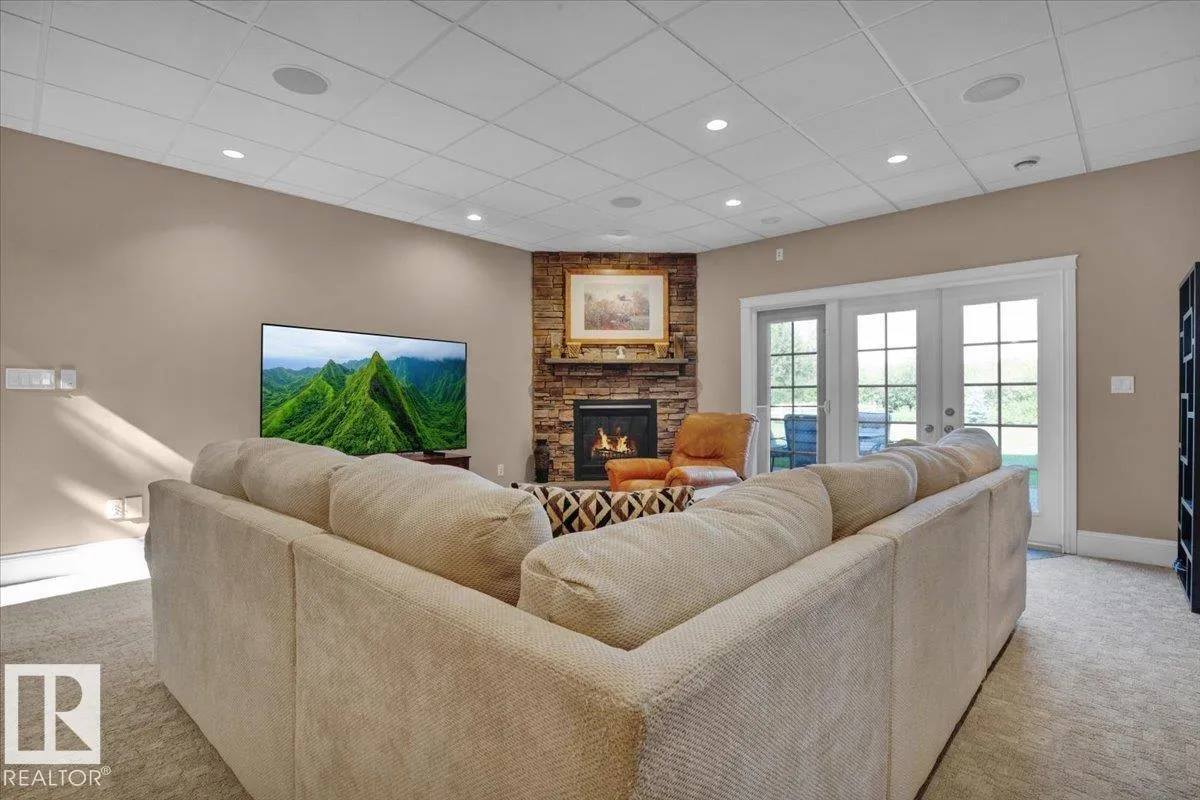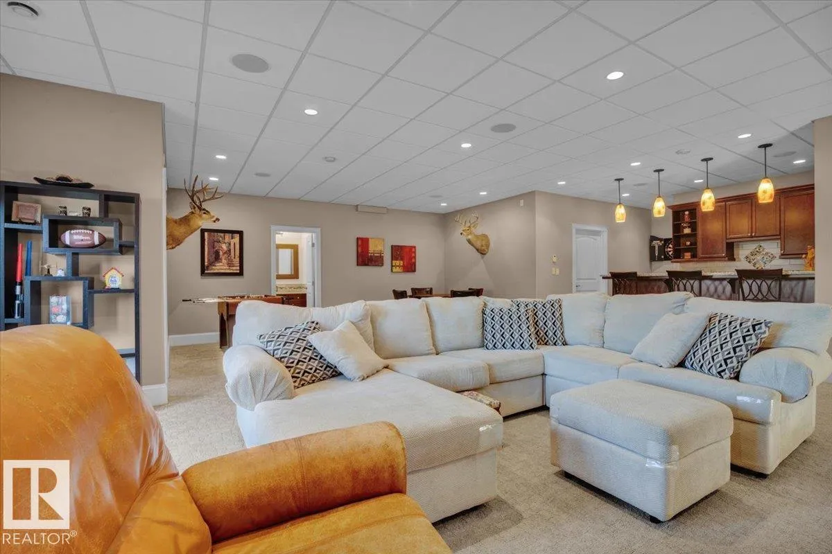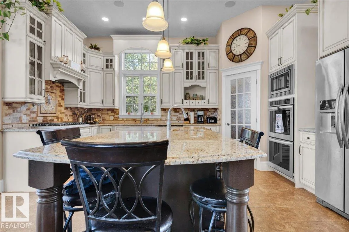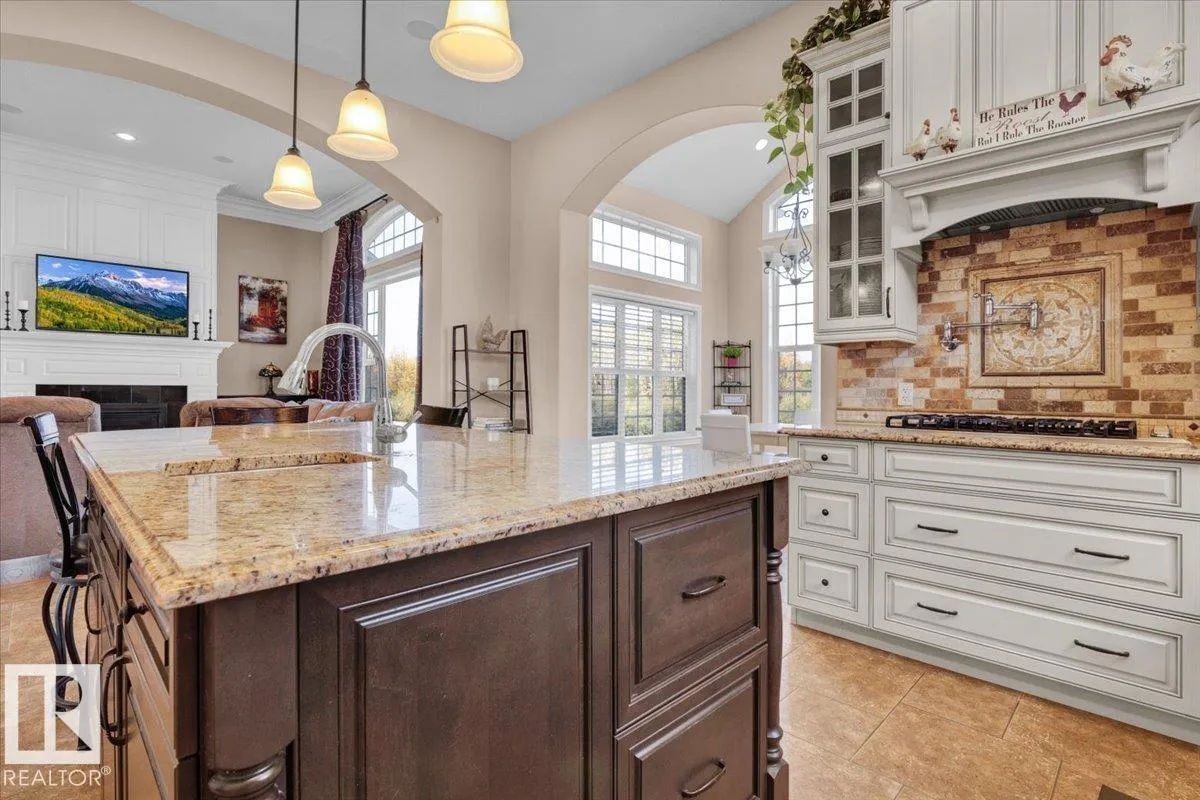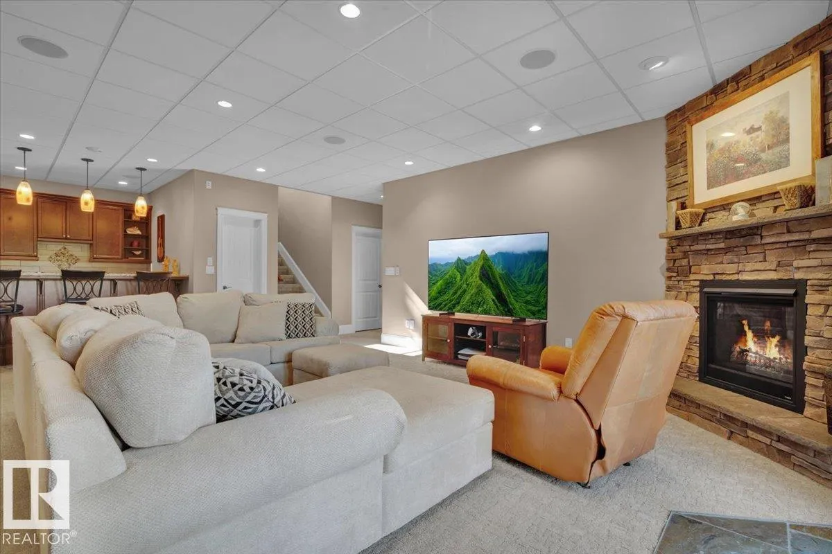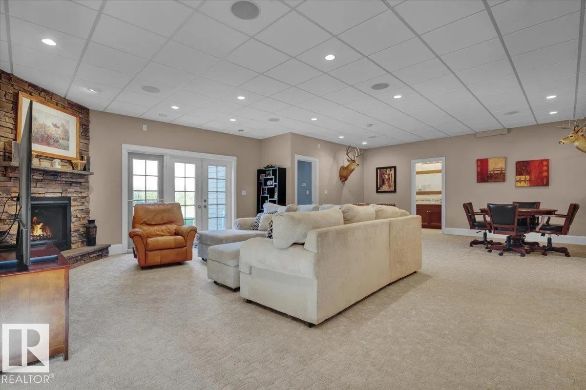 What a breathtaking home!! Almost 2600 square feet above grade for this full custom built, one of a kind walk out bungalow on 2.9 Acres in the gated community of Woodland Heights. Soaring vaulted ceilings, elegant coffered ceilings, gourmet chef's kitchen with a walk through panty, huge island topped with beautiful stone counters , windows galore for a very bright living space, two fireplaces, total of five bedrooms(could be six) excellent flowing floor plan, triple oversize garage, 12.5 foot vaulted ceilings upstairs and 10 foot down..WOW! The Primary bedroom is a dream and the ensuite your own spa. Downstairs find infloor heat everywhere, two more generous sized bedrooms, spacious laundry room with tons of cabinets, gym, wet bar with bevy cooler, huge open space for entertaining! Walk out onto the aggregate patio and enjoy your sunsets....Far too much to share here...best see this one soon.... (id:27476)