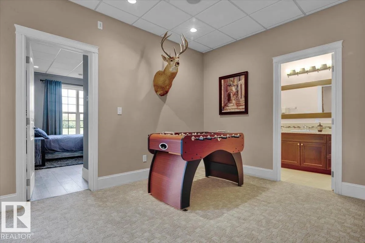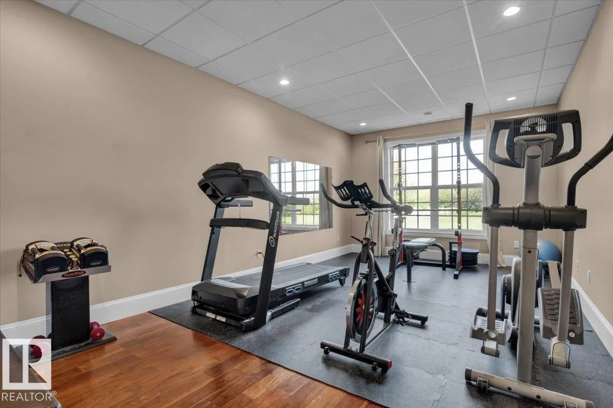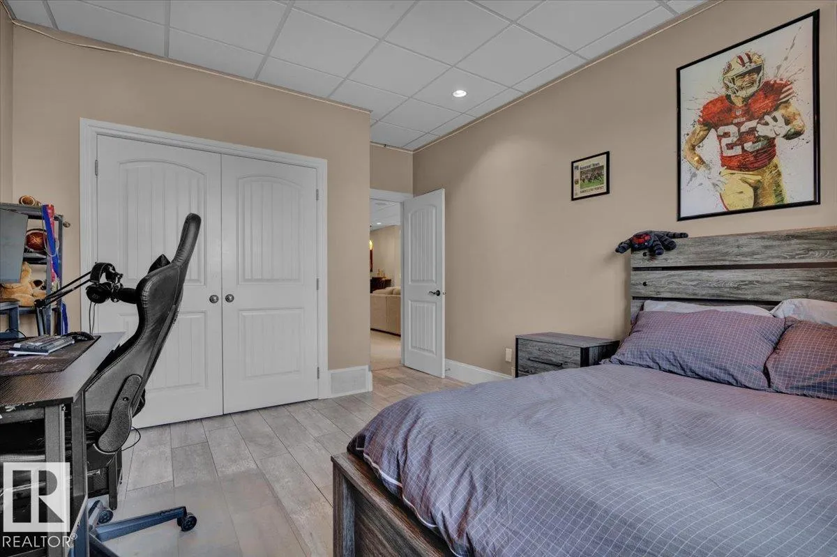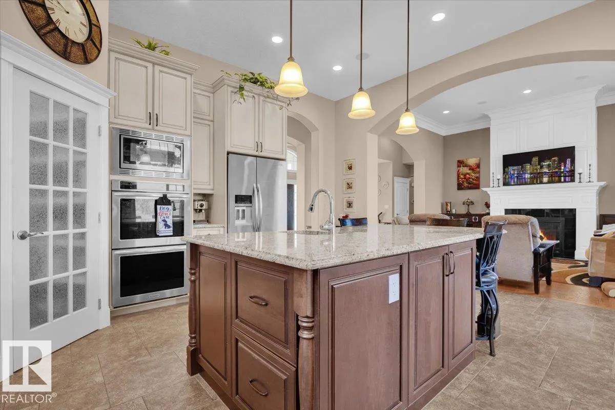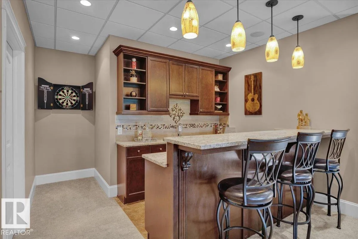 What a breathtaking home!! Almost 2600 square feet above grade for this full custom built, one of a kind walk out bungalow on 2.9 Acres in the gated community of Woodland Heights. Soaring vaulted ceilings, elegant coffered ceilings, gourmet chef's kitchen with a walk through panty, huge island topped with beautiful stone counters , windows galore for a very bright living space, two fireplaces, total of five bedrooms(could be six) excellent flowing floor plan, triple oversize garage, 12.5 foot vaulted ceilings upstairs and 10 foot down..WOW! The Primary bedroom is a dream and the ensuite your own spa. Downstairs find infloor heat everywhere, two more generous sized bedrooms, spacious laundry room with tons of cabinets, gym, wet bar with bevy cooler, huge open space for entertaining! Walk out onto the aggregate patio and enjoy your sunsets....Far too much to share here...best see this one soon.... (id:27476)