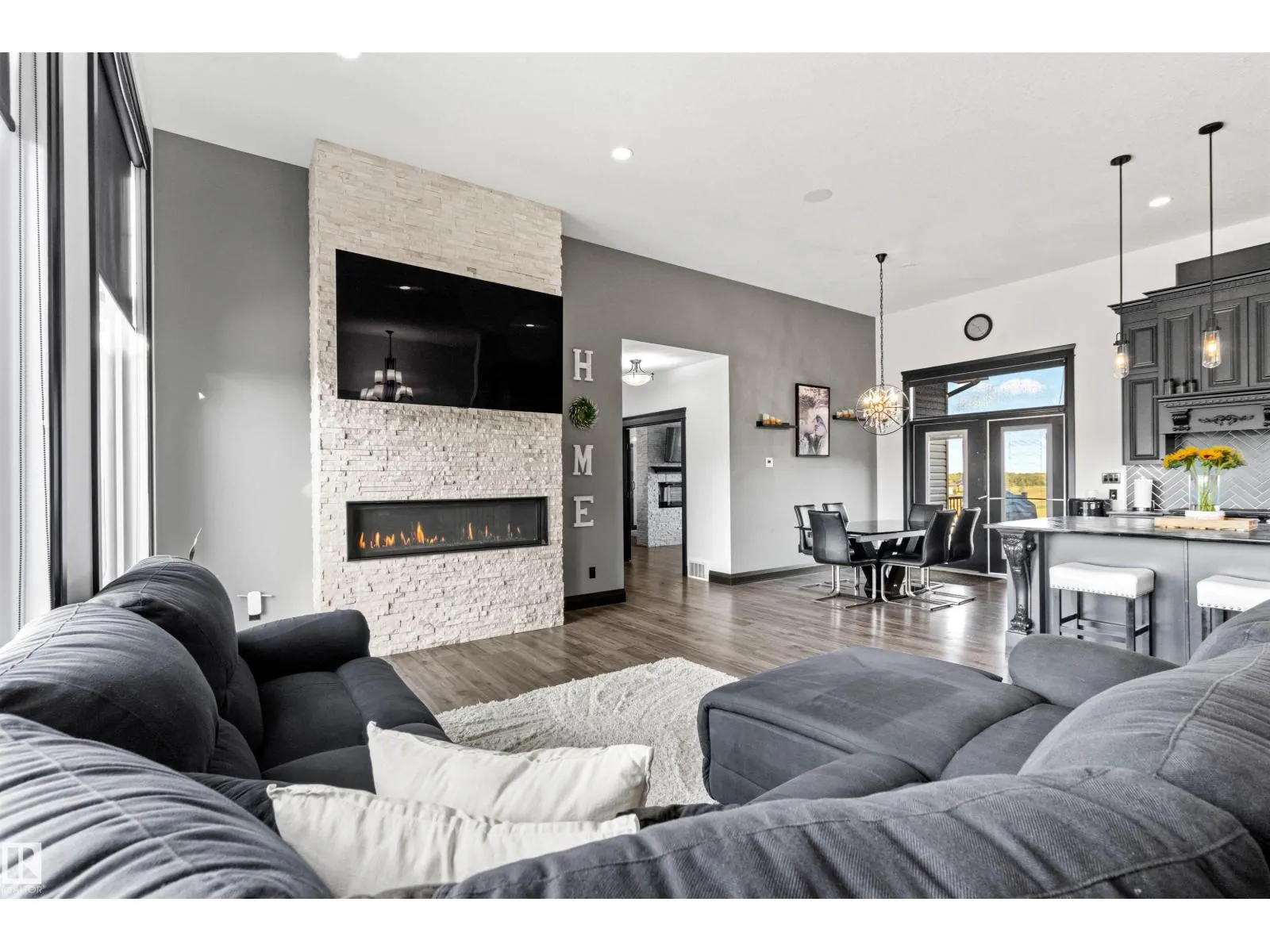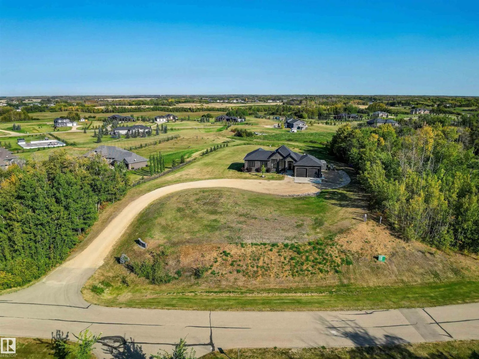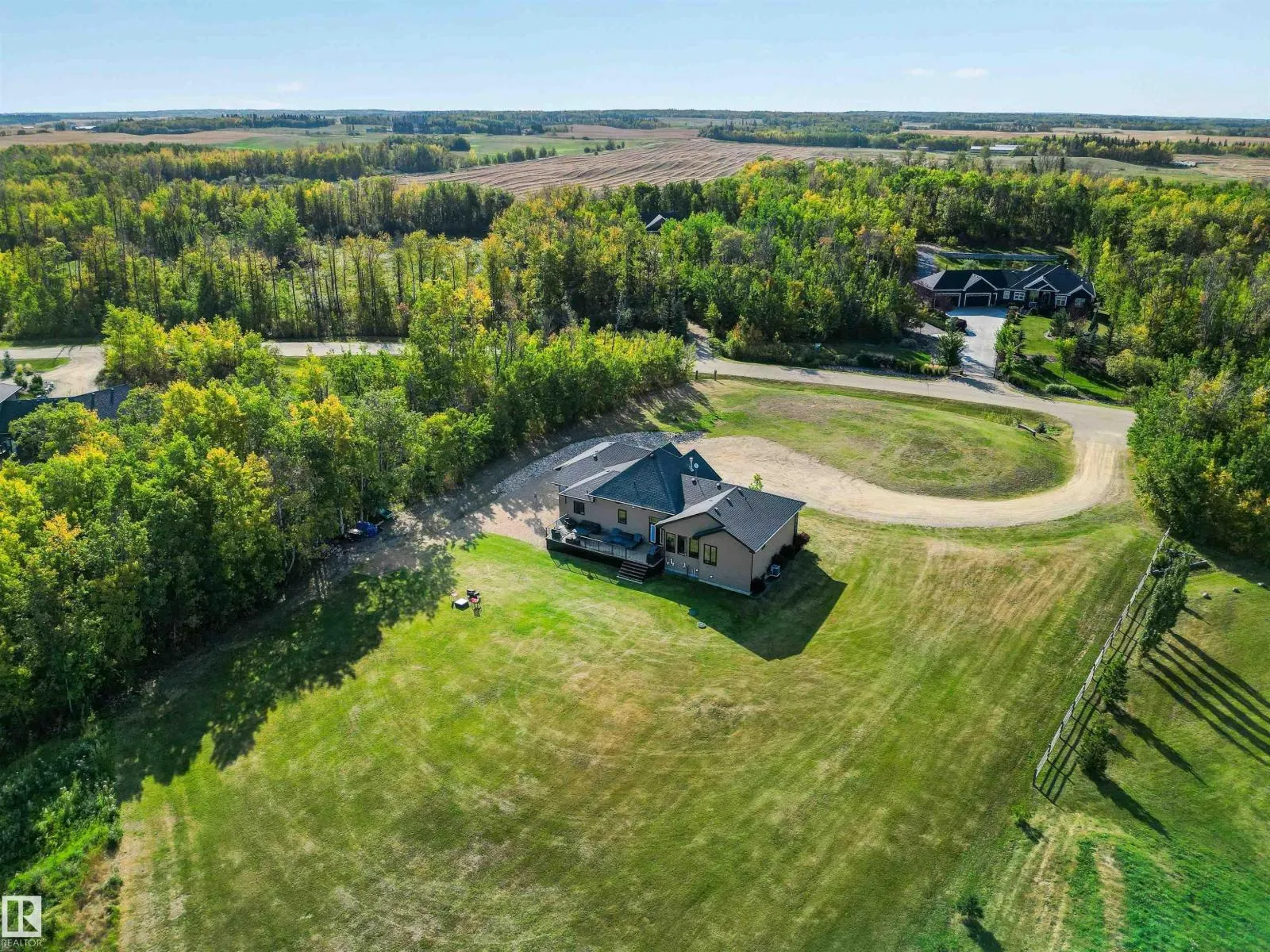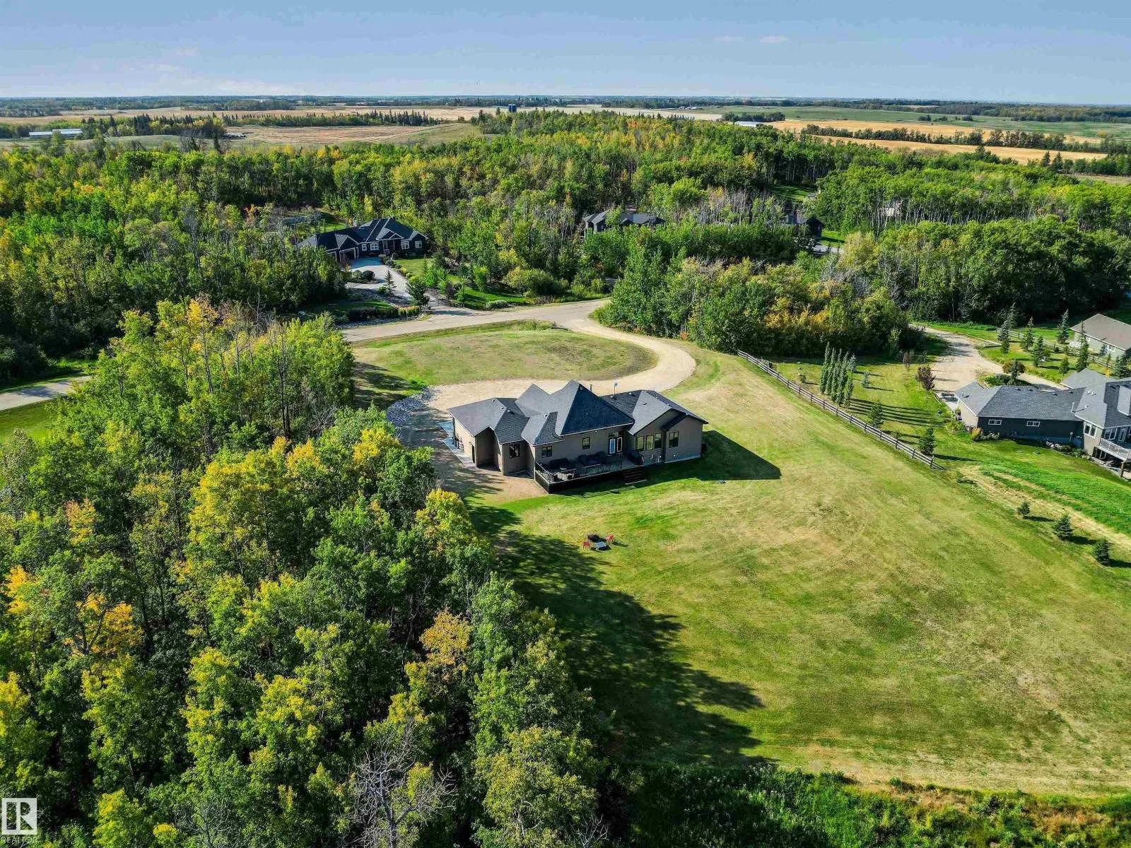 Incredible Custom Built Bungalow in Rosewood Estates! 2.55 acres offering a scenic balance of trees & view of the subdivision from the highpoint of the community. Enjoy over 2050sqft showcasing elegant custom kitchen w/ solid wood cabinetry, stylish granite counters, lg island holds beverage cooler & microwave. KitchenAid gas stove & matching appliances plus walk-through pantry. Great Room features 12ft ceilings & beautiful stone feature wall w/gas fireplace. Primary Suite is a definite SHOWSTOPPER w/ plenty of space for king-sized suite, his & hers walk-in closets & TRUE SPA ensuite w/ huge glassed shower, inviting tub & separate vanities. 2 more large bedrooms, another full bath plus an office, laundry room, mudroom & 2pc bath complete the main level. Massive basement is ready for your development - a large steel I-Beam was used to allow for endless options. Basement & garage also offer in-floor heating...now let's talk about the ultimate garage: Epoxy floors, hot & cold water & 10ft doors! Shows 10+! (id:27476)
