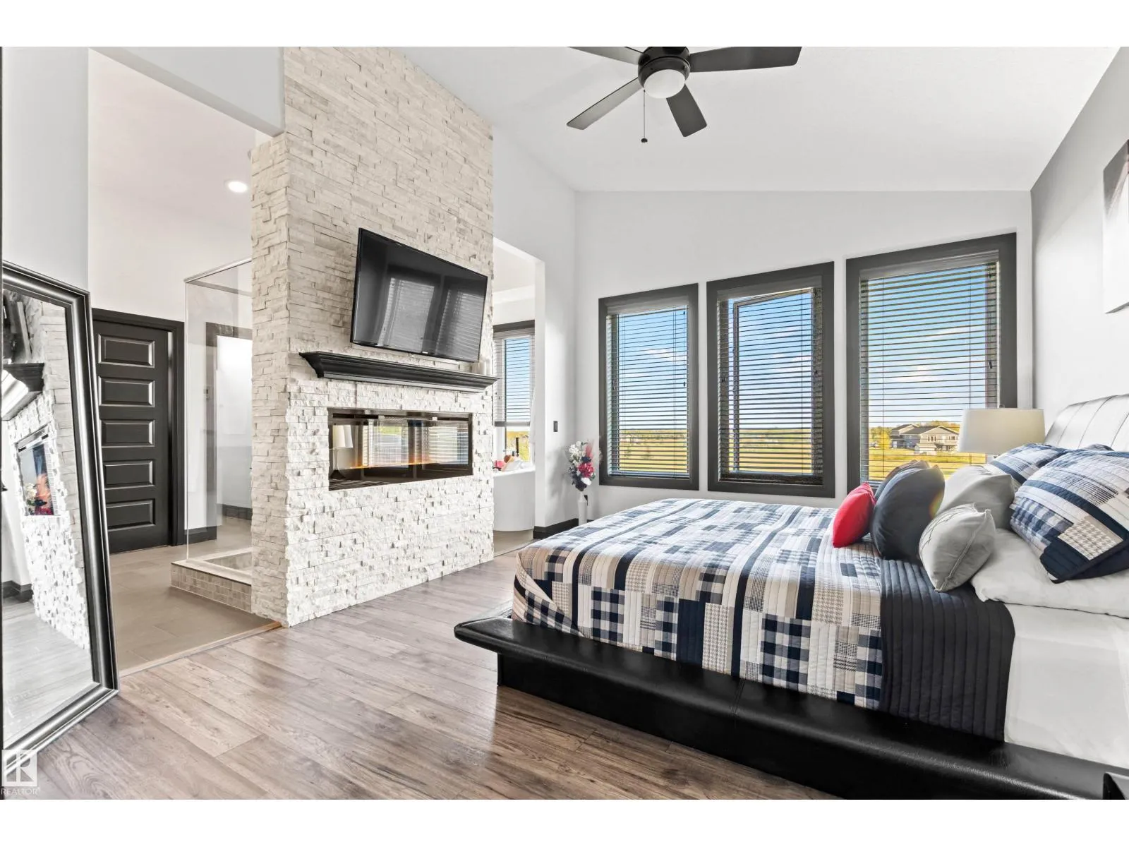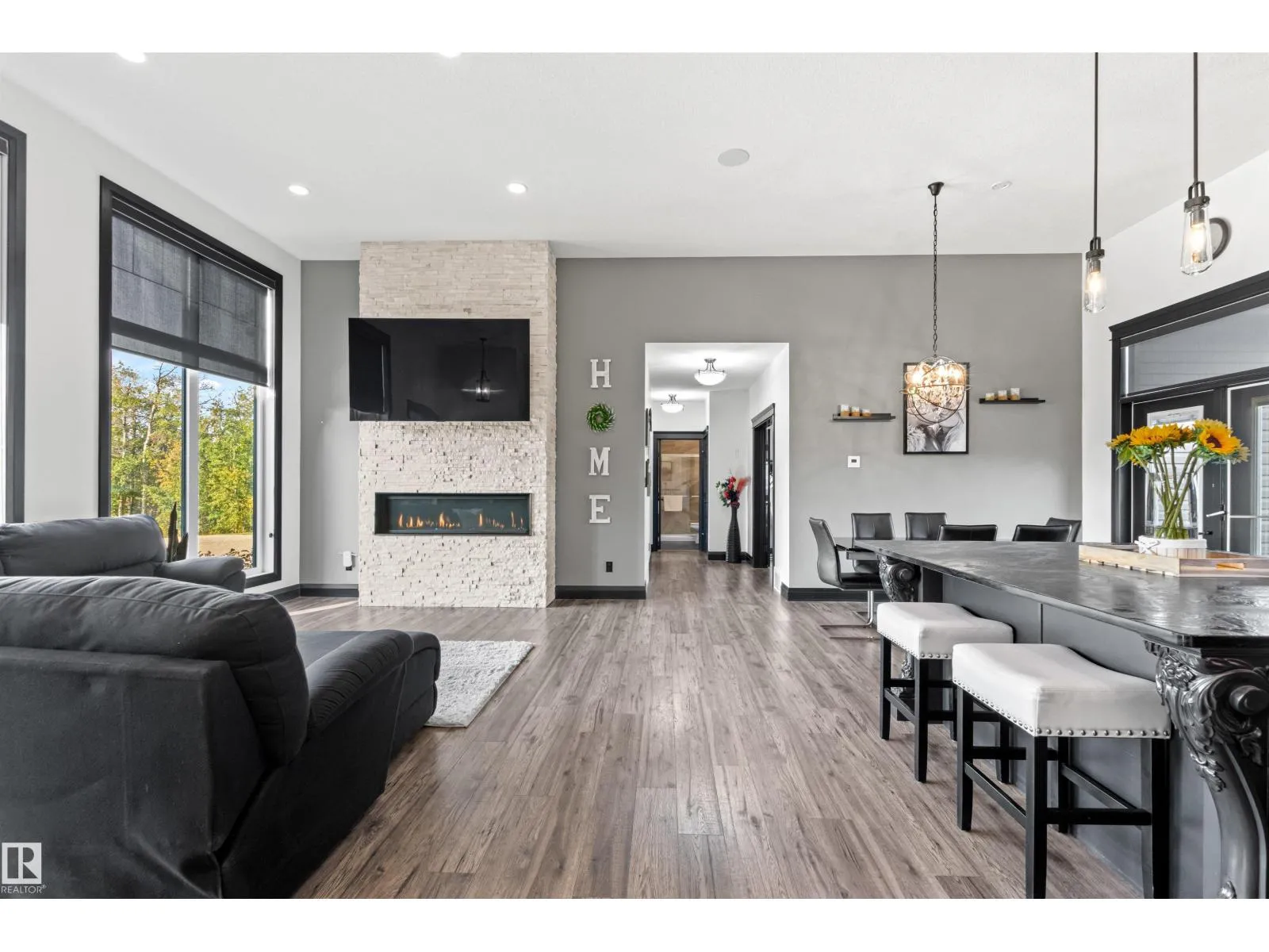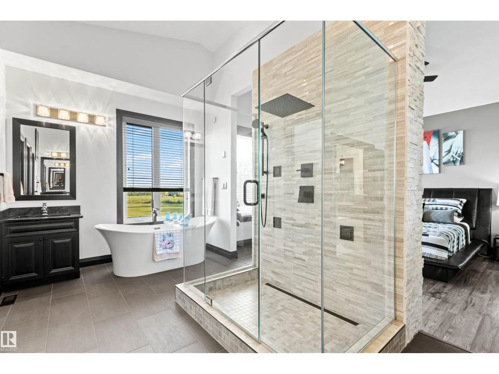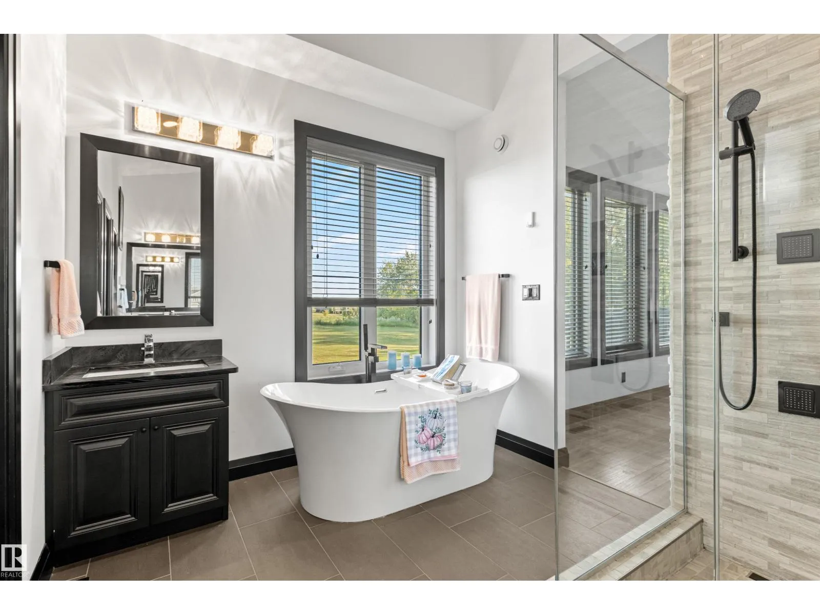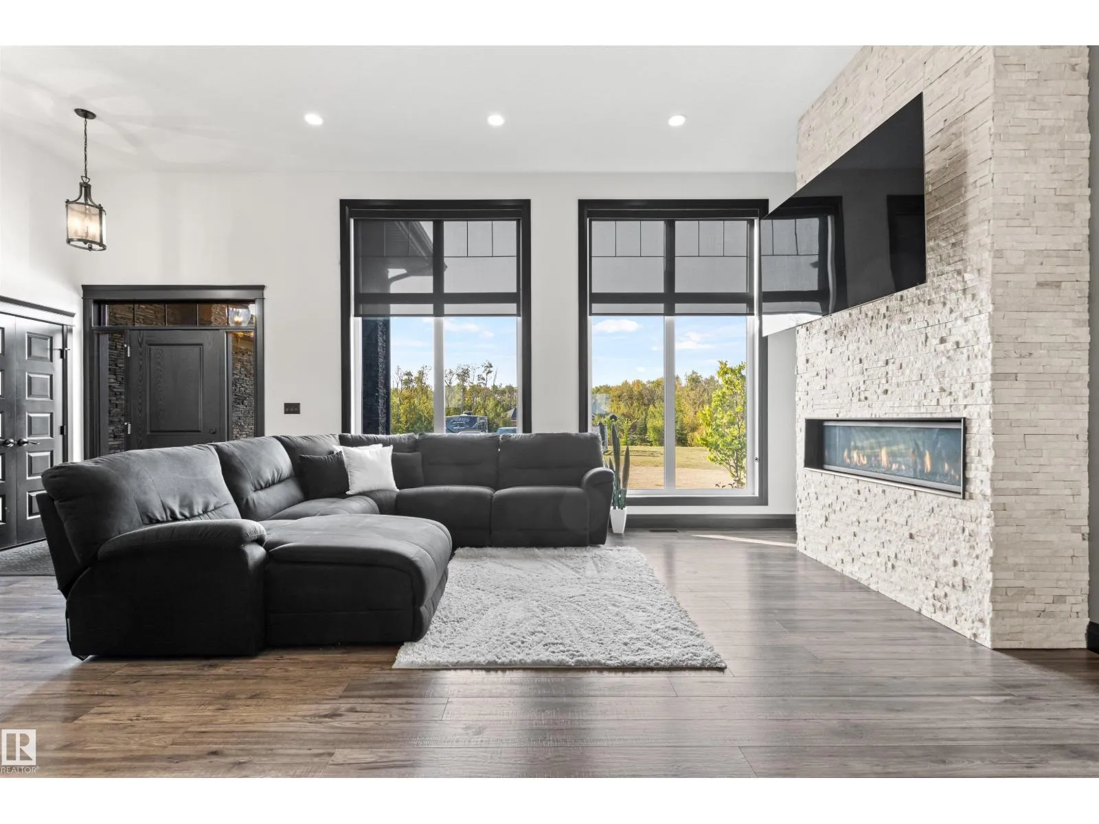 Incredible Custom Built Bungalow in Rosewood Estates! 2.55 acres offering a scenic balance of trees & view of the subdivision from the highpoint of the community. Enjoy over 2050sqft showcasing elegant custom kitchen w/ solid wood cabinetry, stylish granite counters, lg island holds beverage cooler & microwave. KitchenAid gas stove & matching appliances plus walk-through pantry. Great Room features 12ft ceilings & beautiful stone feature wall w/gas fireplace. Primary Suite is a definite SHOWSTOPPER w/ plenty of space for king-sized suite, his & hers walk-in closets & TRUE SPA ensuite w/ huge glassed shower, inviting tub & separate vanities. 2 more large bedrooms, another full bath plus an office, laundry room, mudroom & 2pc bath complete the main level. Massive basement is ready for your development - a large steel I-Beam was used to allow for endless options. Basement & garage also offer in-floor heating...now let's talk about the ultimate garage: Epoxy floors, hot & cold water & 10ft doors! Shows 10+! (id:27476)