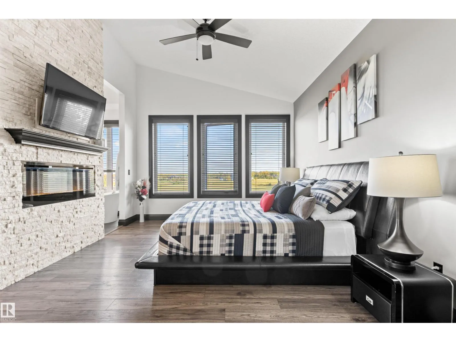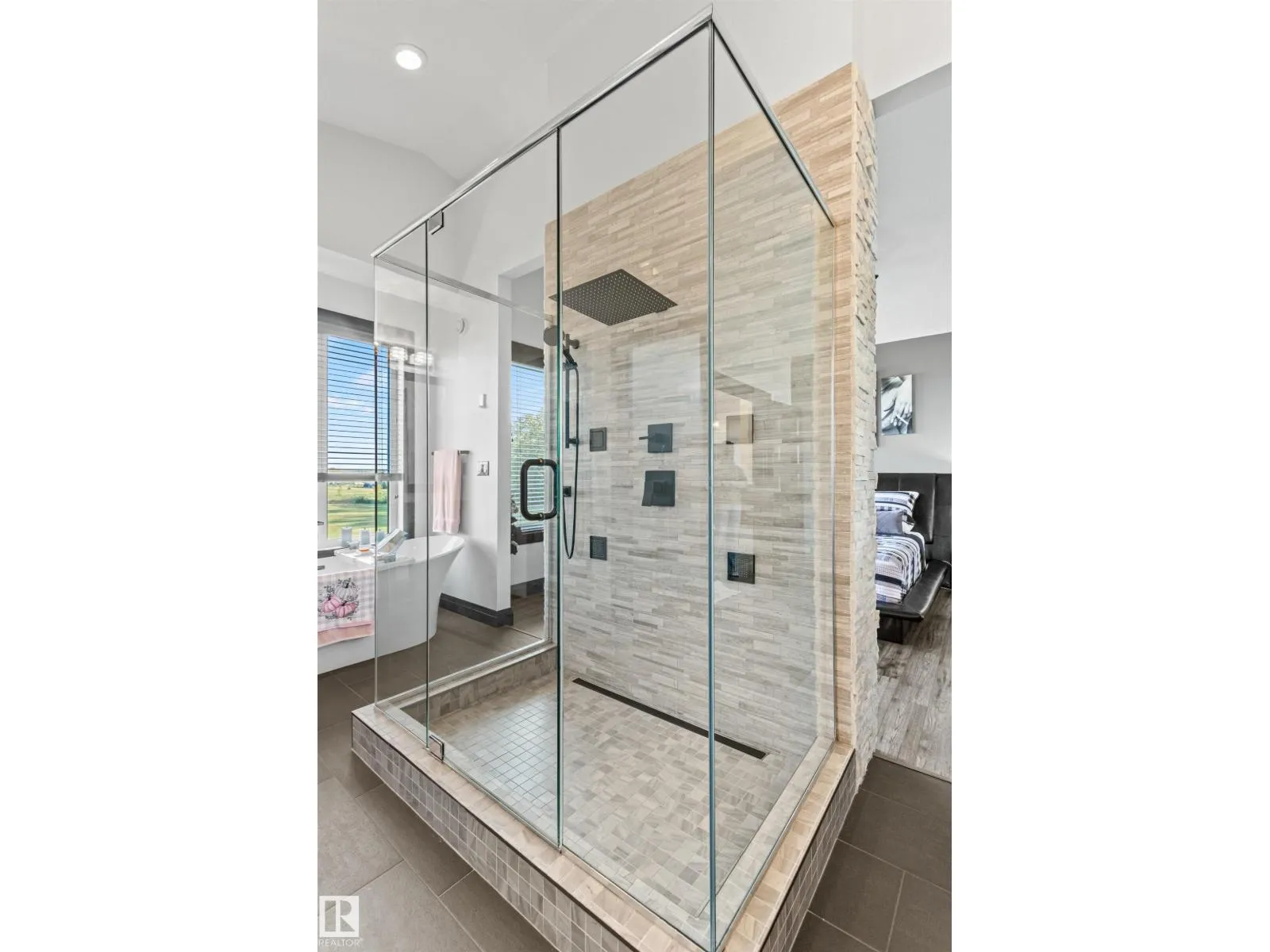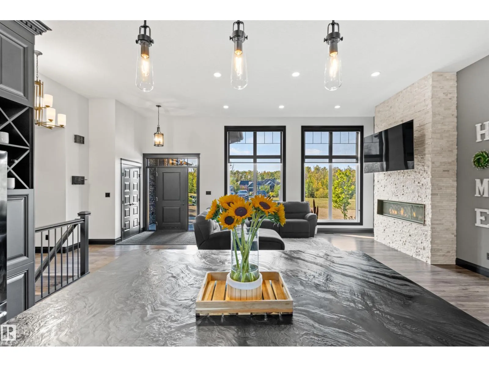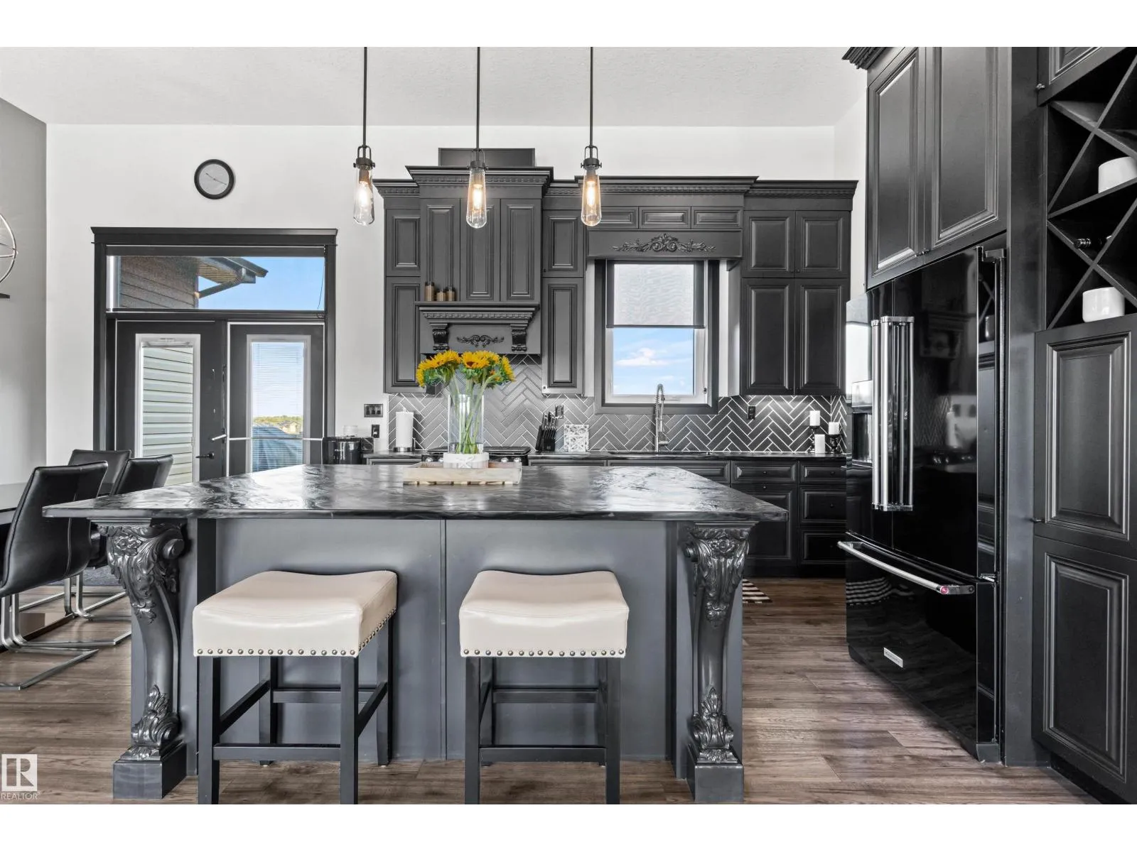 Incredible Custom Built Bungalow in Rosewood Estates! 2.55 acres offering a scenic balance of trees & view of the subdivision from the highpoint of the community. Enjoy over 2050sqft showcasing elegant custom kitchen w/ solid wood cabinetry, stylish granite counters, lg island holds beverage cooler & microwave. KitchenAid gas stove & matching appliances plus walk-through pantry. Great Room features 12ft ceilings & beautiful stone feature wall w/gas fireplace. Primary Suite is a definite SHOWSTOPPER w/ plenty of space for king-sized suite, his & hers walk-in closets & TRUE SPA ensuite w/ huge glassed shower, inviting tub & separate vanities. 2 more large bedrooms, another full bath plus an office, laundry room, mudroom & 2pc bath complete the main level. Massive basement is ready for your development - a large steel I-Beam was used to allow for endless options. Basement & garage also offer in-floor heating...now let's talk about the ultimate garage: Epoxy floors, hot & cold water & 10ft doors! Shows 10+! (id:27476)