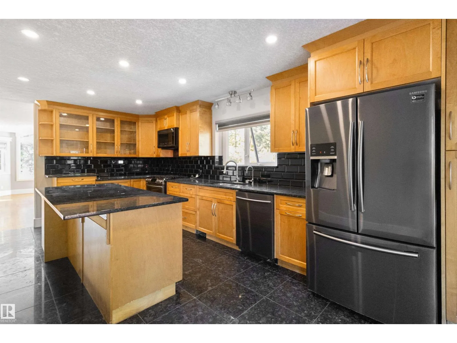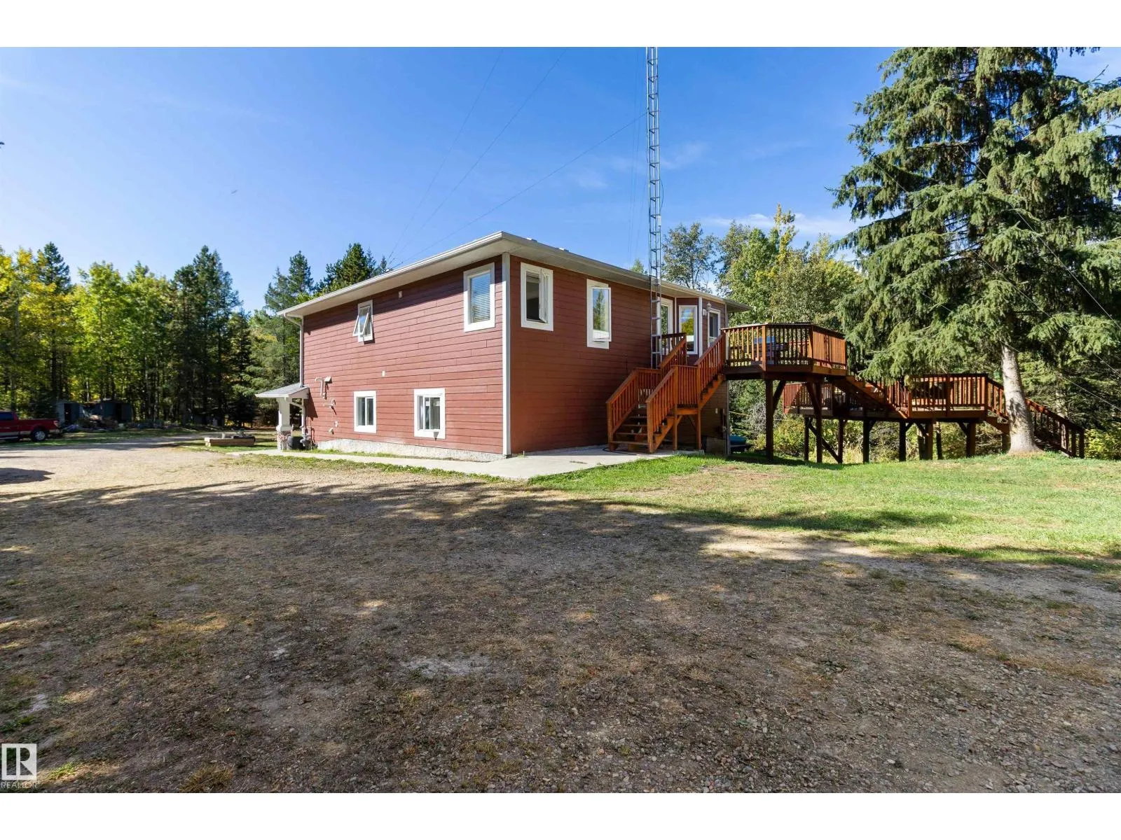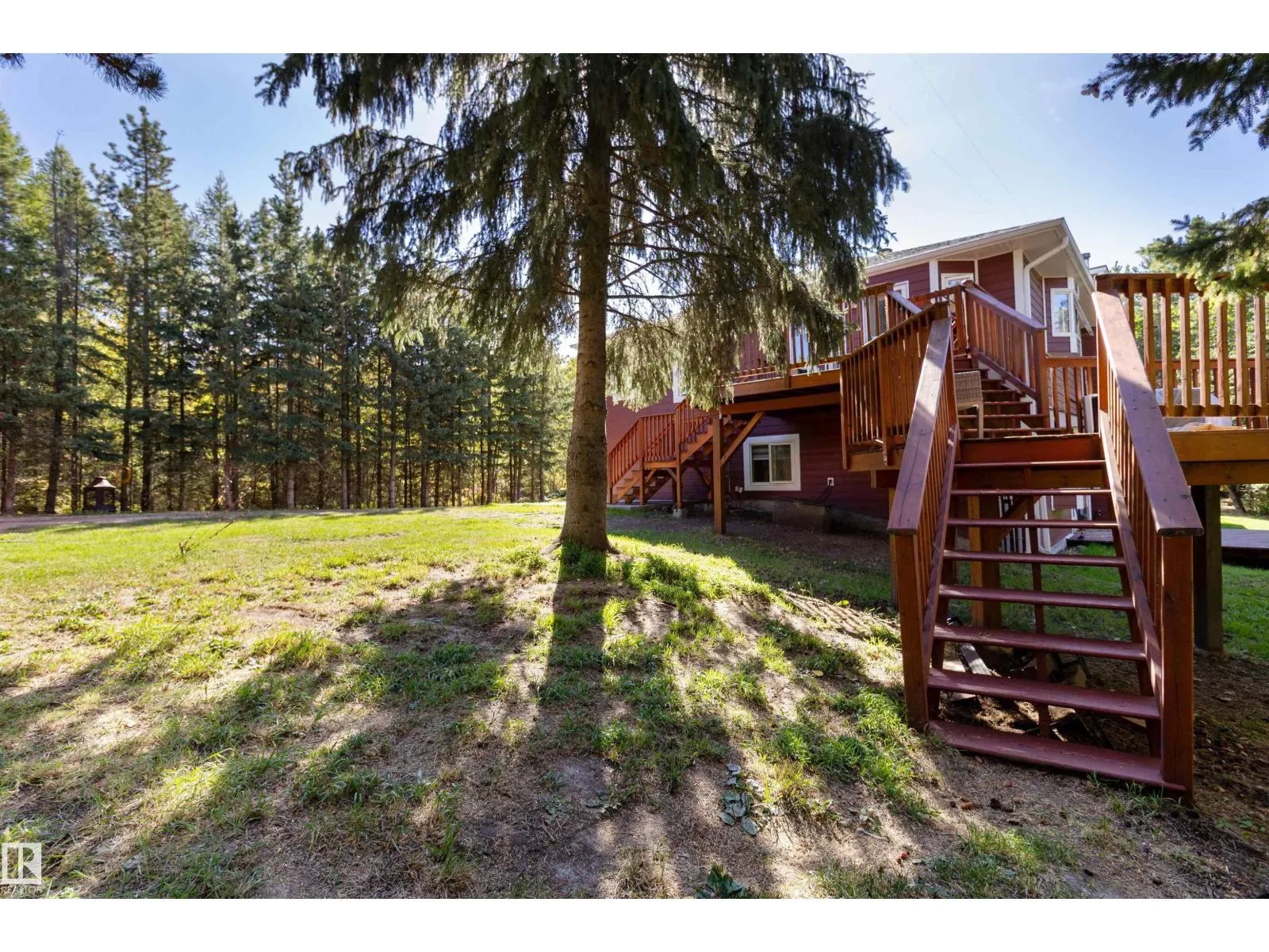 Amazing 4.55 acre property with stunning hillside home w/ dream shop! Over 2900 sq ft developed in this beautiful walkout dwelling featuring 3+2 bds & 2.5 baths. Granite tile & maple hardwood throughout including stairs! Chef's kitchen with maple cabinets, granite counters, subway tile backsplash, oversized island & massive walk-in pantry. Huge LR/DR with gas fp & bay window. 16x15' primary bd has huge walk-in closet & 5 pc ensuite w/ luxurious jetted tub. 2nd kitchen nearly complete on lower level for extended family or nanny! Large FR with 2nd fireplace has stacked stone to ceiling. 3 large bds down & another 4 pc bath. Hi-eff furnace & hot water tank. Recent ext upgrade included Hardy plank siding, shingles, new soffits, facia & eves troughs! 2 tier deck & concrete patio. Amazing 65x36.5' metal clad shop w/ 14' overhead door, mezzanine, floating concrete slab & 220V service. Cute detached cabin awaits finishing touch - could be Mom's yoga studio! Bordering 13 acre reserve. Minutes to Sherwood Park. (id:27476)
