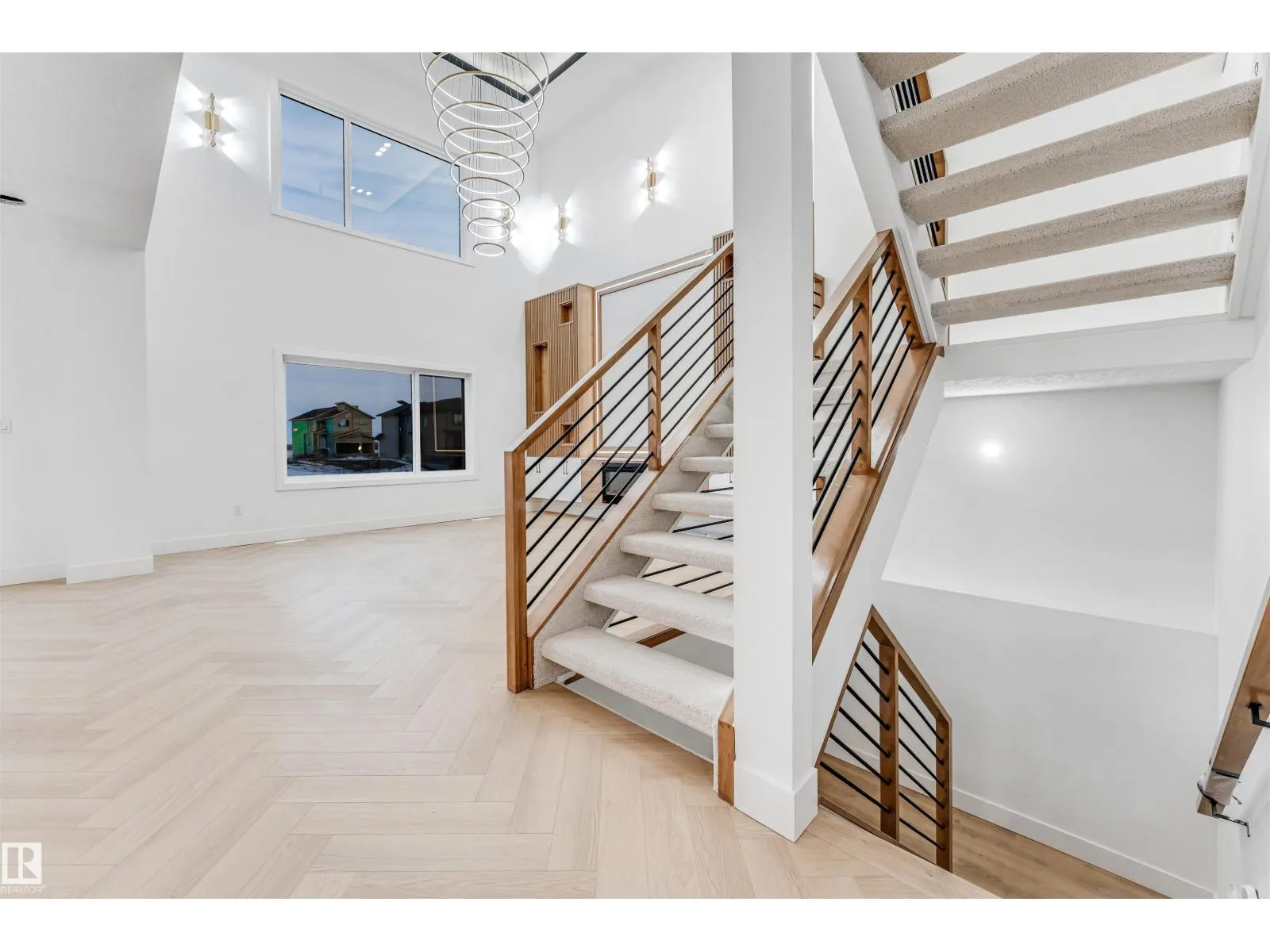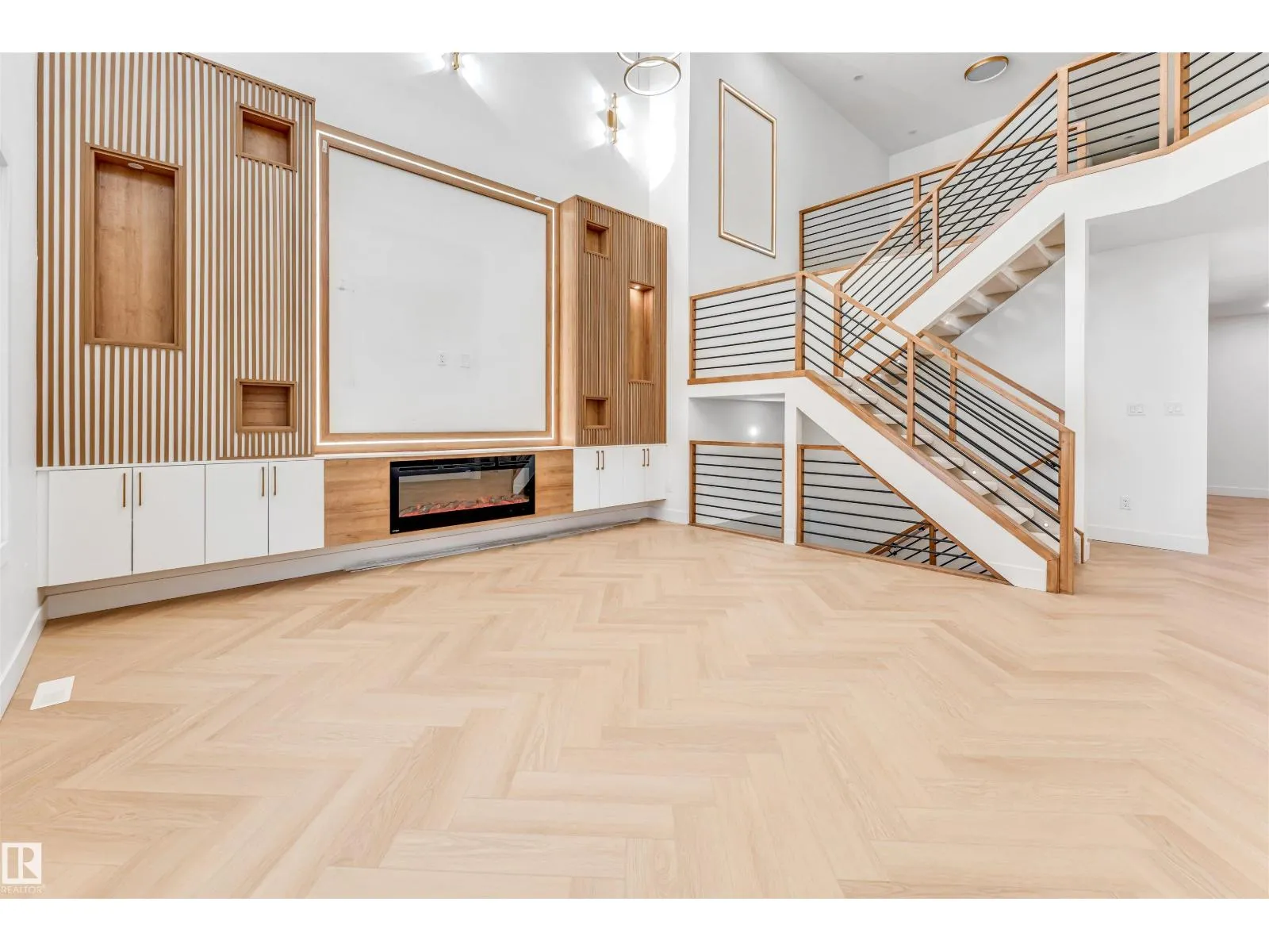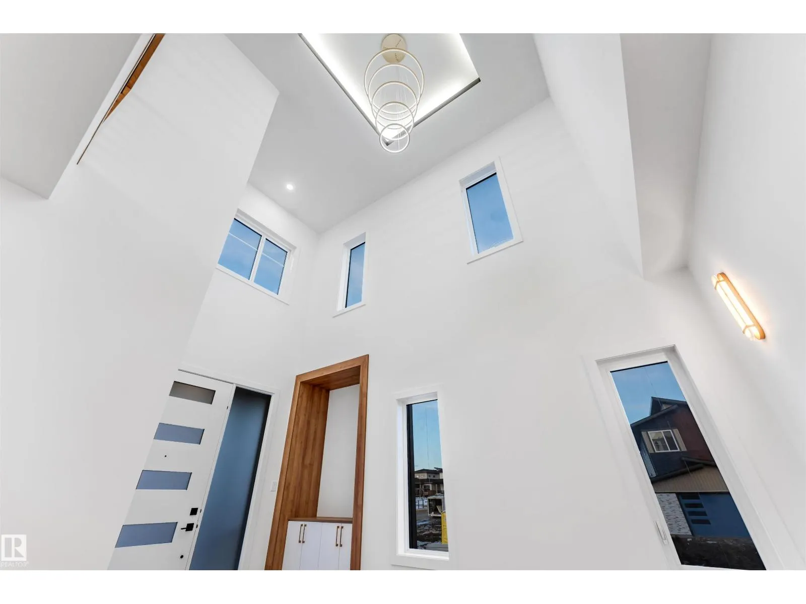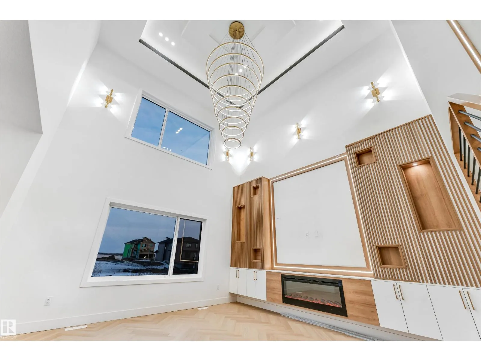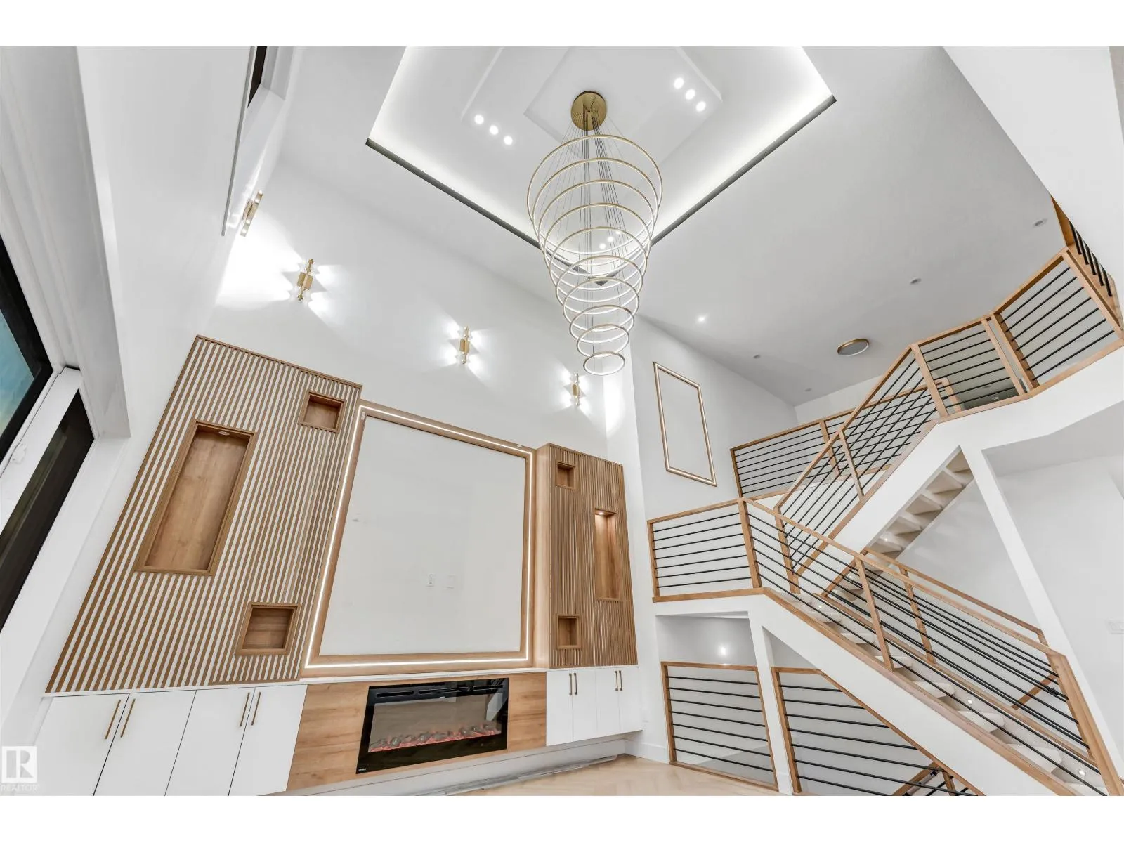 This Amazing WALKOUT home is thoughtfully designed to combine functionality, luxury, & modern elegance. Spanning approximately 2,900 sq. ft., it features 9, 10, & 20 ft ceilings, stunning feature walls & ceilings, & 2 grand open-to-above with 2 living areas that floods the home with natural light & offers beautiful pond views. The main floor includes a full bedroom & bath, ideal for guests or multi-generational living, along with a chef-inspired kitchen boasting ceiling-high cabinets, quartz countertops, & a fully equipped spice kitchen perfect for those who love to cook & entertain. Sophisticated finishes such as tiled & vinyl flooring, a designer fireplace wall, & a deck overlooking the green-space add an extra layer of elegance & comfort. The separate entrance offers endless potential, whether you envision a legal suite, gym, or entertainment area. Nestled in a serene location just 10 minutes from Costco, Walmart, YEG International Airport, bilingual schools, & all amenities. (id:27476)