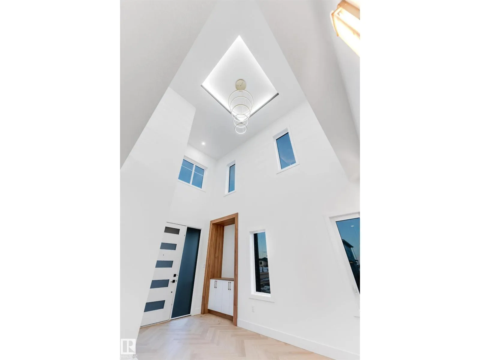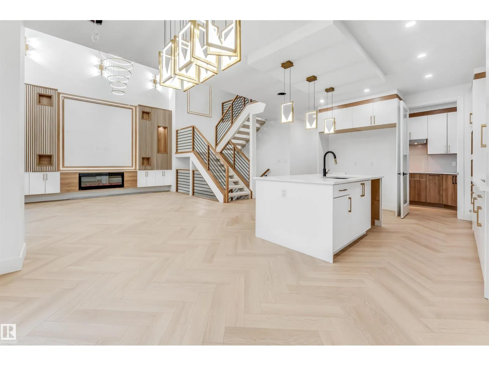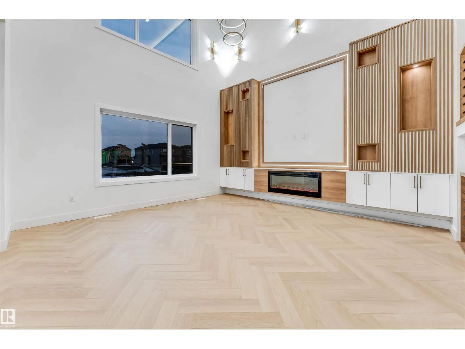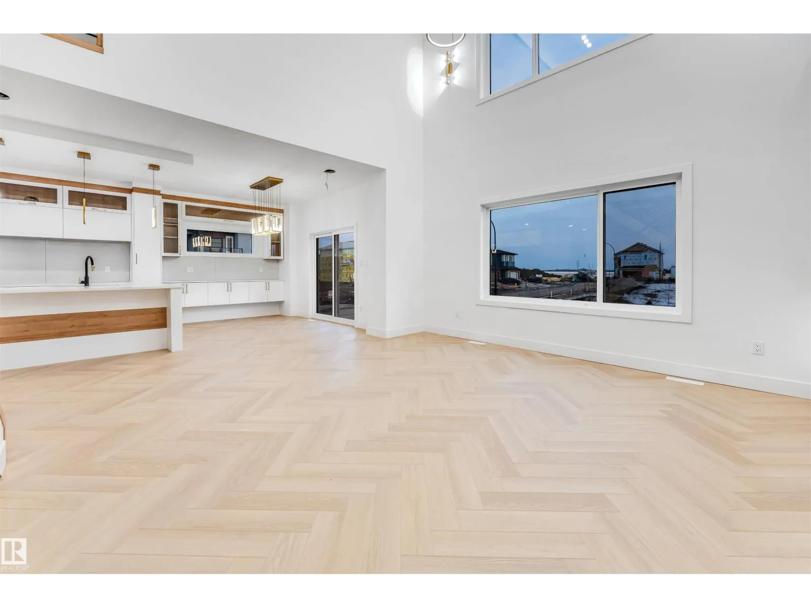 This Amazing WALKOUT home is thoughtfully designed to combine functionality, luxury, & modern elegance. Spanning approximately 2,900 sq. ft., it features 9, 10, & 20 ft ceilings, stunning feature walls & ceilings, & 2 grand open-to-above with 2 living areas that floods the home with natural light & offers beautiful pond views. The main floor includes a full bedroom & bath, ideal for guests or multi-generational living, along with a chef-inspired kitchen boasting ceiling-high cabinets, quartz countertops, & a fully equipped spice kitchen perfect for those who love to cook & entertain. Sophisticated finishes such as tiled & vinyl flooring, a designer fireplace wall, & a deck overlooking the green-space add an extra layer of elegance & comfort. The separate entrance offers endless potential, whether you envision a legal suite, gym, or entertainment area. Nestled in a serene location just 10 minutes from Costco, Walmart, YEG International Airport, bilingual schools, & all amenities. (id:27476)