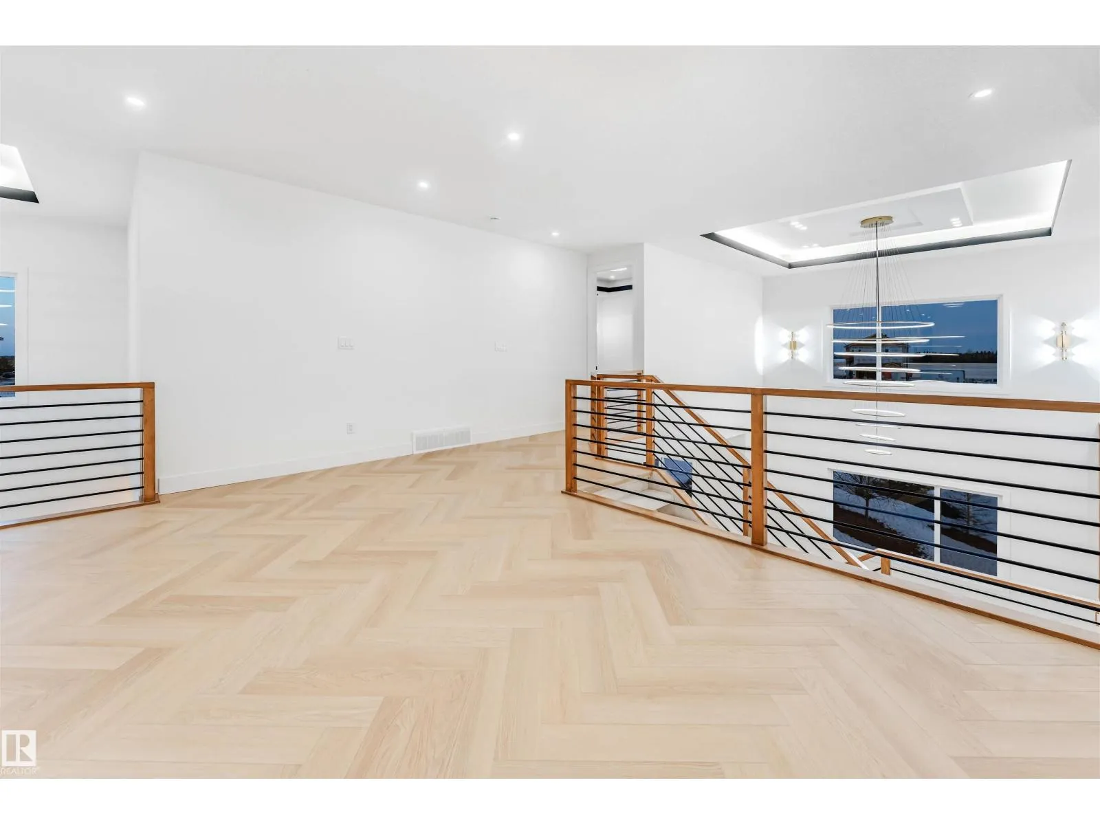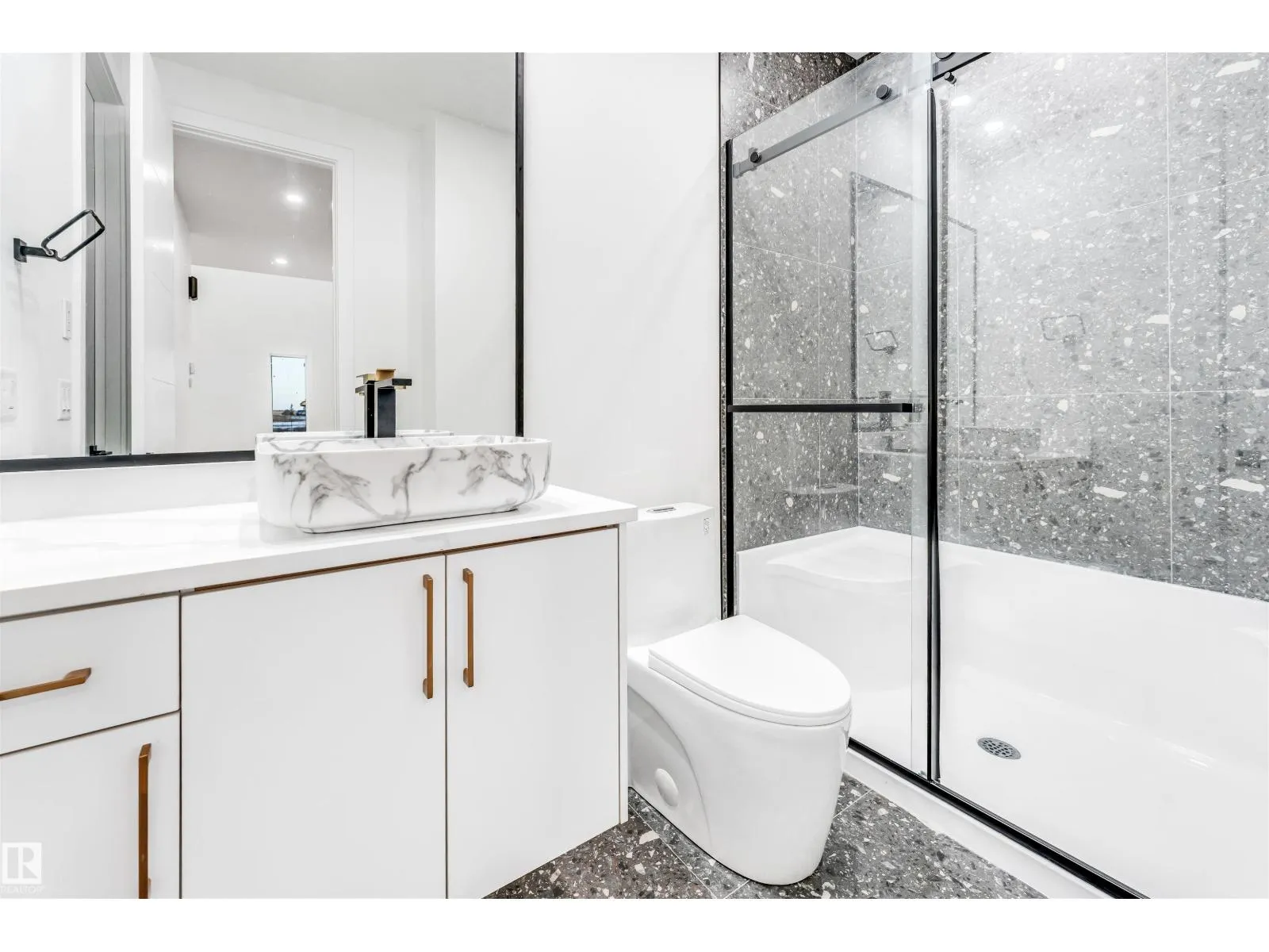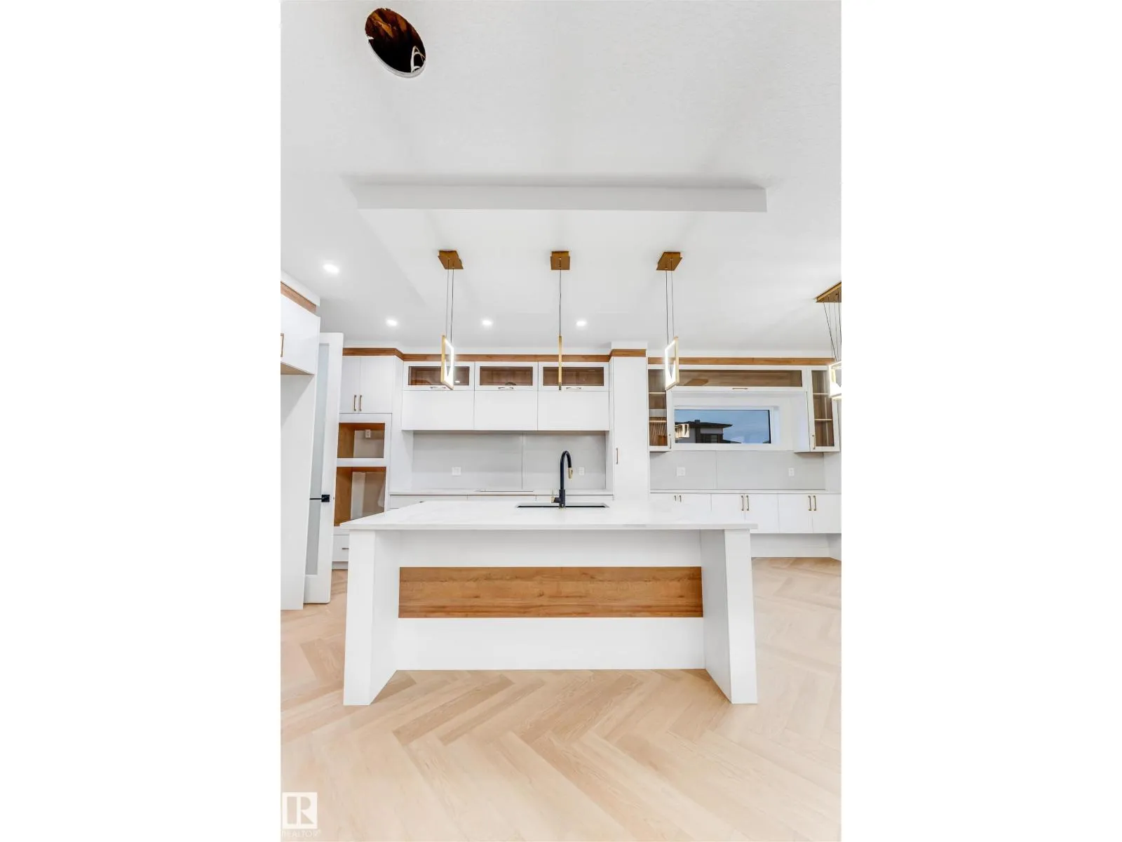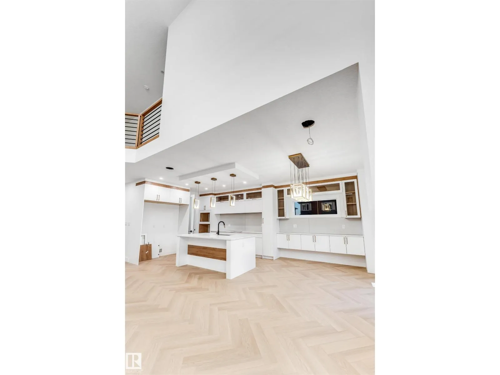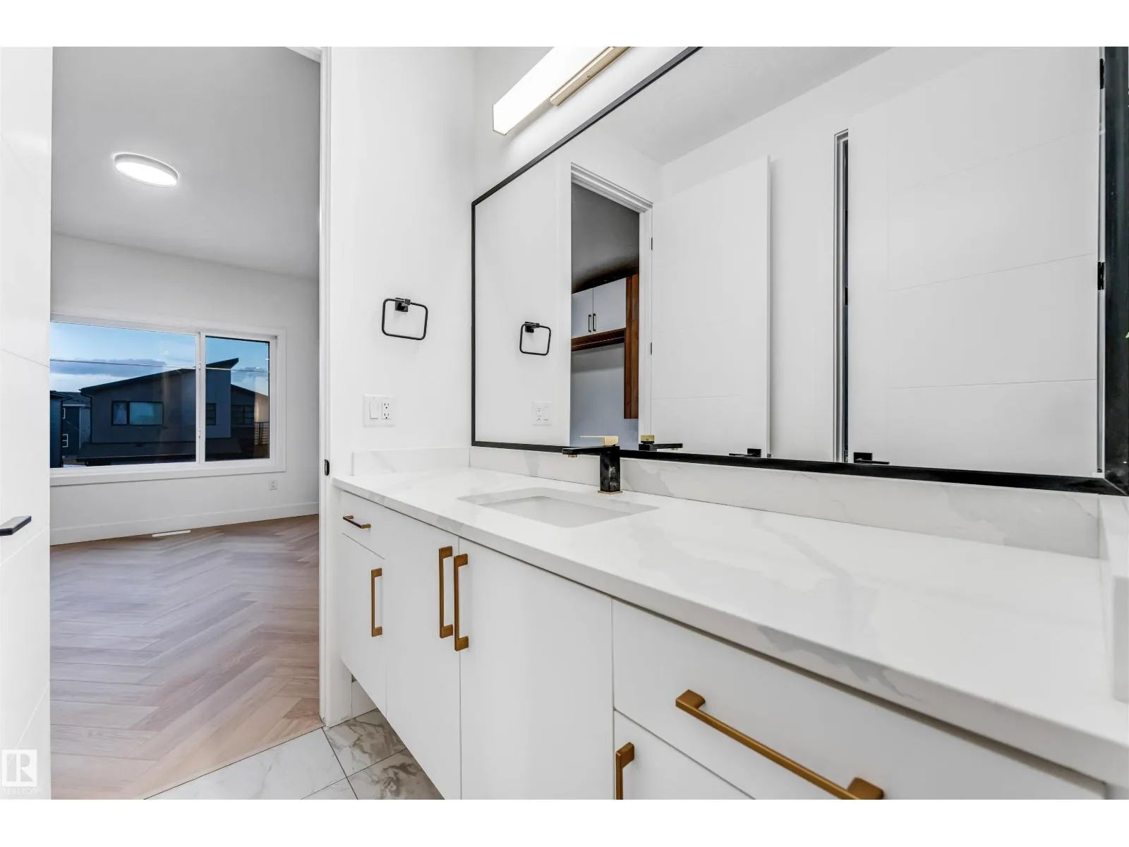 This Amazing WALKOUT home is thoughtfully designed to combine functionality, luxury, & modern elegance. Spanning approximately 2,900 sq. ft., it features 9, 10, & 20 ft ceilings, stunning feature walls & ceilings, & 2 grand open-to-above with 2 living areas that floods the home with natural light & offers beautiful pond views. The main floor includes a full bedroom & bath, ideal for guests or multi-generational living, along with a chef-inspired kitchen boasting ceiling-high cabinets, quartz countertops, & a fully equipped spice kitchen perfect for those who love to cook & entertain. Sophisticated finishes such as tiled & vinyl flooring, a designer fireplace wall, & a deck overlooking the green-space add an extra layer of elegance & comfort. The separate entrance offers endless potential, whether you envision a legal suite, gym, or entertainment area. Nestled in a serene location just 10 minutes from Costco, Walmart, YEG International Airport, bilingual schools, & all amenities. (id:27476)